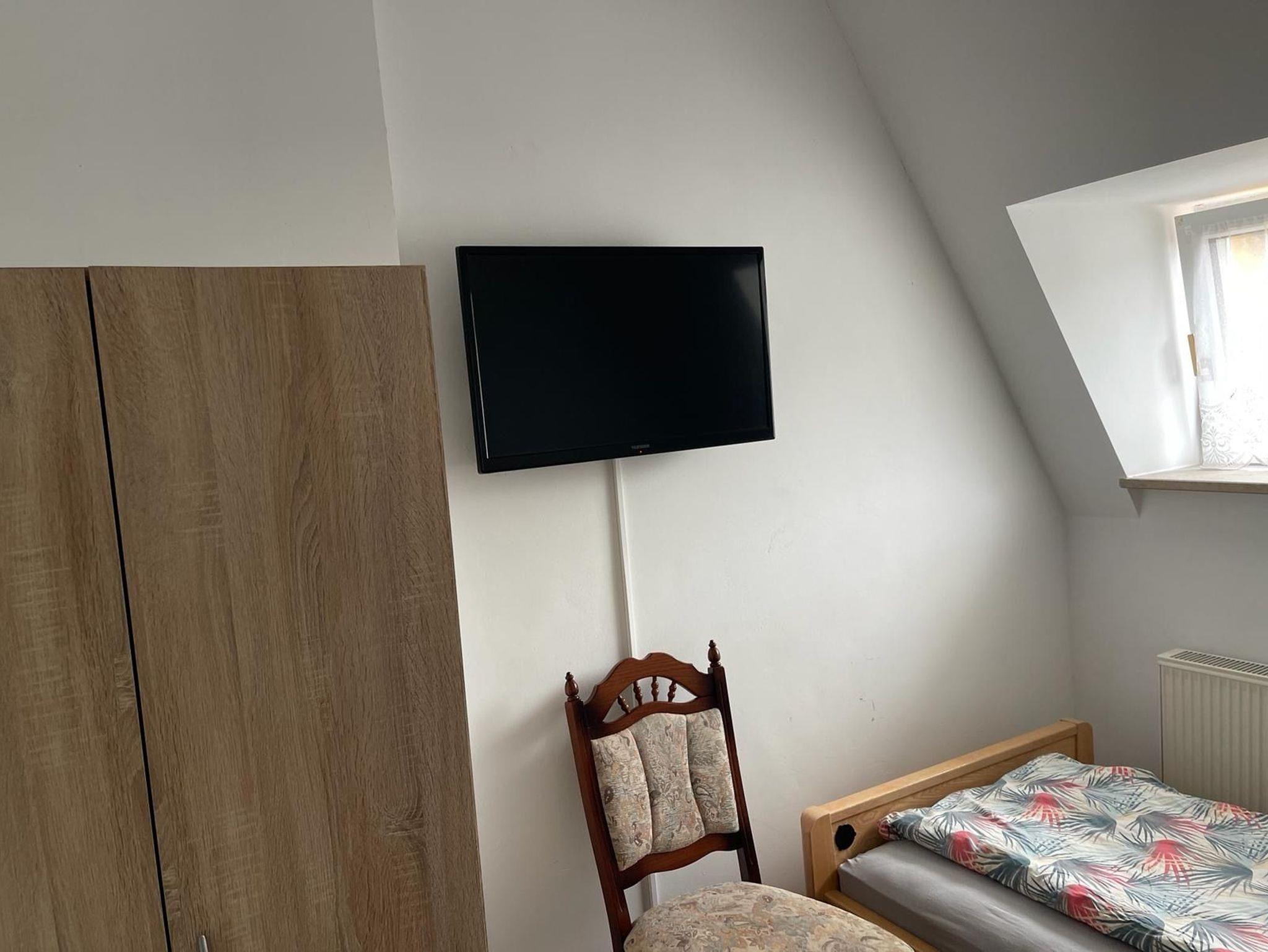 Die gemeinschaftliche Küche ist mit einem Kühlschrank, Geschirrspüler und Backofen sowie einer Mikrowelle ausgestattet, das gemeinschaftlich nutzbare Wohnzimmer mit einen TV Gerät.
