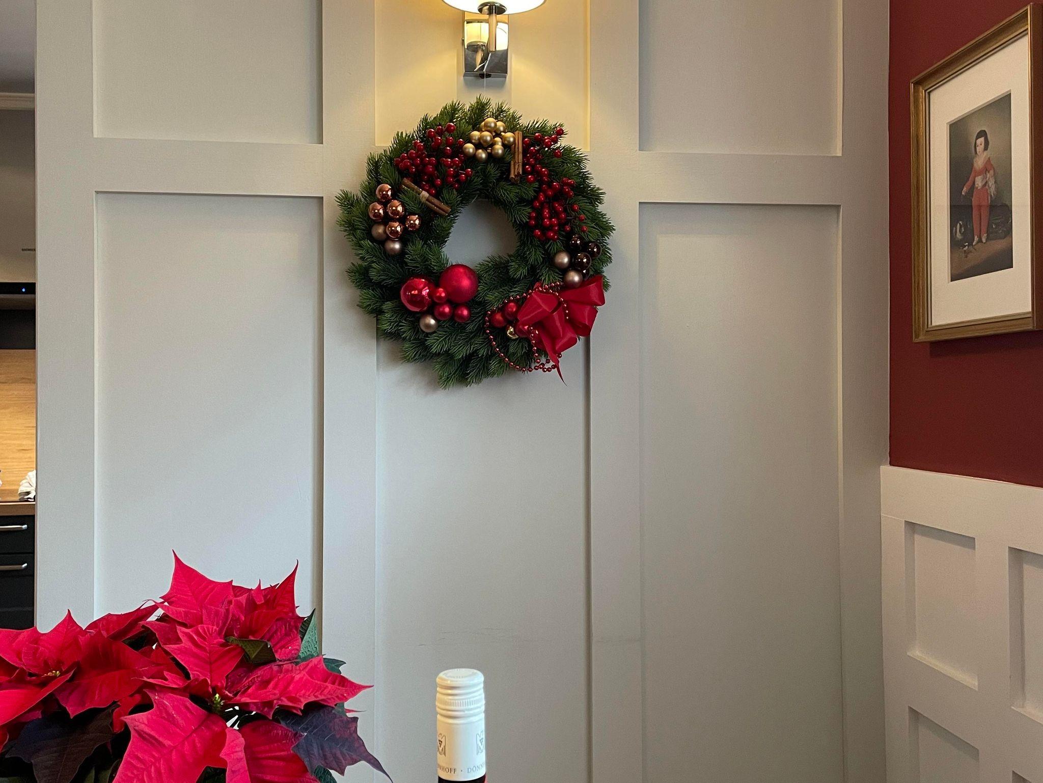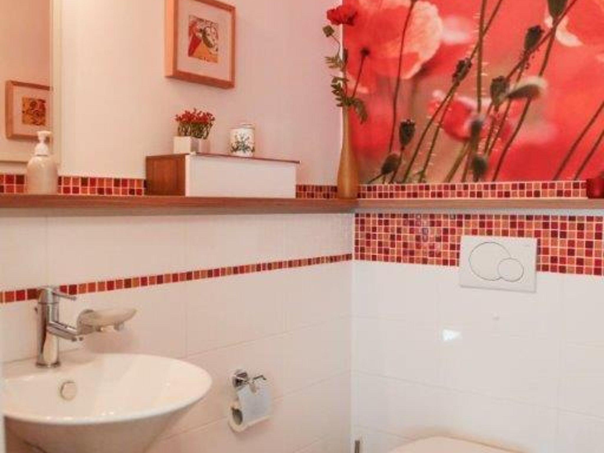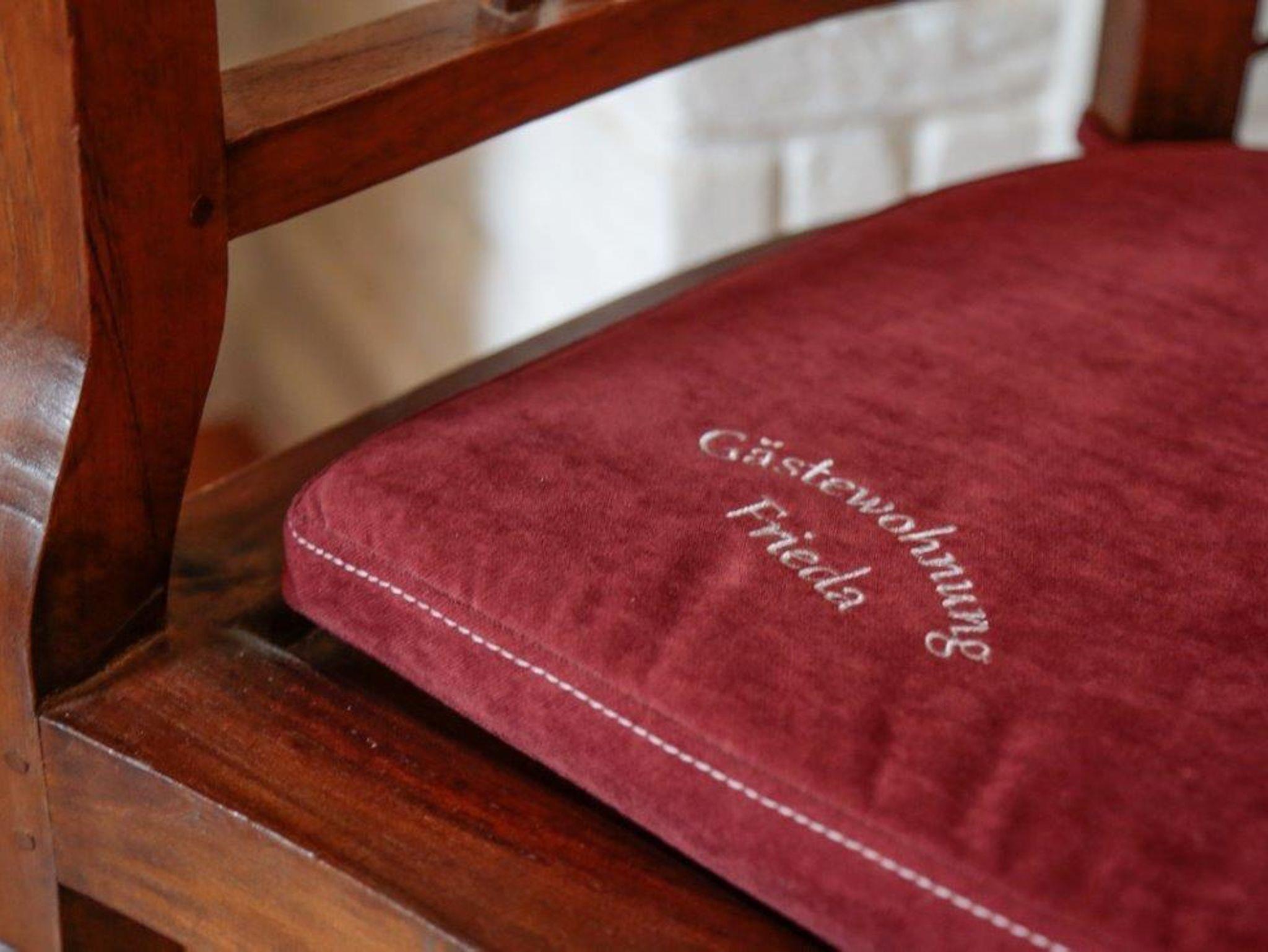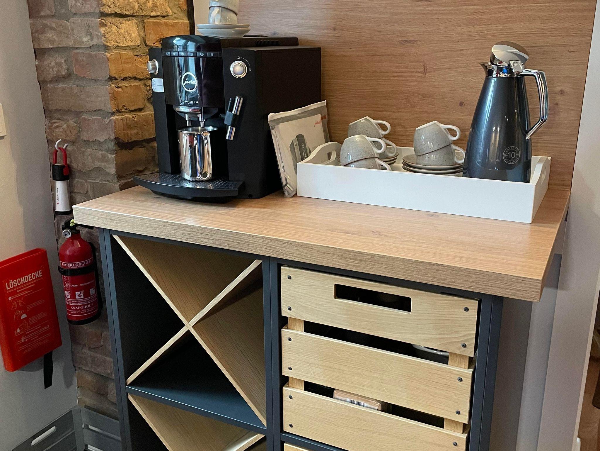 Die vollausgestattete, moderne Einbauküche verfügt über einen Geschirrspüler, einen Mikrowellenherd und einen Kaffevollautomaten. Eine freigelegte, über 100 Jahre alte Sandsteinmauer mit gemütlicher Sitzgruppe bietet Ihnen eine urige Atmosphäre für entspannten Kaffegenuss.