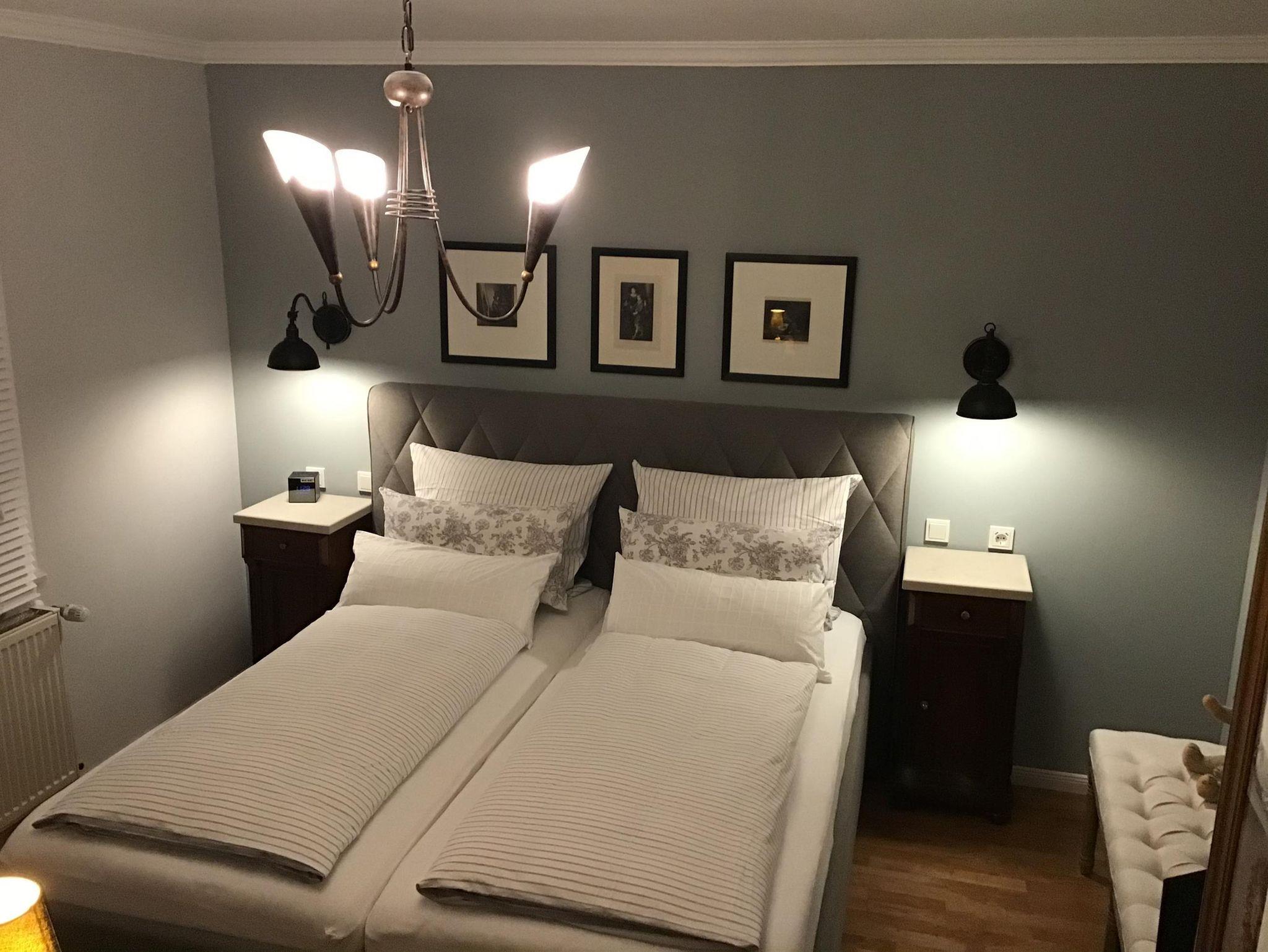 In der 2. Etage befinden sich die beiden Schlafzimmer. Die beiden hochwertigen Doppelbetten der Zimmer verfügen über komfortable Matratzen und Daunendecken aus hypoallergenen Materialien. Ein Schlafzimmer ist zusätzlich mit einer Toilette ausgestattet, das andere mit einem Flachbild-TV. Alle Zimmer verfügen über Rolladen, teils elektrisch.