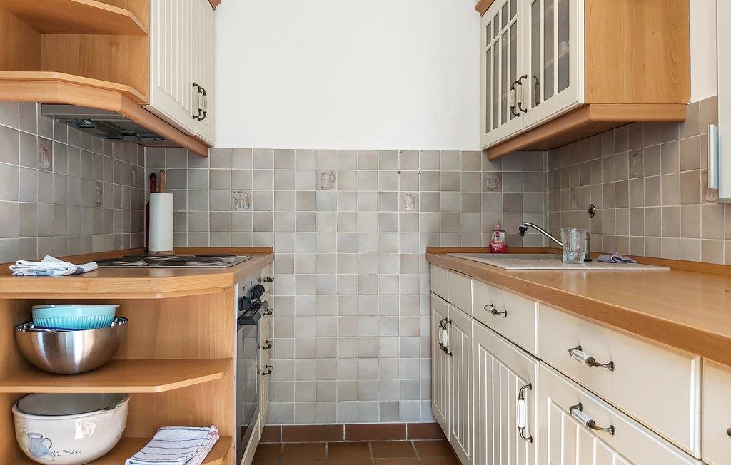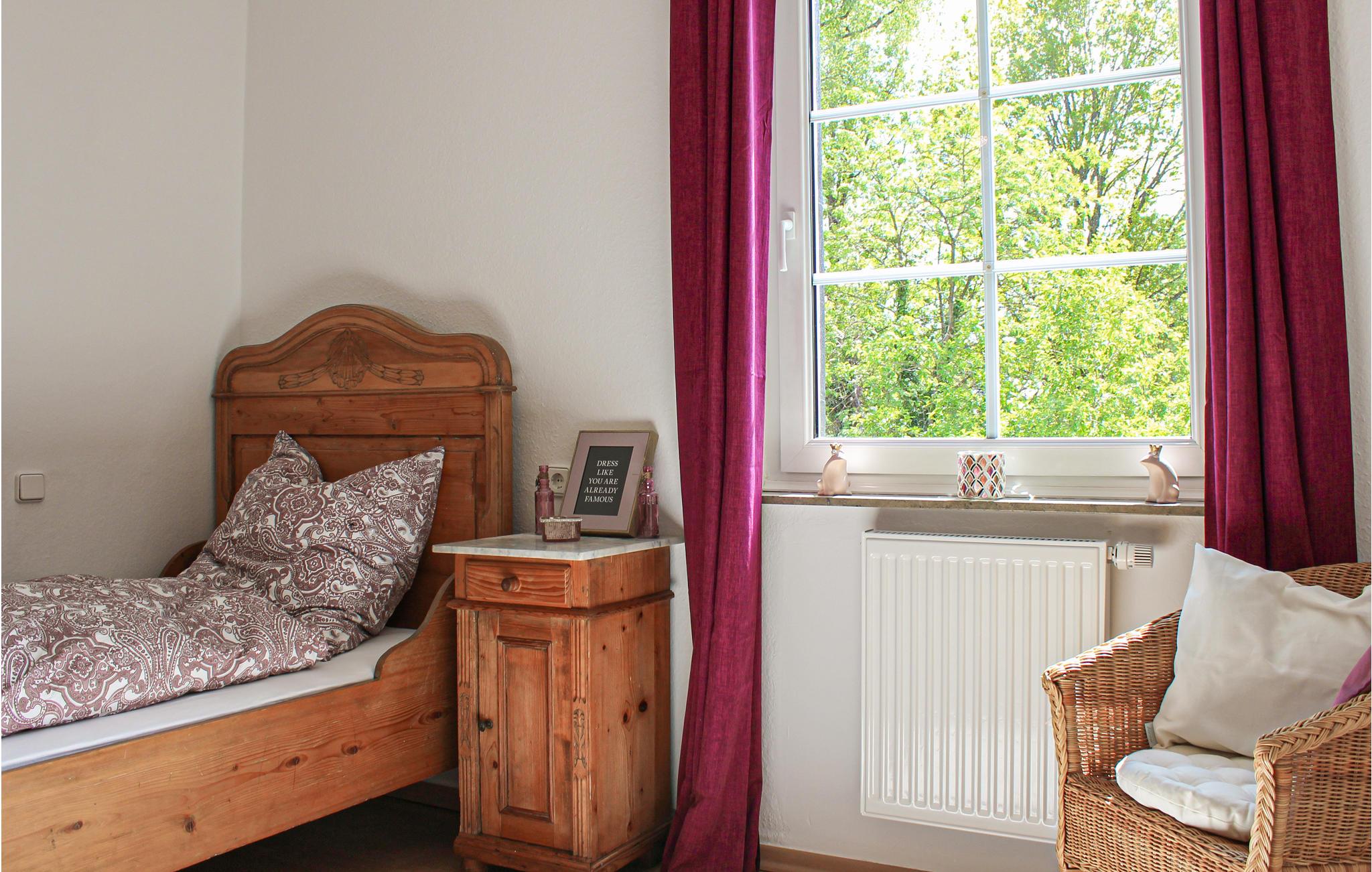 Badeværelset med bruser og tre soveværelser er på øverste etage. To af dem har hver en stor dobbeltseng. Det tredje soveværelse har en enkeltseng i træ. Dette møbel er som andre i din lejlighed meget velbevarede antikviteter og passer perfekt til atmosfæren.
