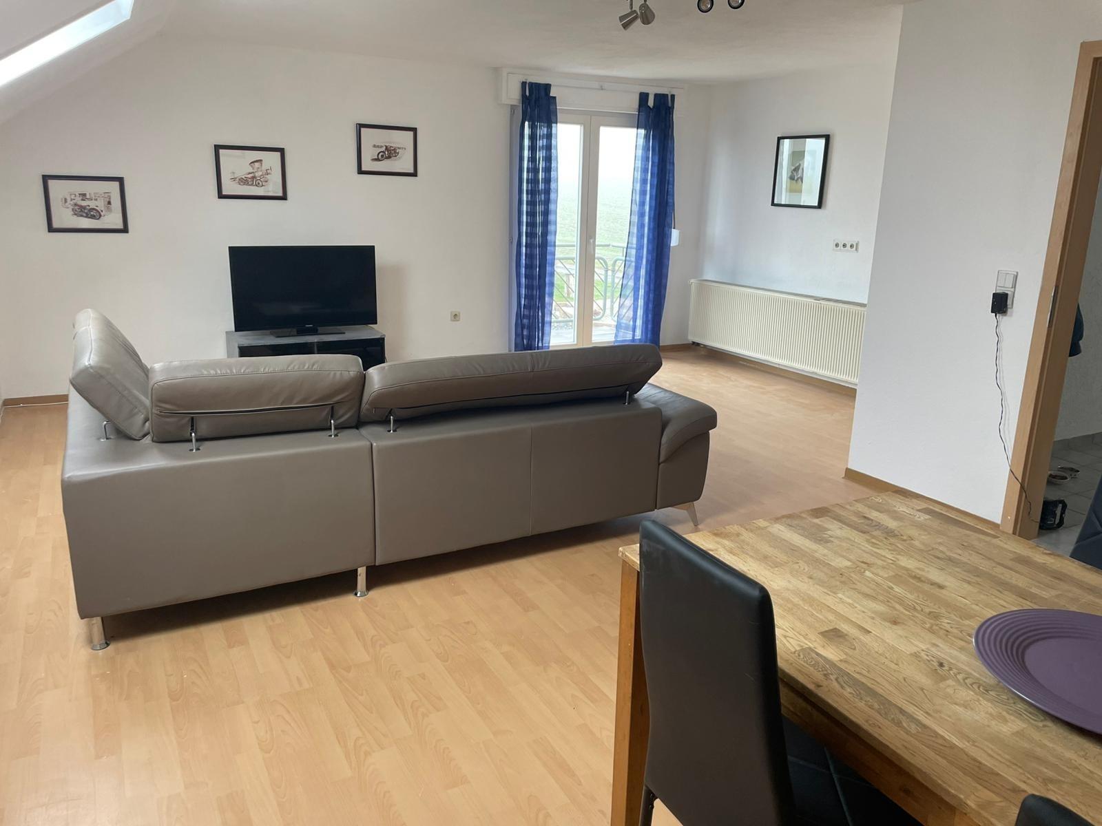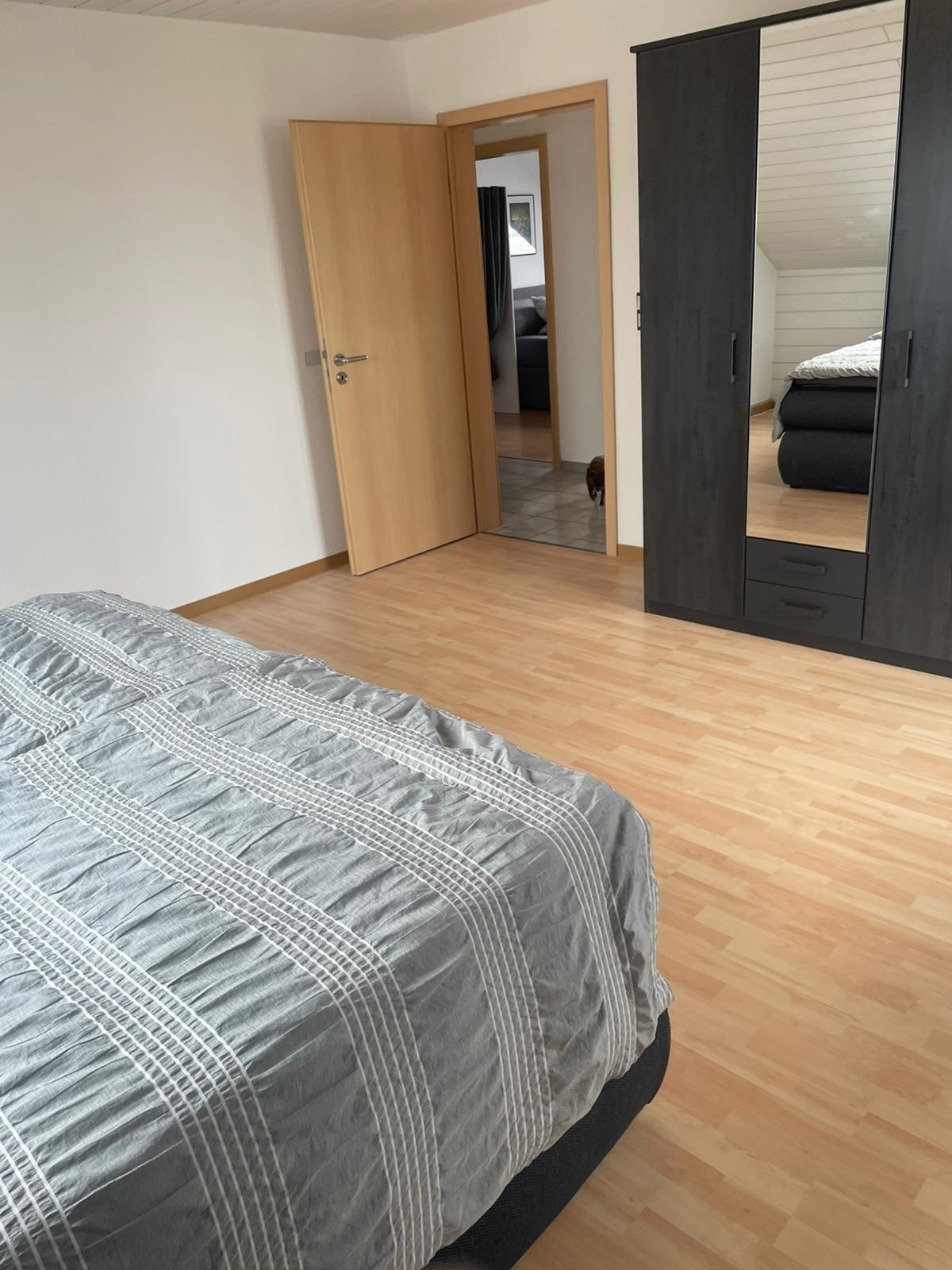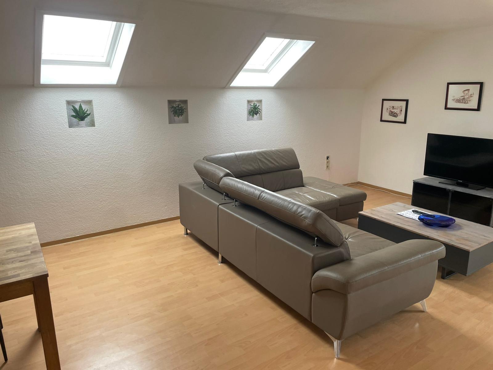 Die 120qm grosse Wohnung ist im Dachgeschoss eines 3Familienhauses, verfügt über Einbauküche (Elektrogeräte,Wasserkocher,Tassimo Kaffeemaschine)3 bis 4 Schlafzimmer, geräumiges Wohn/Esszimmer mit TV,WLAN,Internet.Waschmaschine u separate Gästetoilette.