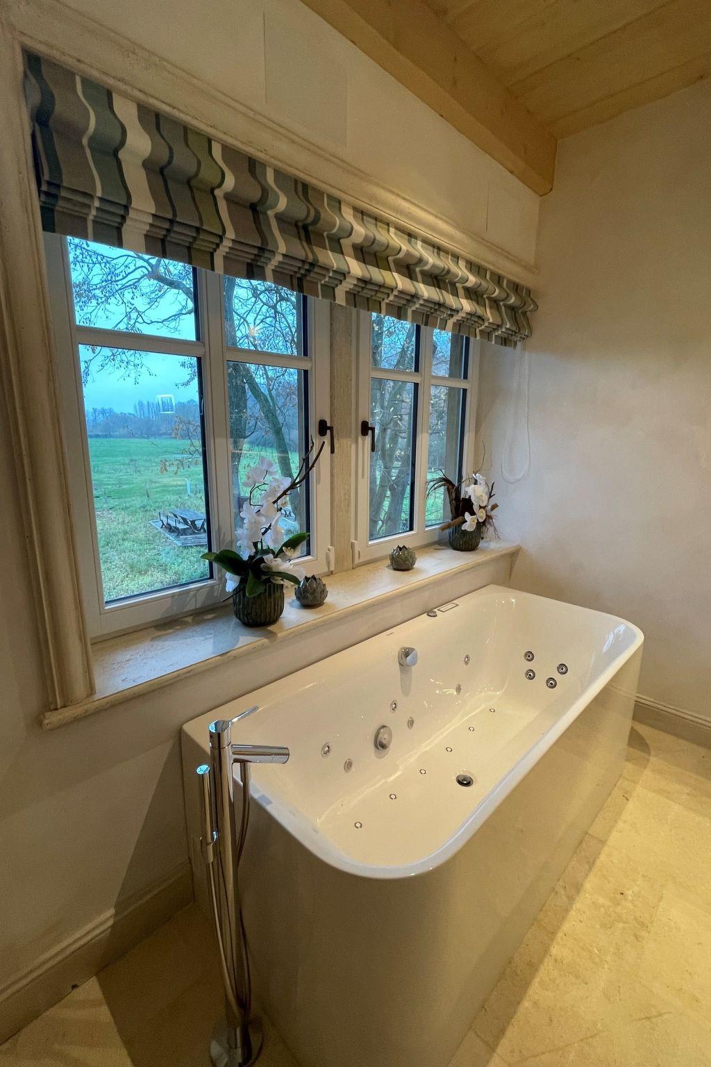 A cosy movie night is guaranteed thanks to the comfortable sofa, antique French fireplace and projector with screen. The country house offers a large double carport for two cars, two additional guest parking spaces and storage space for e-bikes. The beaches of Timmendorfer Strand and Scharbeutz can be reached in just five minutes by car.