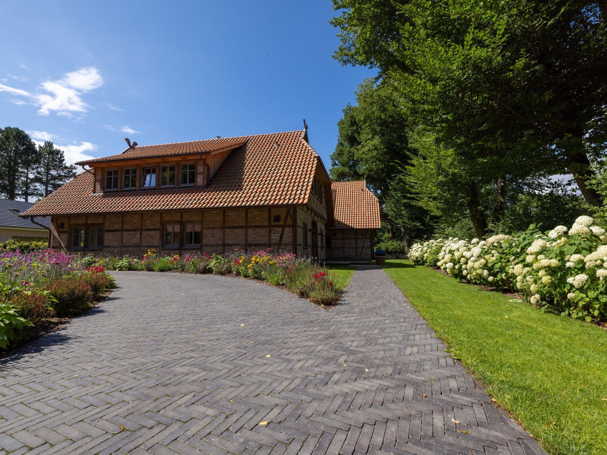 The luxurious Landhüüs Oeverdiek is located in Timmendorfer Strand, in an idyllic location between the popular Timmendorfer golf course and the Kammerwald forest. Surrounded by nature on an extensive plot of approx. 5,000 square metres, the spacious luxury villa in country house style offers the perfect retreat to relax and enjoy the Bay of Lübeck.