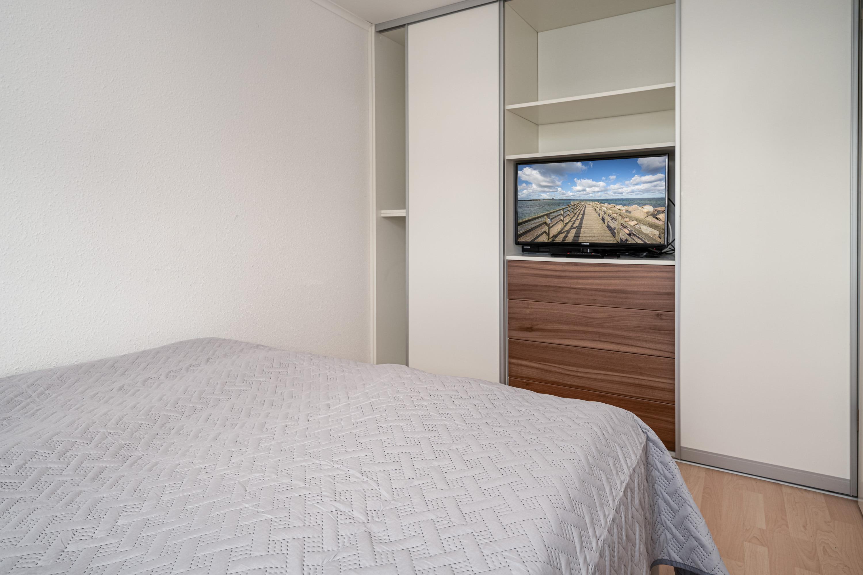Für gemeinsame Kochabende steht Ihnen die hochwertig ausgestattete Küche zur Verfügung. Das separate Schlafzimmer verfügt über ein Doppelbett (2 x 80 cm x 200 cm) und einen Fernseher. Zur Verdunklung sind hier Außenrollläden angebracht. Im Badezimmer mit Tageslicht finden Sie neben 2 separaten Waschbecken auch eine ebenerdige Dusche vor. Abgerundet wird dieses Angebot durch einen hübschen Garten mit Südausrichtung, in dem Sie entspannte Stunden mit der ganzen Familie verbringen können.