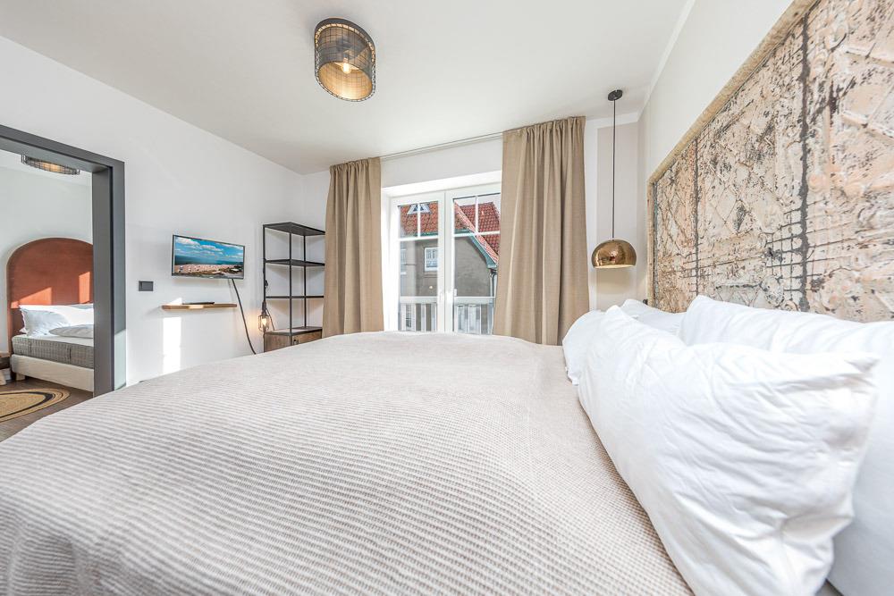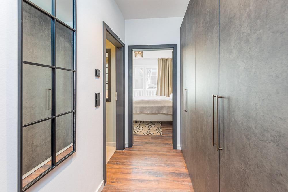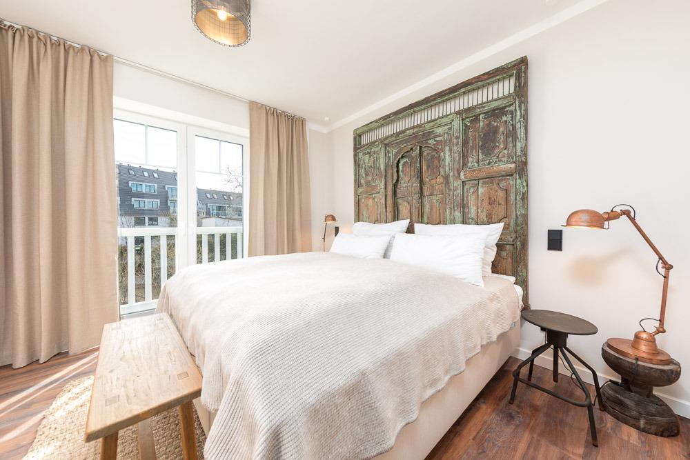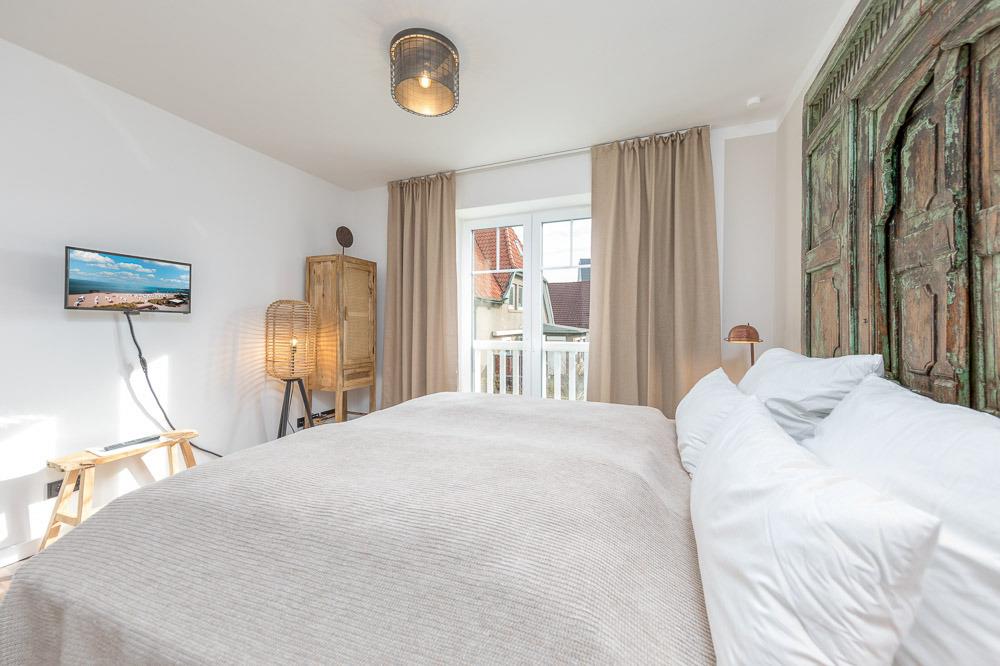 3 Schlafzimmer mit 2 separaten Badezimmern bieten Platz für 6 Personen. Die Schlafzimmer sind mit Boxspringbetten (2 Schlafzimmer mit 1 x 180 cm x 200 cm Matratze und das dritte Schlafzimmer mit zwei Einzelbetten je 90 cm x 200 cm Matratzen) sehr exklusiv eingerichtet. Das dritte Schlafzimmer erreichen Sie durch ein Schlafzimmer mit Doppelbett. Flachbildfernseher sind im Wohnbereich und in den Schlafräumen vorhanden.