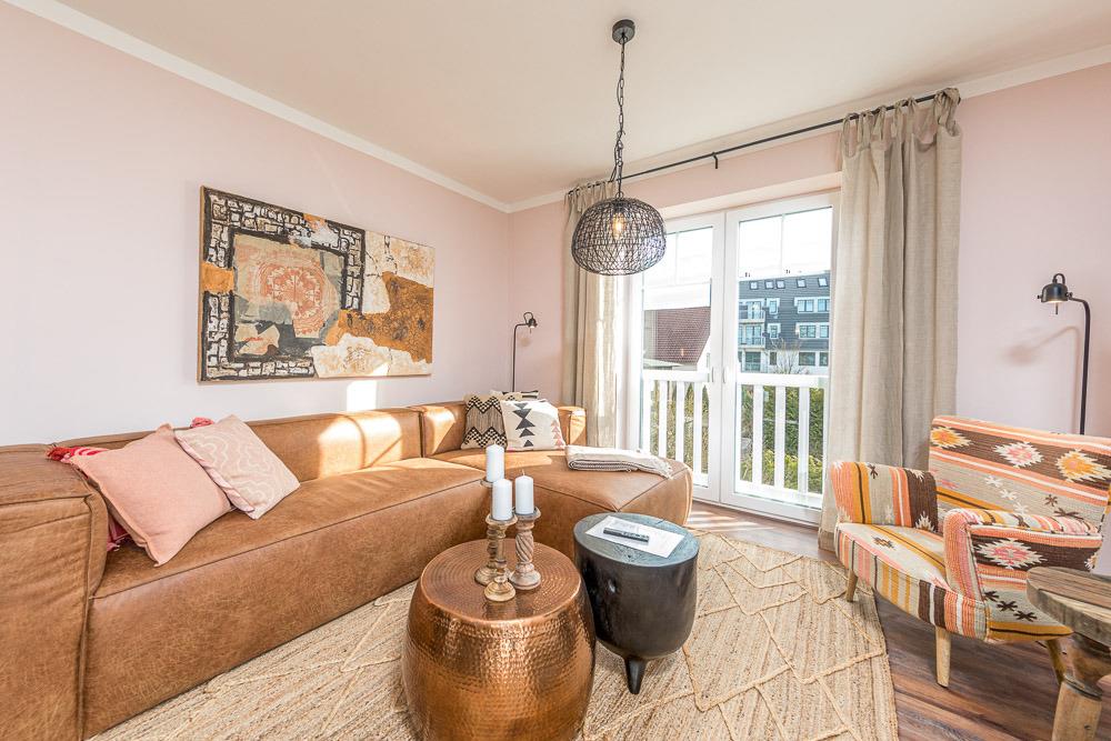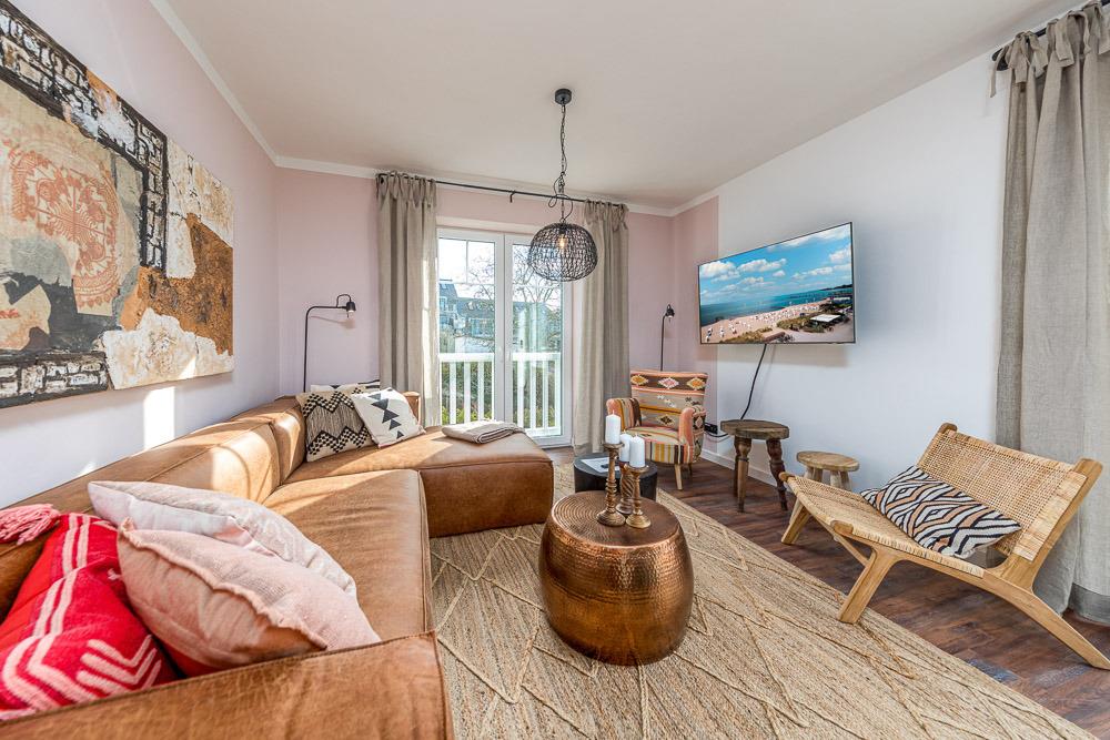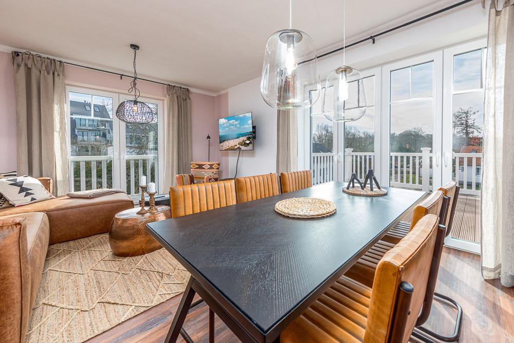 Vom Wohnraum aus gelangen Sie auf den sehr großen Balkon, wo Sie die frische Meeresluft genießen können.
