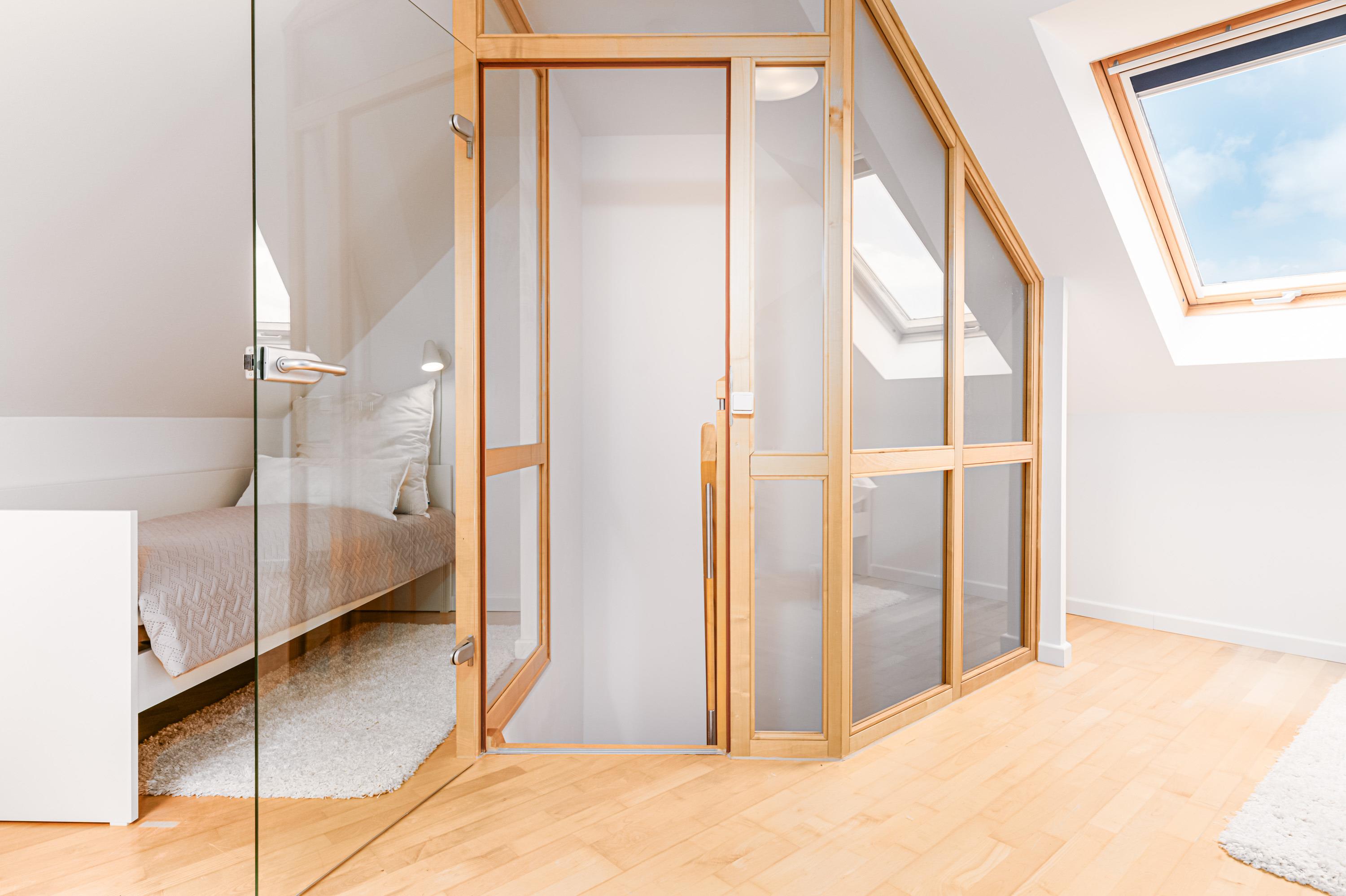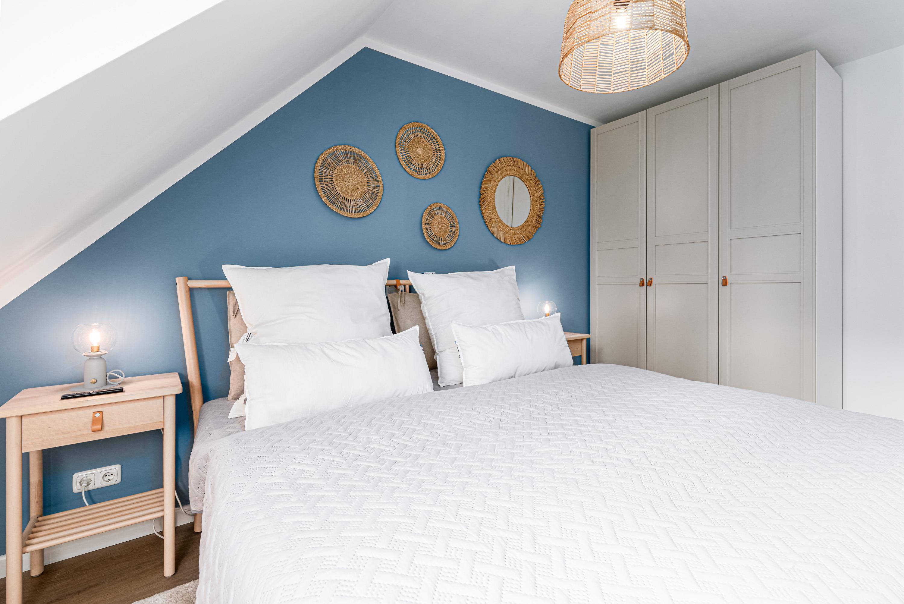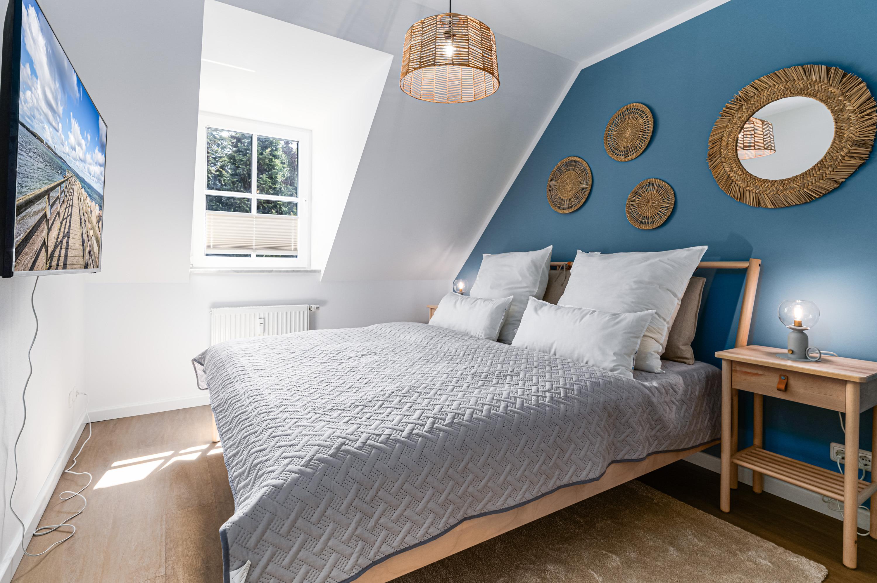 Im ersten Schlafzimmer finden Sie ein bequemes Doppelbett sowie einen weiteren Kabel-TV vor. Ins zweite Schlafzimmer gelangen Sie über eine Treppe vom Flur aus. Dort stehen für den erholsamen Schlaf zwei weitere Einzelbetten bereit.