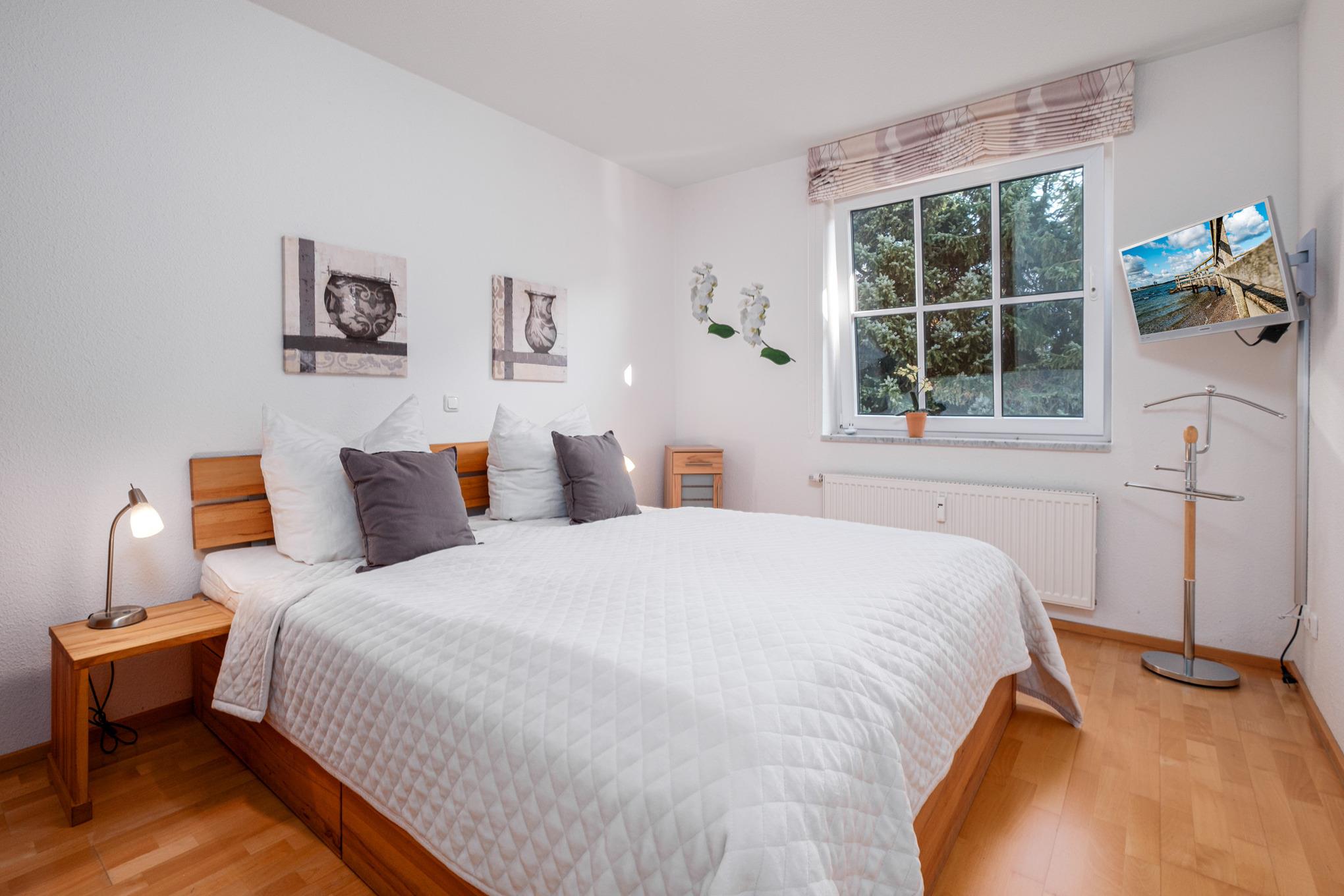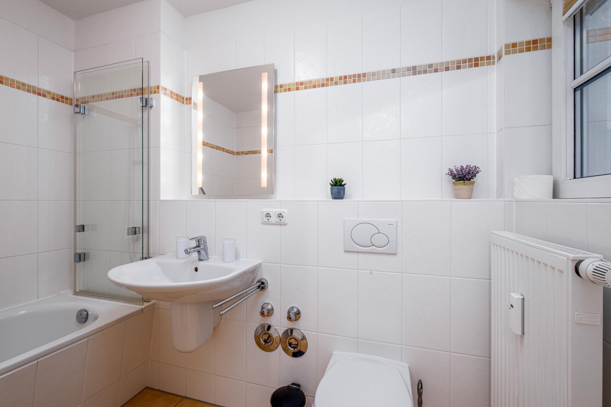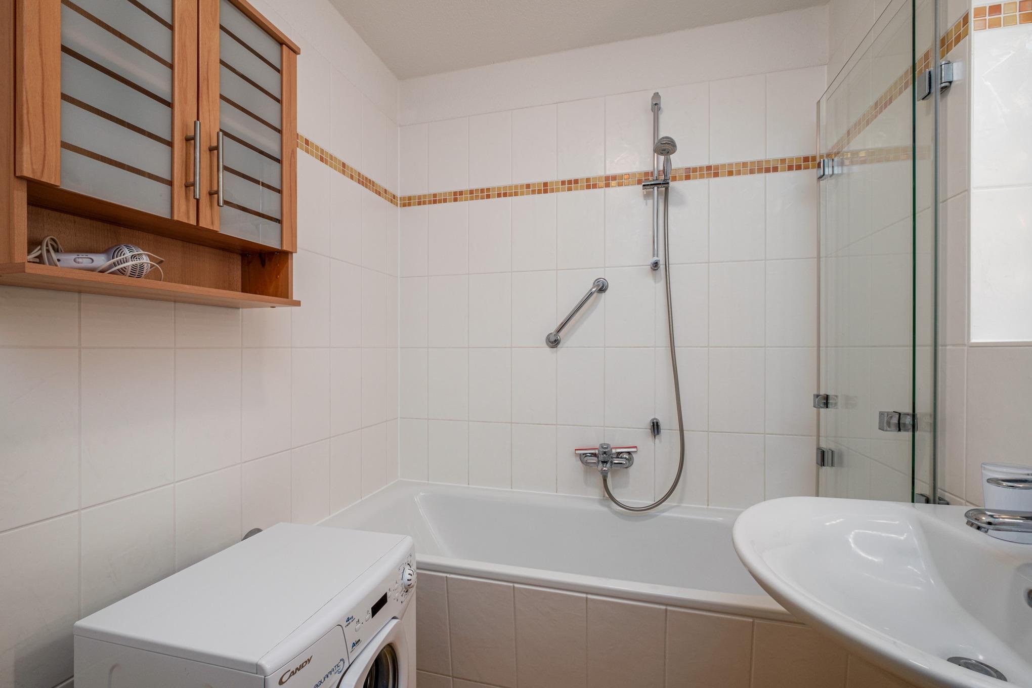 Das separate Schlafzimmer verfügt über ein gemütliches Doppelbett (2 x 90 cm x 200 cm). Hier finden bis zu 2 Personen einen komfortablen Schlafplatz.Das helle und geräumige Badezimmer ist mit einer Badewanne sowie WC, Fön und einer Waschmaschine ausgestattet.