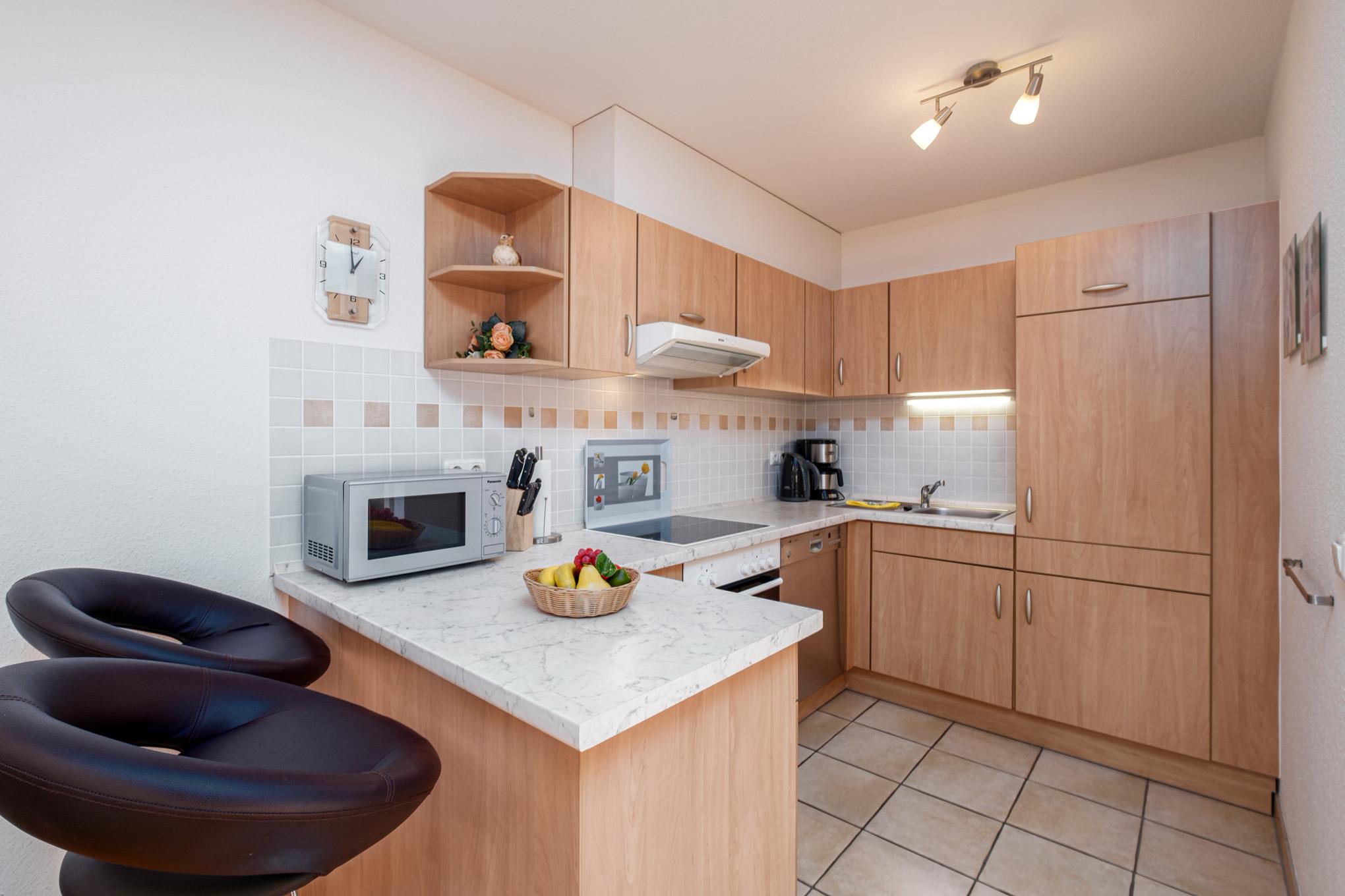 In der separaten Küche mit Geschirrspüler und Mikrowelle macht das gemeinsame Kochen viel Spaß.