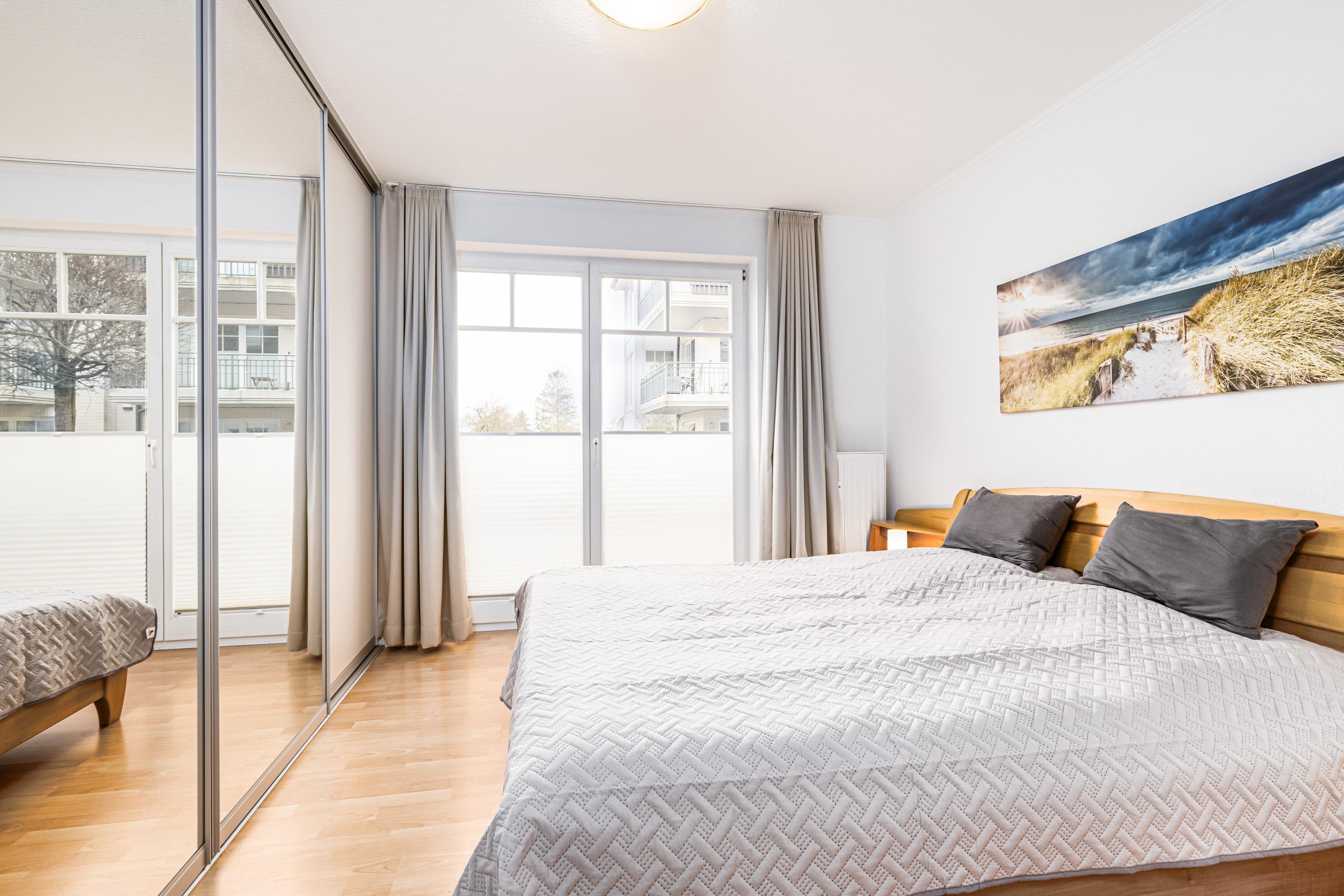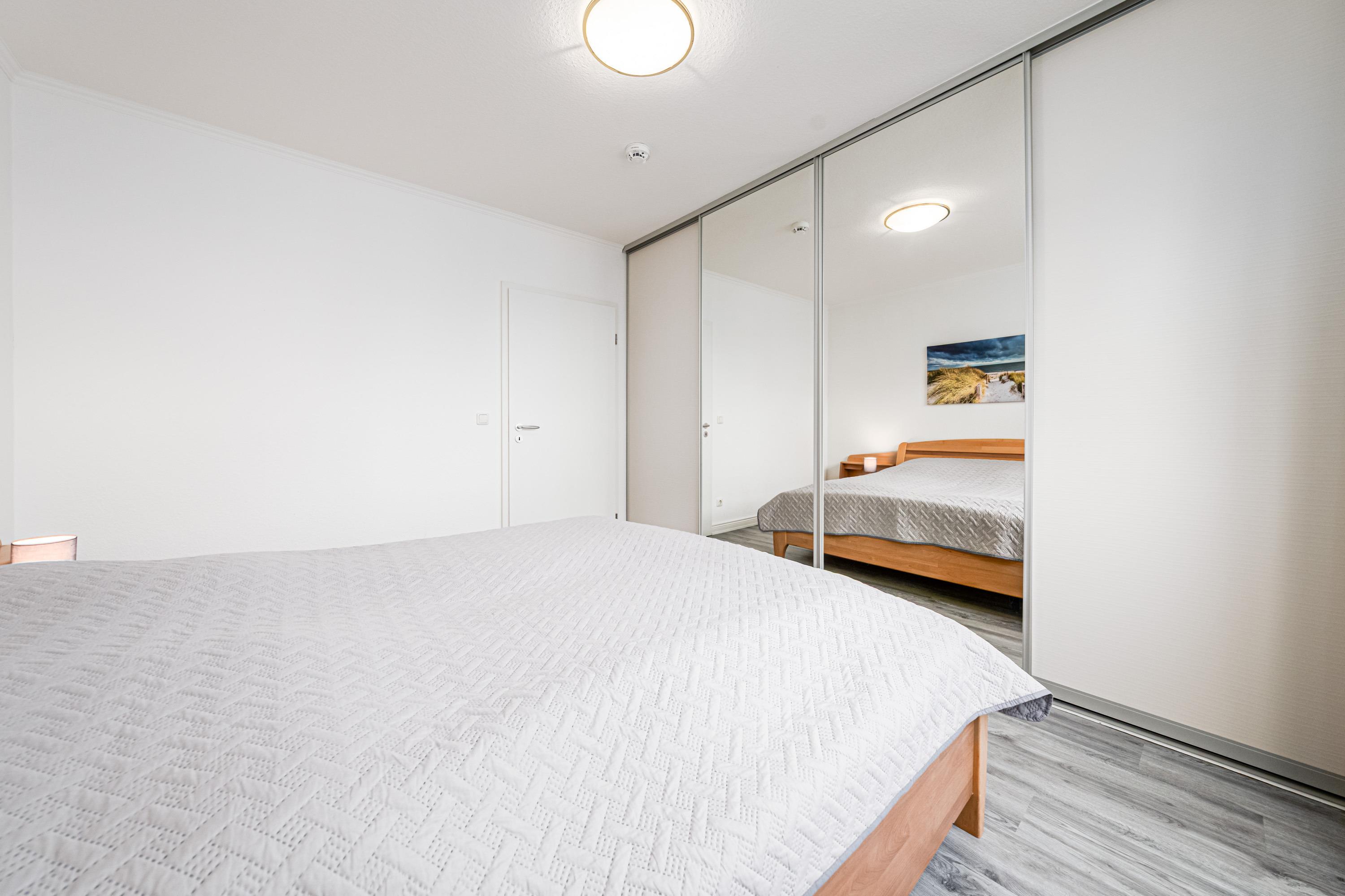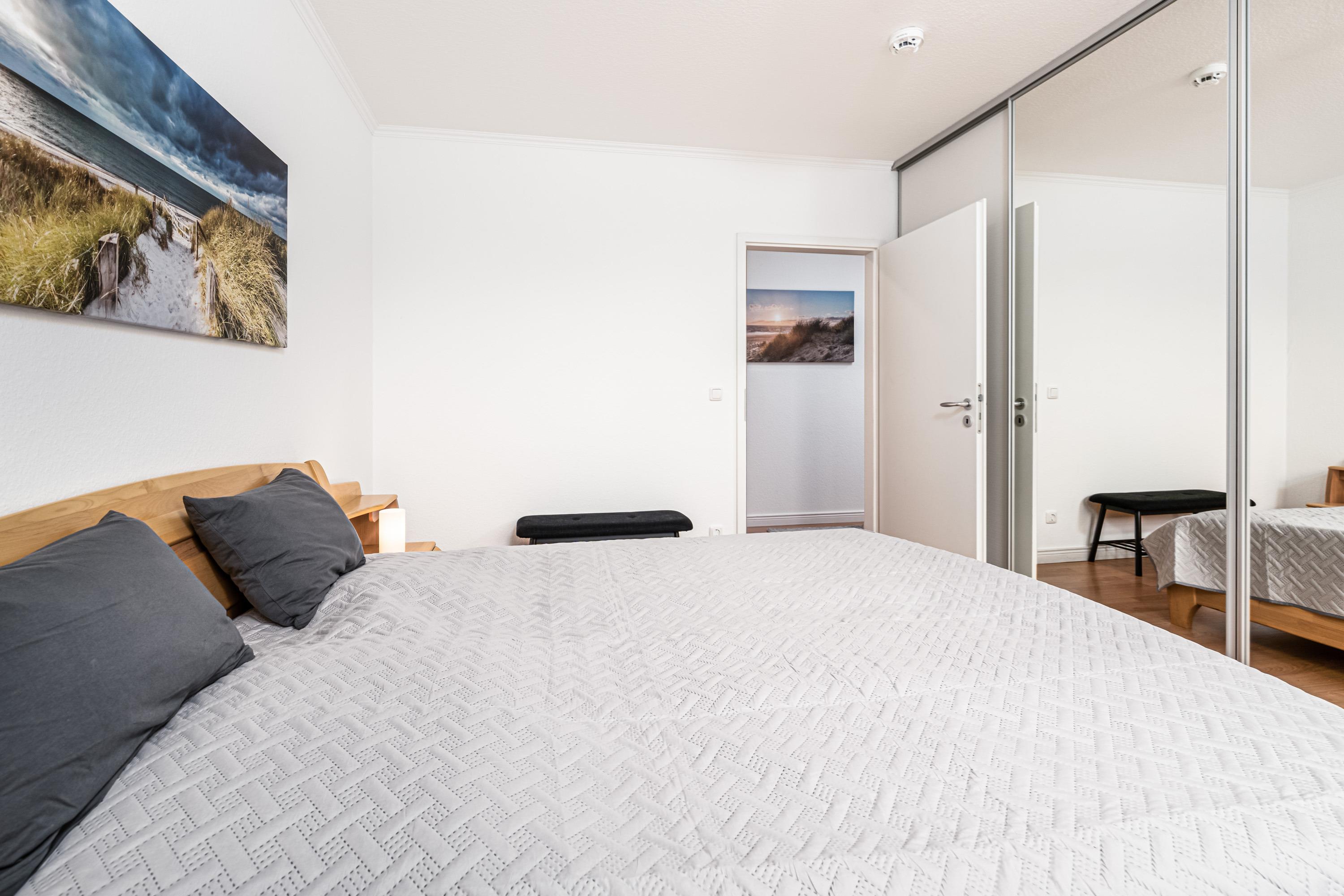 Das separate Schlafzimmer ist mit einem großem Kleiderschrank und bequemen Doppelbett ausgestattet.