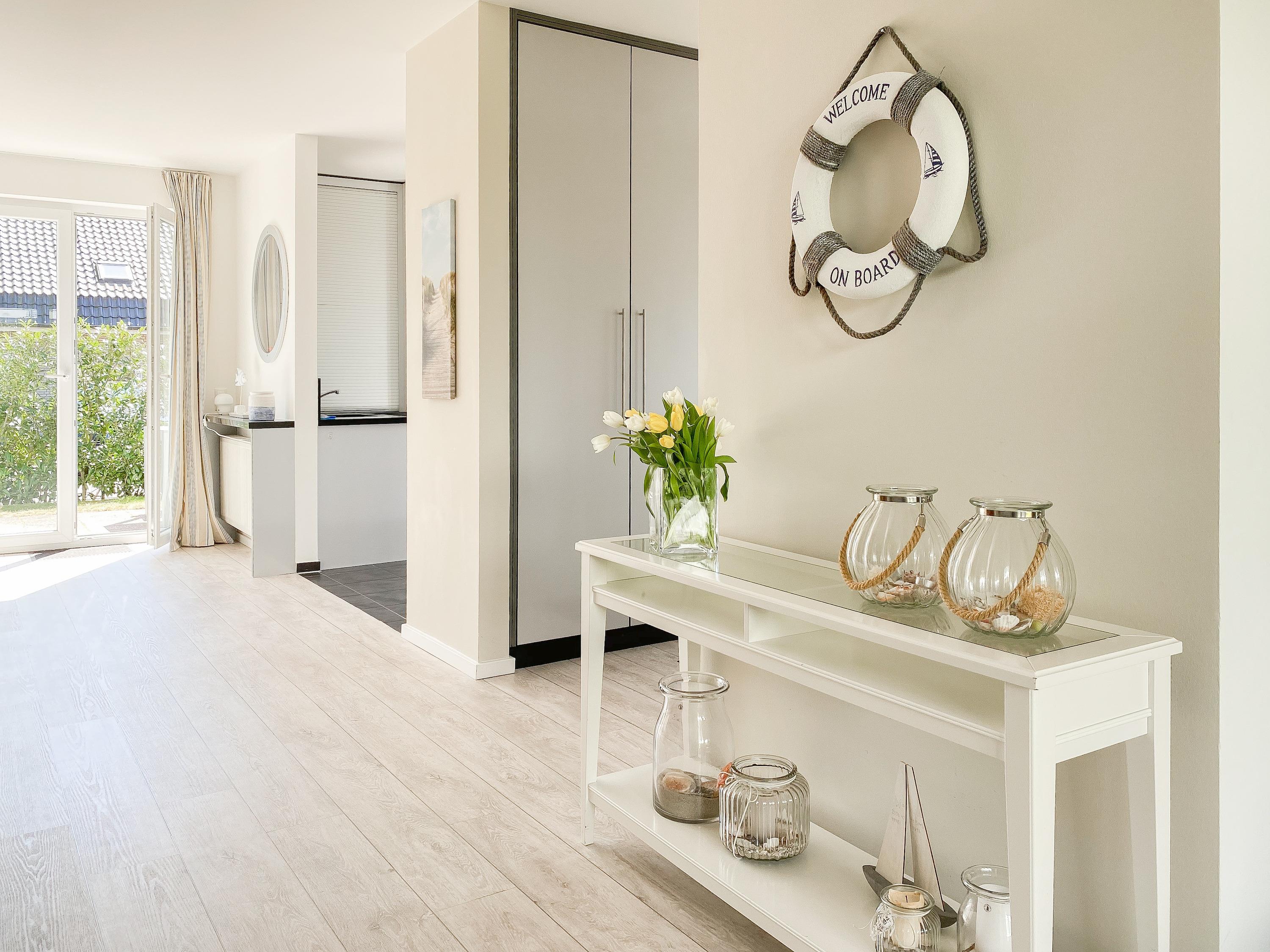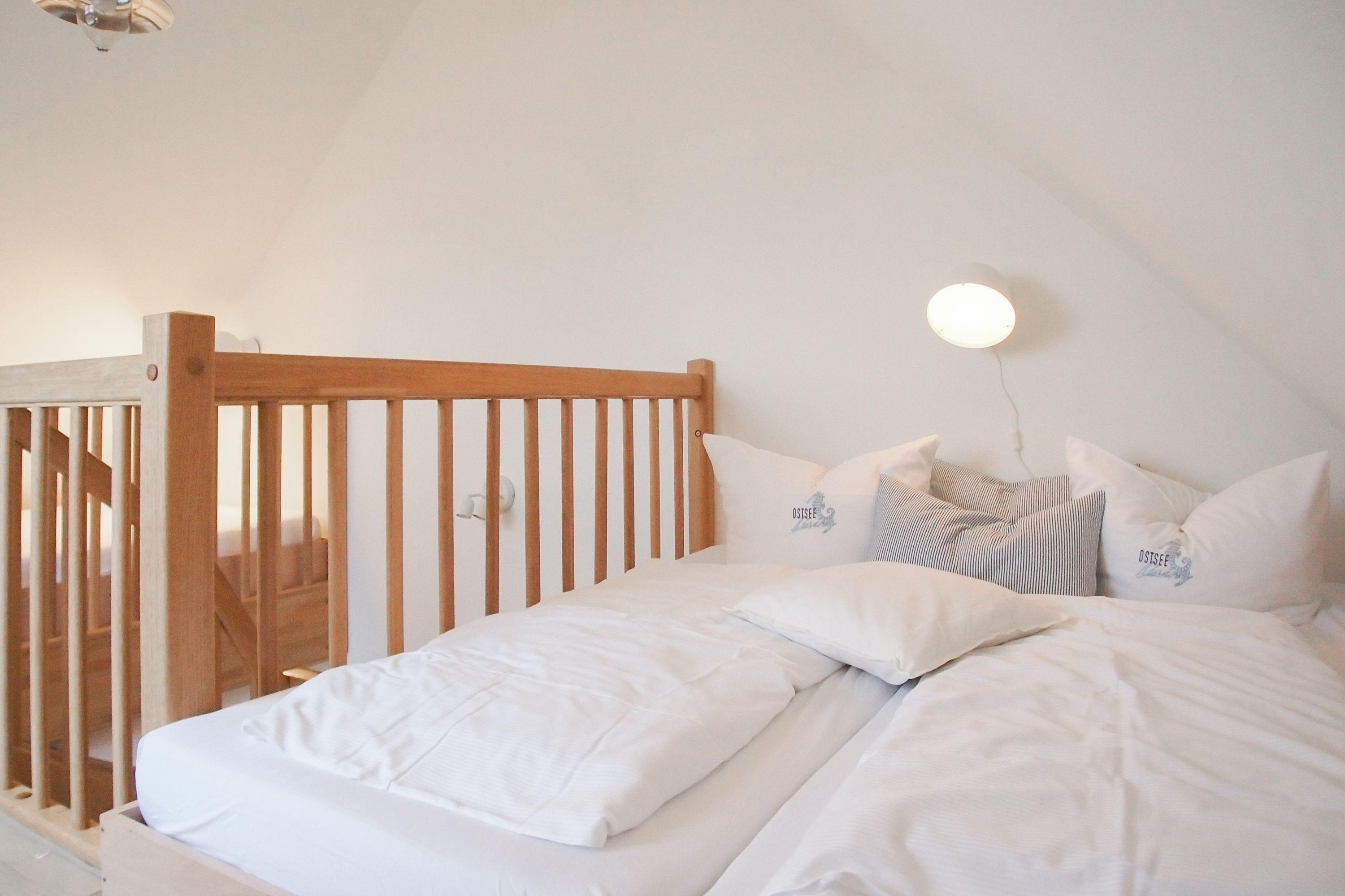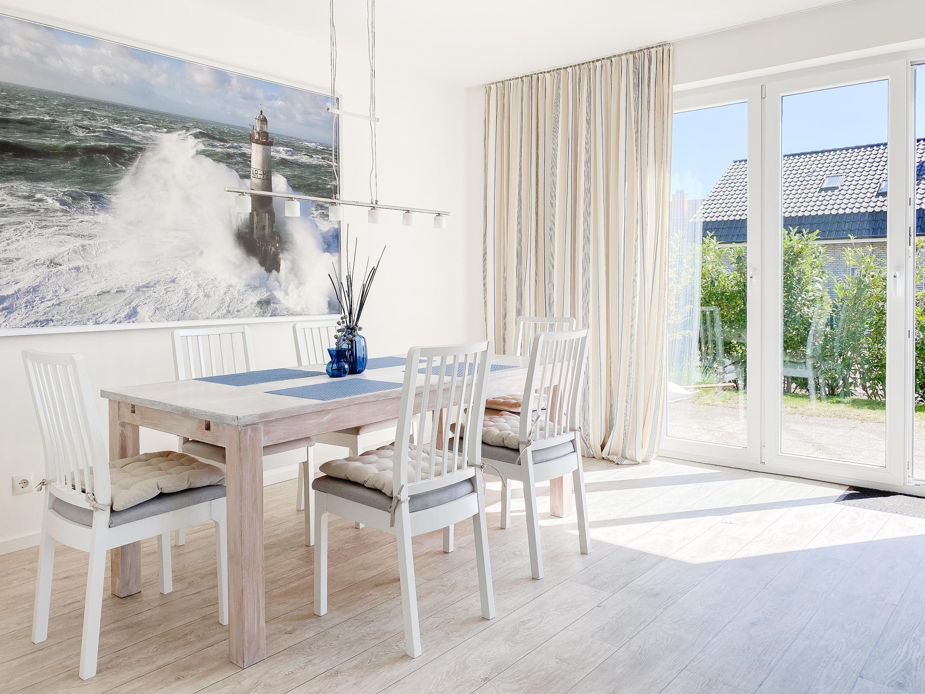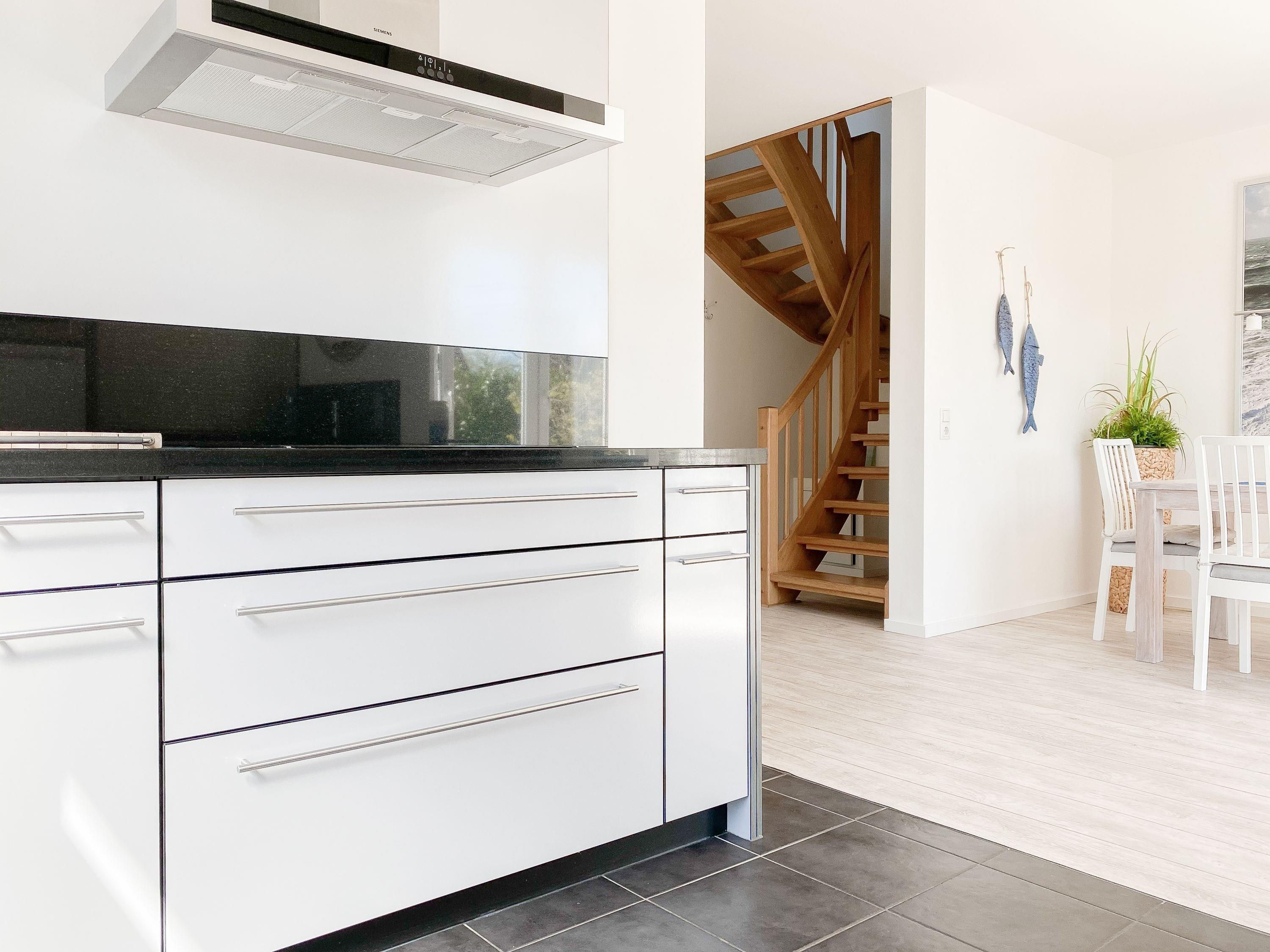 Das Ferienhaus "Mondmuschel" erstreckt sich über 3 Ebenen und bietet auf 114 qm ausreichend Platz für 5 Personen. Im Erdgeschoss erwartet Sie ein gemütliches Wohnzimmer mit[nbsp] TV sowie eine bestens ausgestattete Einbauküche mit großzügigem Essbereich für 6 Personen. Auf der vorgelagerten, Südwestterrasse mit Gartenmöbeln und eingezäuntem Gartenbereich läßt sich die Sonne von früh bis spät genießen. Ein Gäste WC mit Dusche ist ebenfalls im EG unterbracht. Im ersten Obergeschoss befindet sich ein helles Schlafzimmer mit Boxspringbett, TV und Balkon sowie ein großes, modernes Badezimmer mit viel Tageslicht, ausgestattet mit Walk-In Dusche, Badewanne und Balkon. Auf der Galerie im halboffenen Dachgeschoss gibt es ein weiteres Schlafzimmer mit zwei eingebauten Doppelbetten. WLAN steht zur kostenlosen Nutzung zur Verfügung.