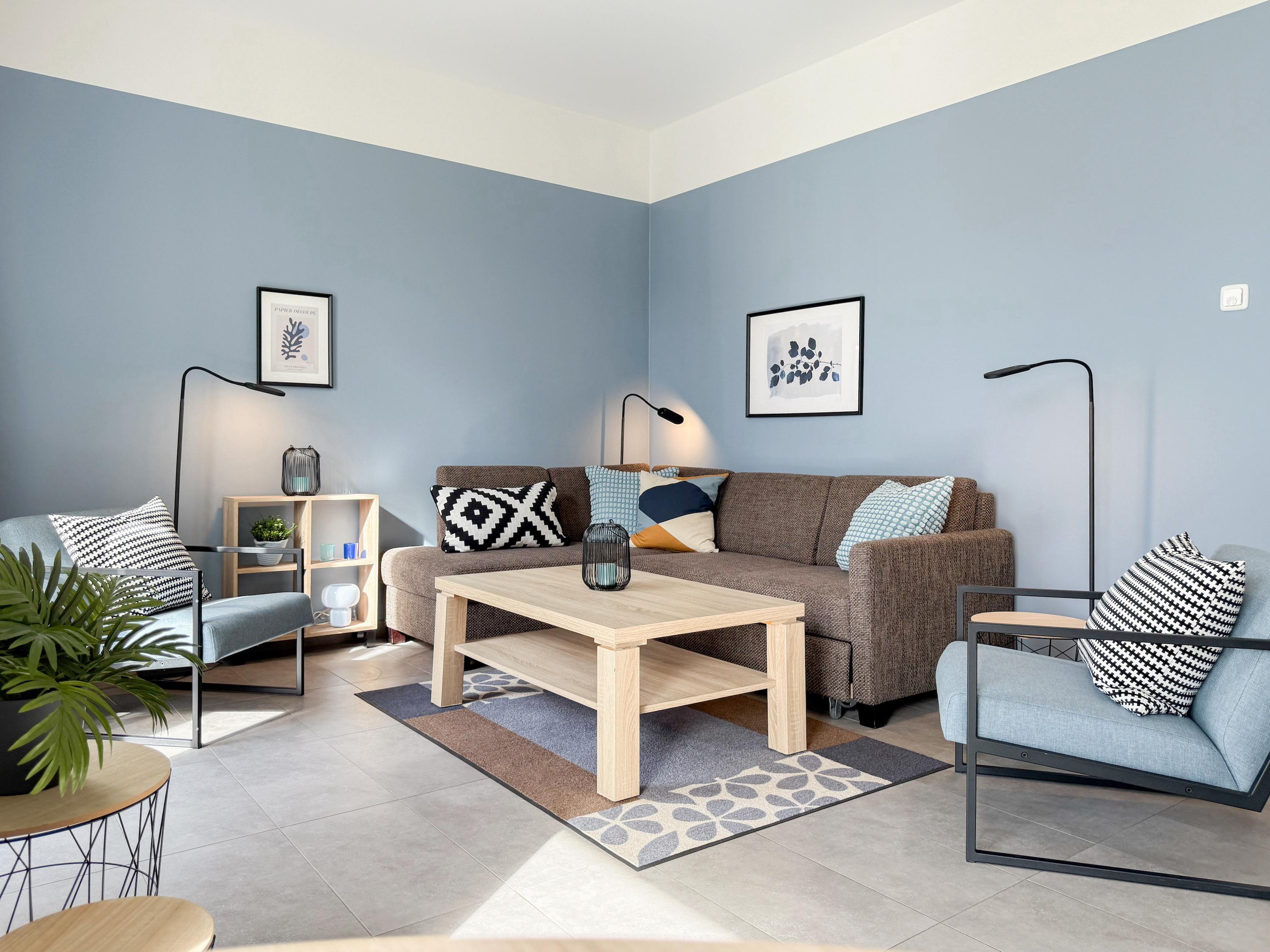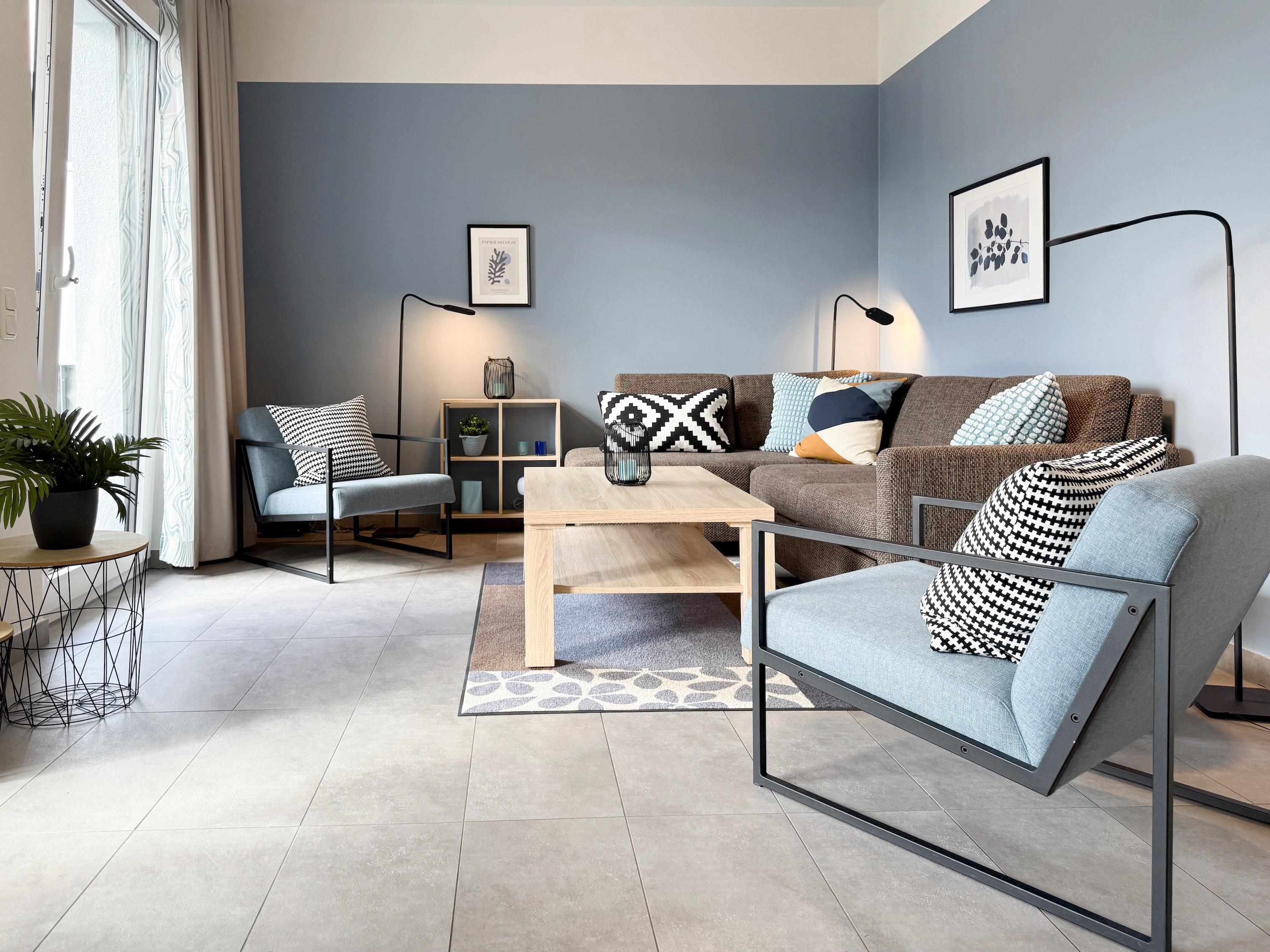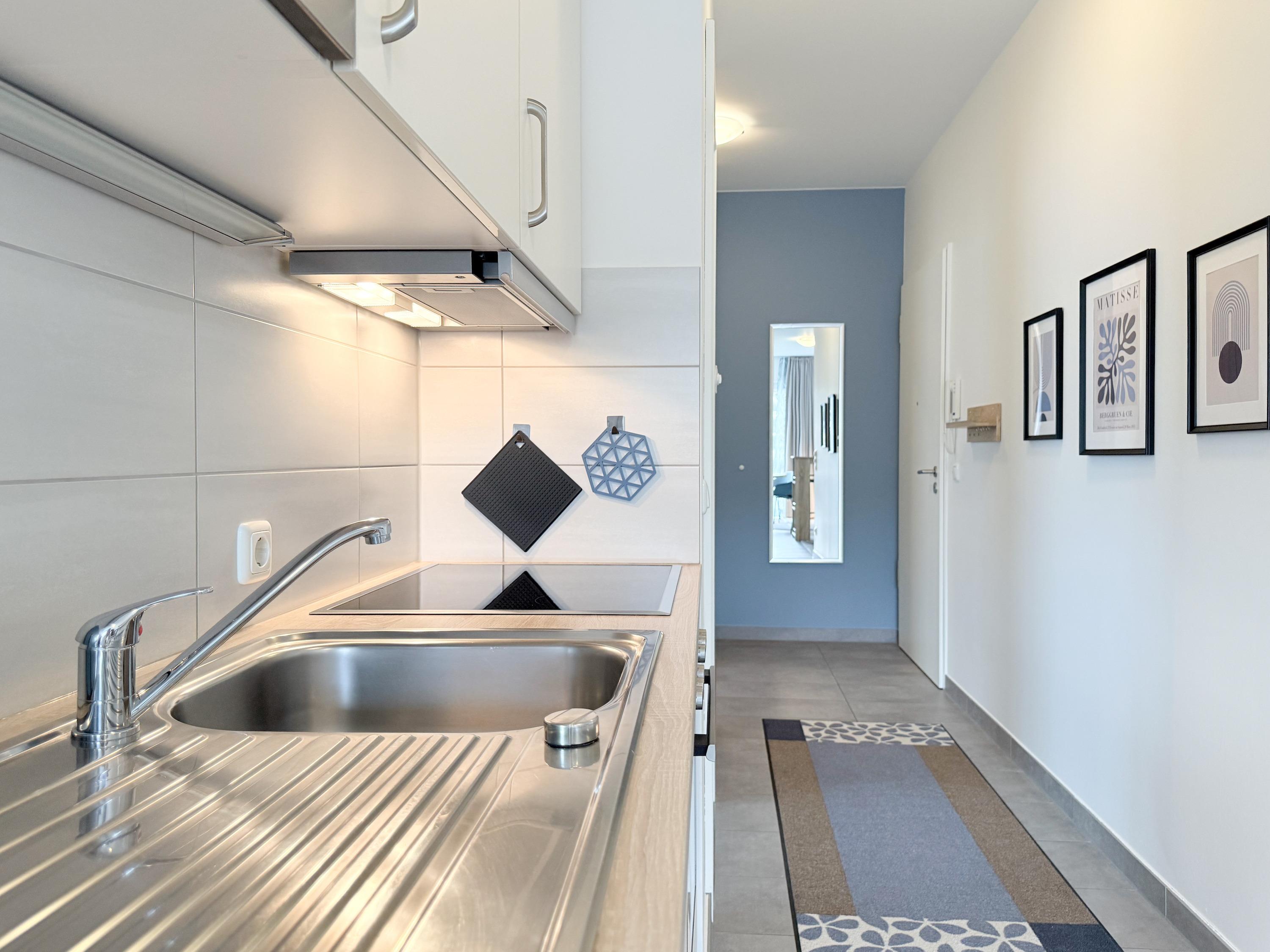 Diese lichtdurchflutete, neu gestaltete Ferienwohnung befindet sich im 1. Obergeschoss im "Nienhüs" mit nur 7 Wohneinheiten. Die hochwertige Ausstattung sowie die stilvolle Einrichtung mit liebevollen Details schafft ein behagliches Ambiente für 2-3 Personen. Bodentiefe Fensterelemente sorgen für helle, sonnige Räume und die Fußbodenheizung für ein angenehmes Raumklima. Der großzügige und sehr geschmackvoll eingerichtete Wohnbereich ist mit zwei modernen Lounge-Sesseln, einer hochwertigen Couchgarnitur mit Schlaffunktion (160x200), Stereoanlage, TV und kostenlosem Internetzugang über WLAN ausgestattet. Auf dem geräumigen Sonnenbalkon in Südausrichtung lässt es sich dank bequemer Gartenmöbel, Sonnenliege und einem großen Ampel-Sonnenschirm herrlich entspannen. Die offene Einbauküche mit Theke, Barhockern und anschließendem Essbereich ist bestens ausgestattet und verfügt über Cerankochfeld, Backofen, Spülmaschine und Mikrowelle. Im separaten Schlafzimmer mit komfortablem Doppelbett (180x200) und geräumigem Einbauschrank befindet sich ein weiterer TV. Die Fenster sind Verdunkelungsvorhängen versehen. Das moderne Tageslichtbad ist mit einer großen, bodentiefen Walk-In Dusche und zwei Waschbecken ausgestattet.