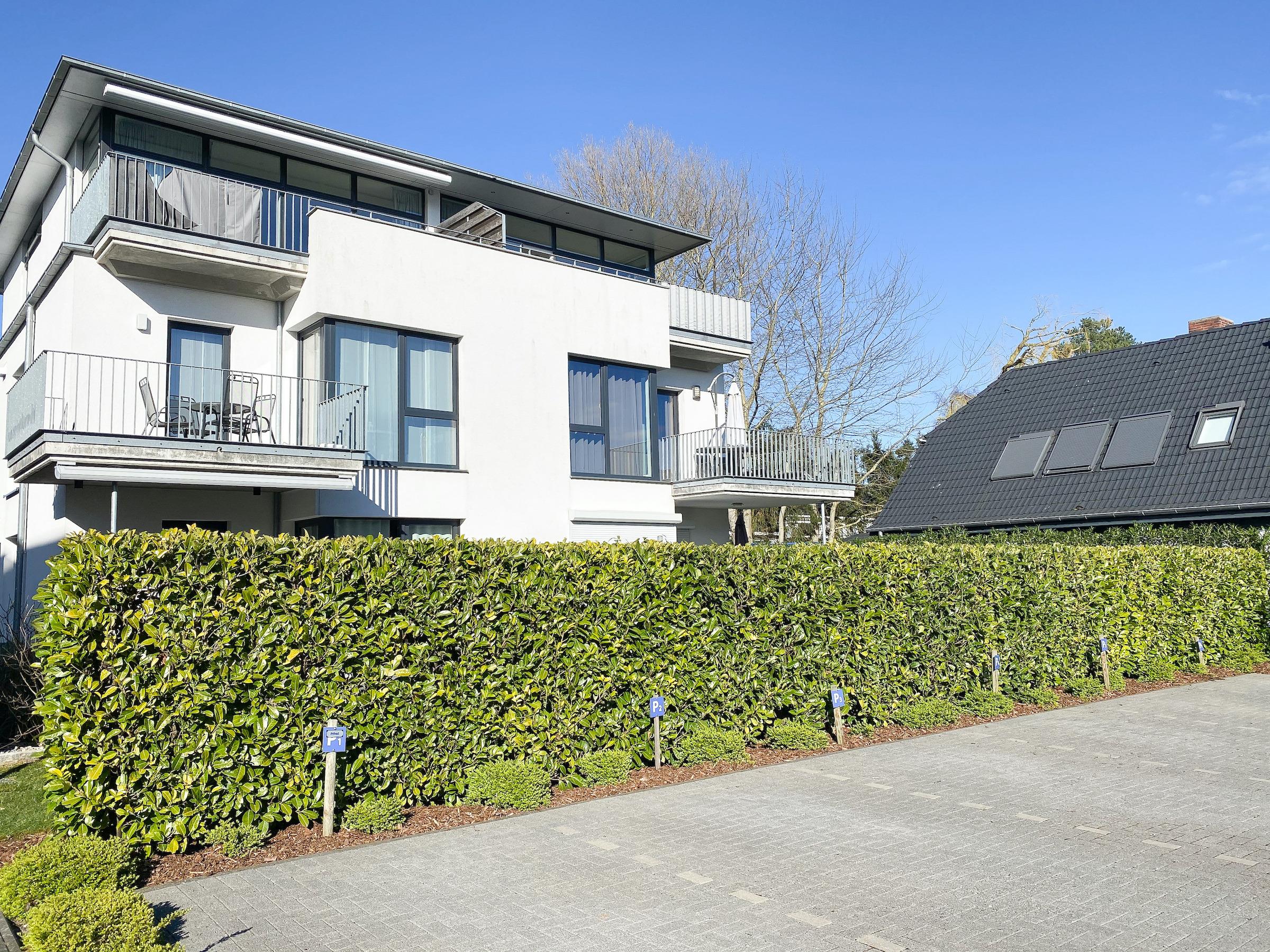 Im Erdgeschoss befindet sich ein nur dieser Ferienwohnung zugänglicher Abstellraum, der mit einer Waschmaschine ausgestattet ist und zum Abstellen von Fahrrädern etc. genutzt werden kann. Ein fester Pkw Stellplatz befindet sich auf dem Grundstück direkt am Haus.
