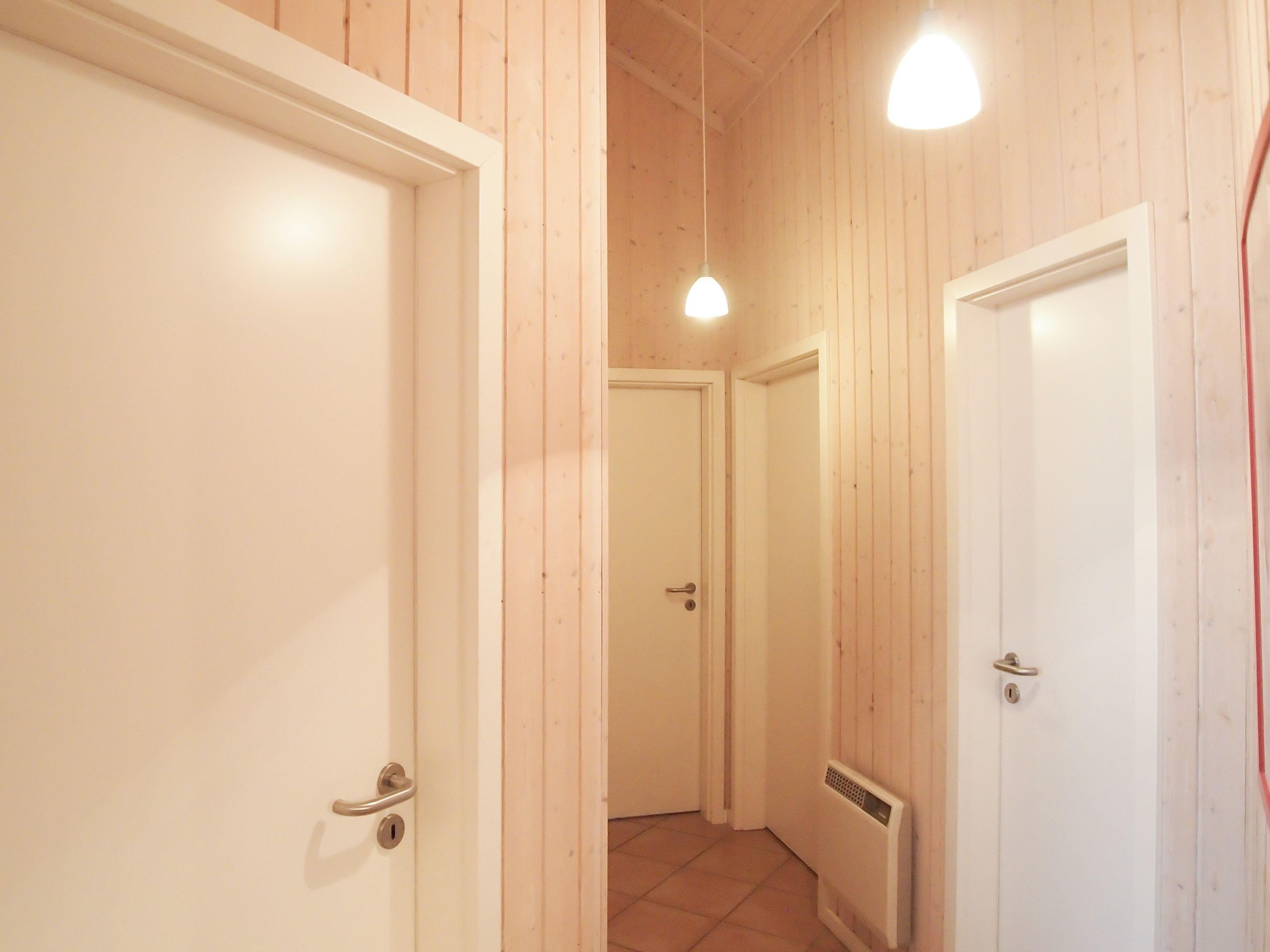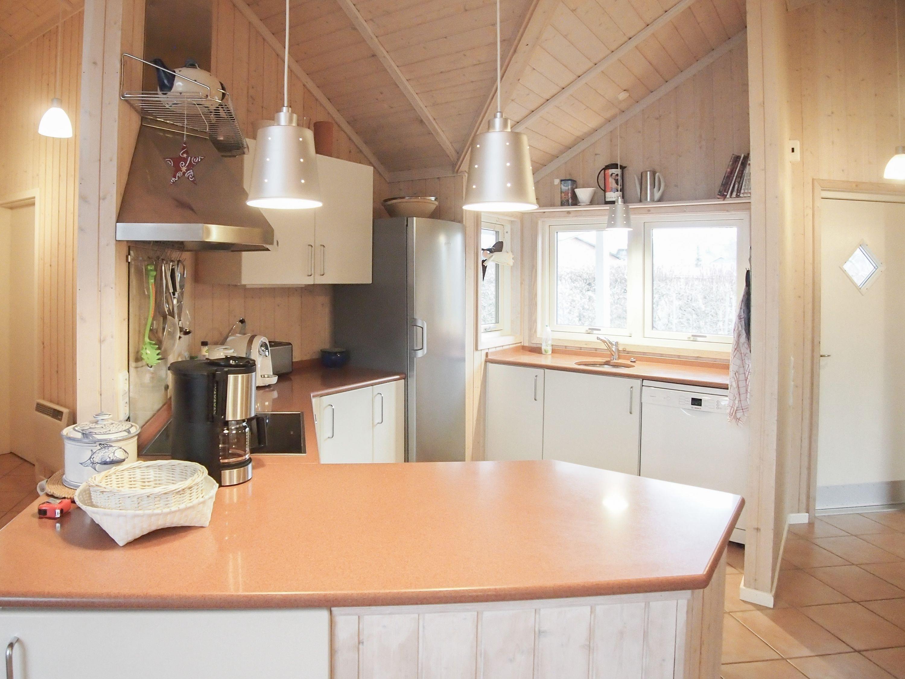 Es erwartet Sie ein heller, freundlicher Wohnraum mit äußerst hohen Decken und viel Fensterfläche, eine offene Einbauküche (Geschirrspüler, Backofen, Mikrowelle) mit einem Essbereich für 6 Personen. Im angrenzenden Wohnbereich befindet sich ein Kaminofen und eine kuschelige Schlafkoje (140x200). Die vorgelagerte Holzterrasse ist zum Süden ausgerichtet und mit Sonnenliegen und Gartenmöbeln ausgestattet. Das Haus verfügt über zwei Schlafzimmer mit Doppelbetten (180x200 und 140x200), eines mit zusätzlichem TV, ein großes Bad mit integrierter Sauna, Badewanne und Dusche sowie ein weiteres Bad mit Dusche.