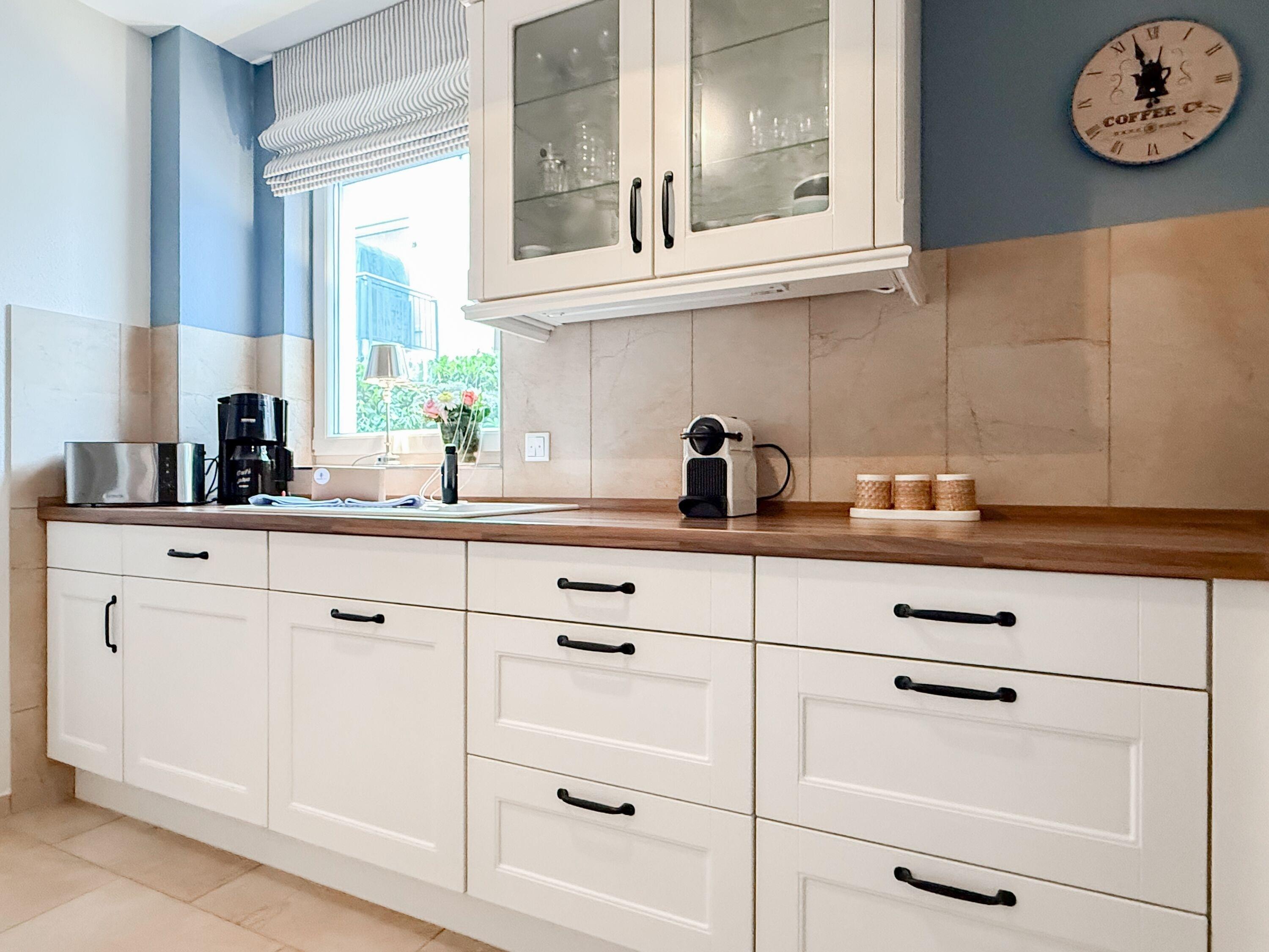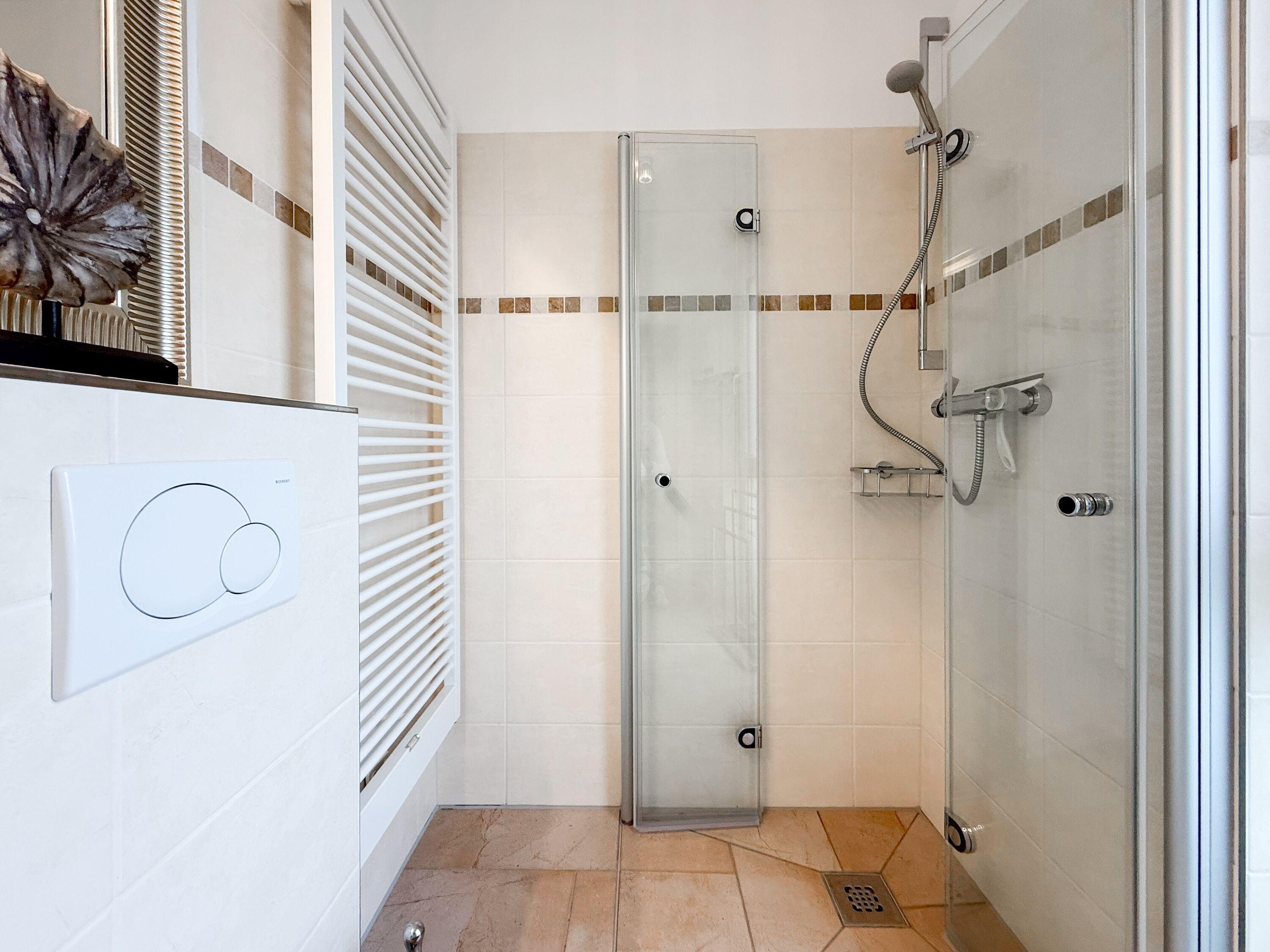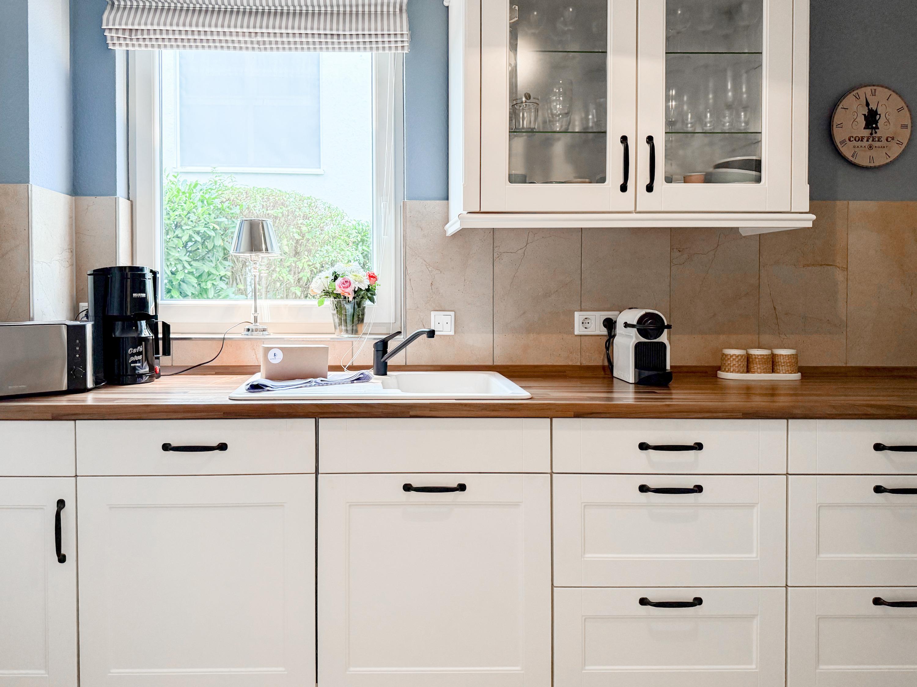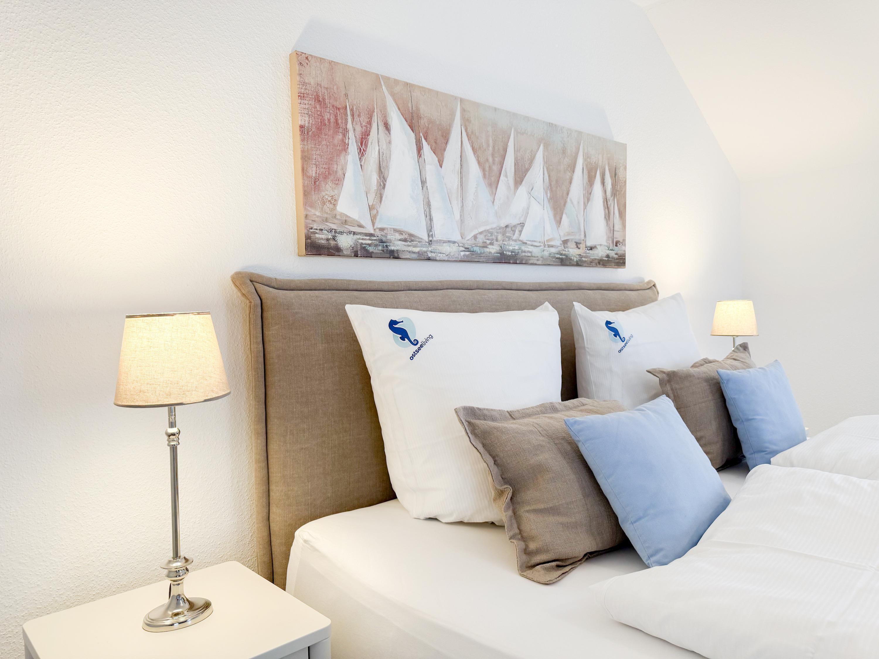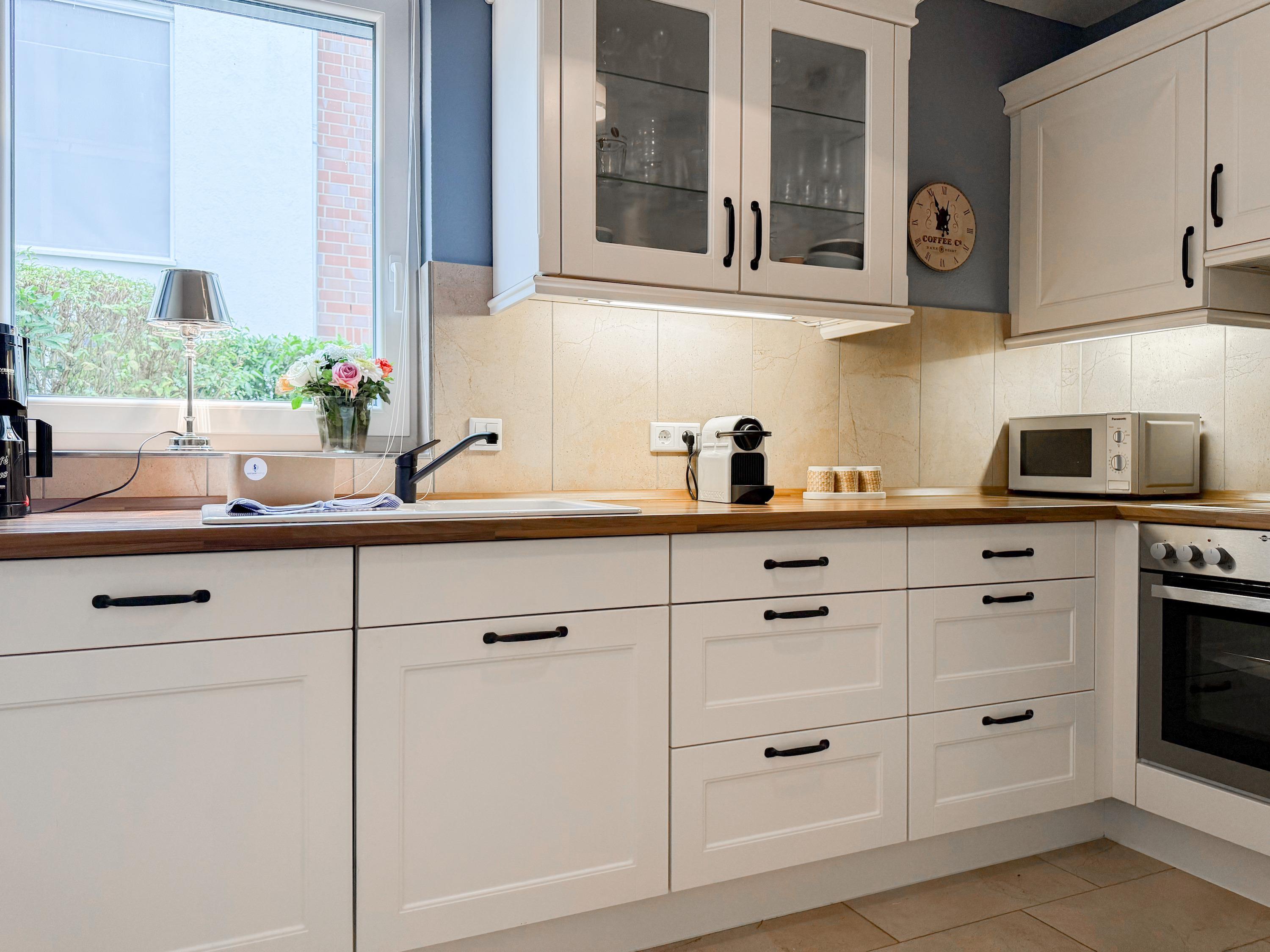 Willkommen in diesem wunderbaren Doppelhaus, das mit 3 Schlafzimmern und 2 Bädern auf über 100 qm Wohnfläche perfekt für 6 Personen geeignet ist, um einen erholsamen Ostseeurlaub in unmittelbarer Nähe zum Strand zu verbringen. Sonnige Räume und die äußerst hochwertige Ausstattung sorgen für besten Wohnkomfort in einem angenehmen Ambiente. Im Erdgeschoss erwartet Sie ein großzügiger Wohnbereich, der mit einem komfortablen Ecksofa und einem TV eingerichtet ist. Der angrenzende Essbereich ist ebenfalls großzügig gestaltet und verfügt über einen runden Esstisch, eine Sitzbank sowie Stühle, die perfekt für gesellige Stunden und gemeinsame Mahlzeiten geeignet sind. Besonders schön ist die nach Süden ausgerichtete Sonnenterrasse, die viel Tageslicht einfängt. Sie ist mit Gartenmöbeln, einem Strandkorb und einer elektrischen Markise ausgestattet, die an sonnigen Tagen für Schatten sorgt. Die großzügige, separat gelegene Einbauküche ist hervorragend ausgestattet und bietet alle Annehmlichkeiten, die man für das gemeinsame Kochen benötigt. Hier können Sie sich in geselliger Runde beim Kochen austauschen und kreativ sein. Im Eingangsbereich befindet sich eine praktische Garderobe, die Platz für Jacken und Schuhe bietet. Angrenzend gibt es ein modernes Tageslichtbad, ausgestattet mit Dusche, Waschbecken und WC. Waschmaschine und Trockner sind in einem separaten Abstellraum untergebracht, ebenfalls im Erdgeschoss. Im Obergeschoss befindet sich ein weiteres Badezimmer mit Waschtisch, Duschwanne, WC und Fenster. Rechts und links davon sind zwei separate Schlafzimmer angeordnet. Schlafzimmer 1 ist äußerst geräumig und mit einem Boxspringbett (180x210), einem Kleiderschrank mit ausreichend Stauraum für Ihre Urlaubsgarderobe und einem Fernseher eingerichtet. Ein kleiner Wohnbereich mit einem Sofa bietet einen gemütlichen Rückzugsort zum Entspannen und Lesen. Schlafzimmer 2 ist ebenfalls mit einem Doppelbett (180x200), TV, einem geräumigen Kleiderschrank sowie einer Leseecke ausgestattet. Im Dachgeschoss befindet sich das 3. Schlafzimmer mit einem Boxspringbett (160x200), Kleiderschrank, TV und Schreibtisch. Die Dachflächenfenster lassen sich über ein Rollo verdunkeln, alle anderen Fenster des Hauses sind mit elektrischen Außenjalousien versehen. WLAN steht selbstverständlich kostenlos zur Verfügung. Vor dem Haus befinden sich zwei Parkplätze. Fahrräder können sicher und trocken im Schuppen direkt am Haus untergebracht werden.