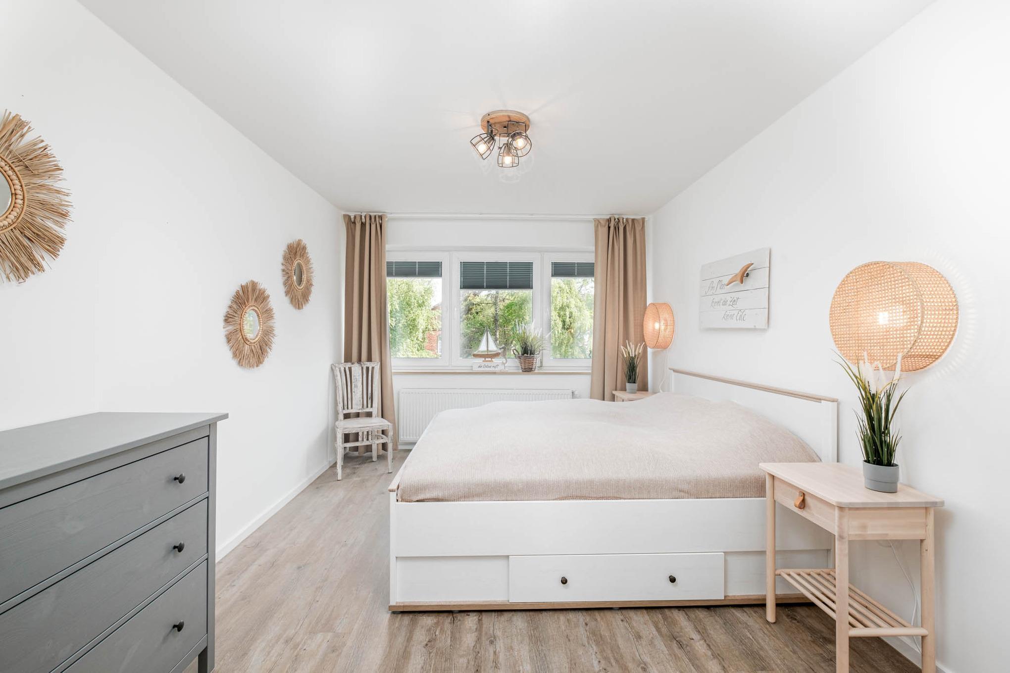 Genießen Sie Ihren Traumurlaub in der maritim gestalteten und frisch renovierten Niendorf/Ostsee Ferienwohnung, nur einen Steinwurf vom Strand entfernt. Mit zwei gemütlichen Schlafzimmern, die jeweils mit einem bequemen Doppelbett (1,80x2,00m) ausgestattet sind, werden Sie garantiert erholsame Nächte verbringen.