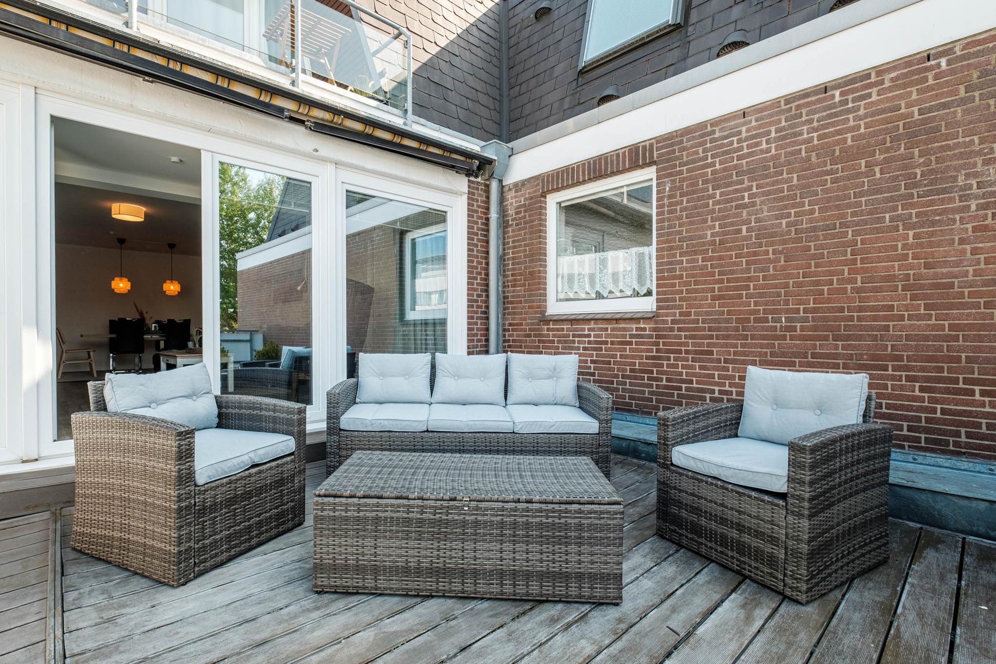 Nach einem erlebnisreichen Tag können Sie auf dem Balkon des Appartements entspannen und dank der Süd-Ausrichtung auch noch sonnige Abendstunden genießen. Genieße Sie den ausklingenden Tag bei einem Glas Wein und lassen Sie sich vom beruhigenden Rauschen der Wellen in den Schlaf wiegen.