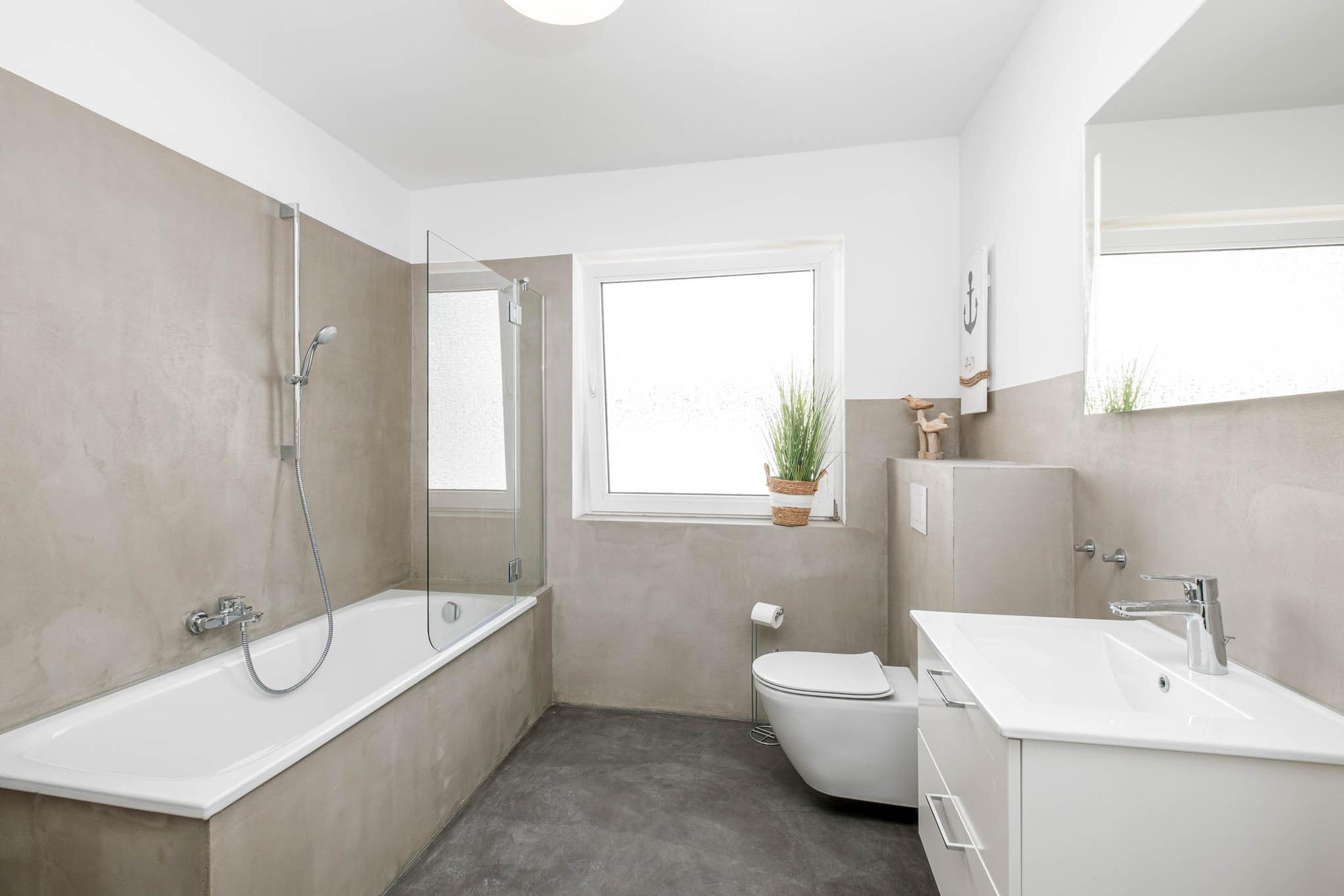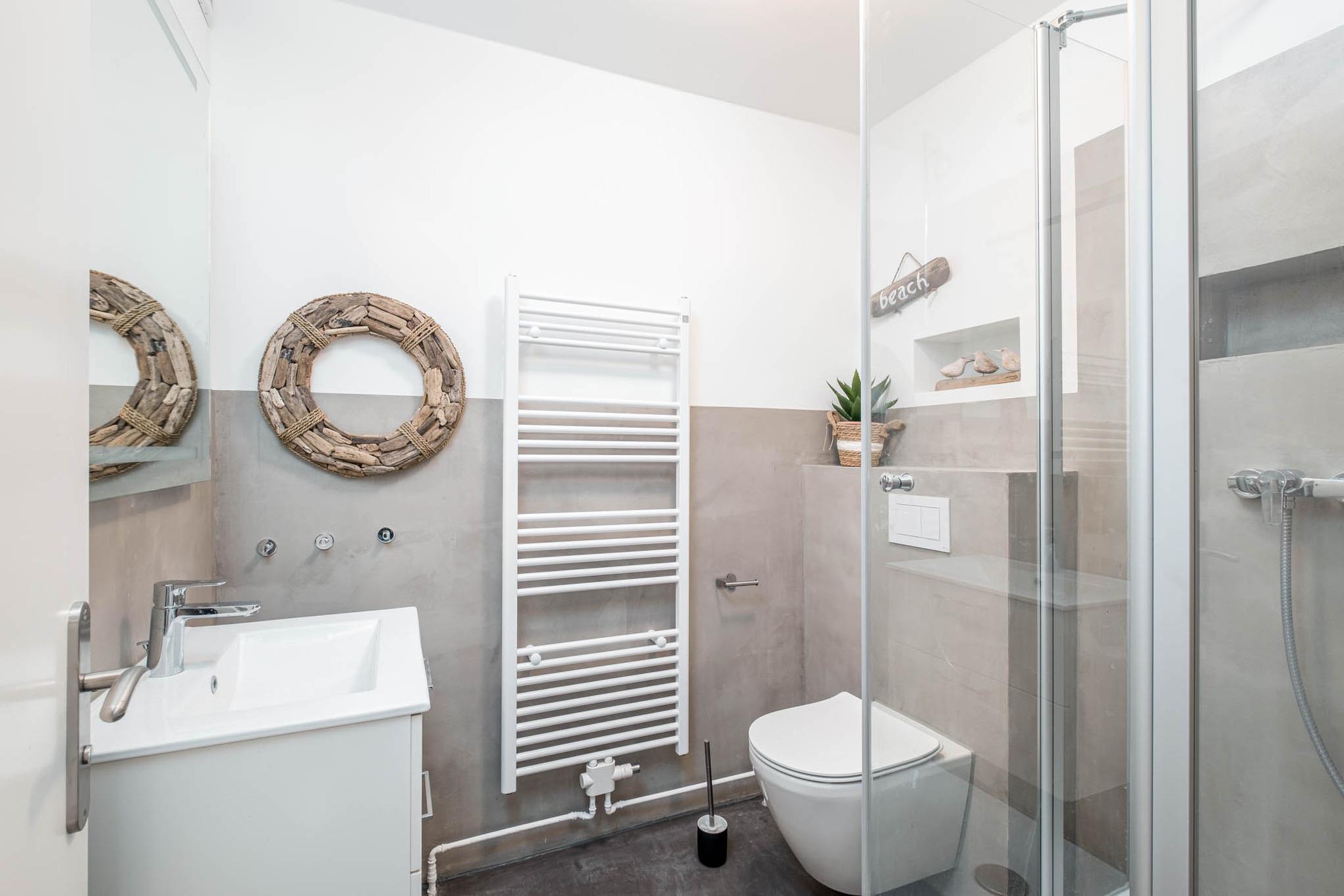 Die zwei Bäder - eines mit Dusche und WC, das andere mit Badewanne und WC - lassen Sie die Alltagssorgen und das Meersalz von der Haut spülen.