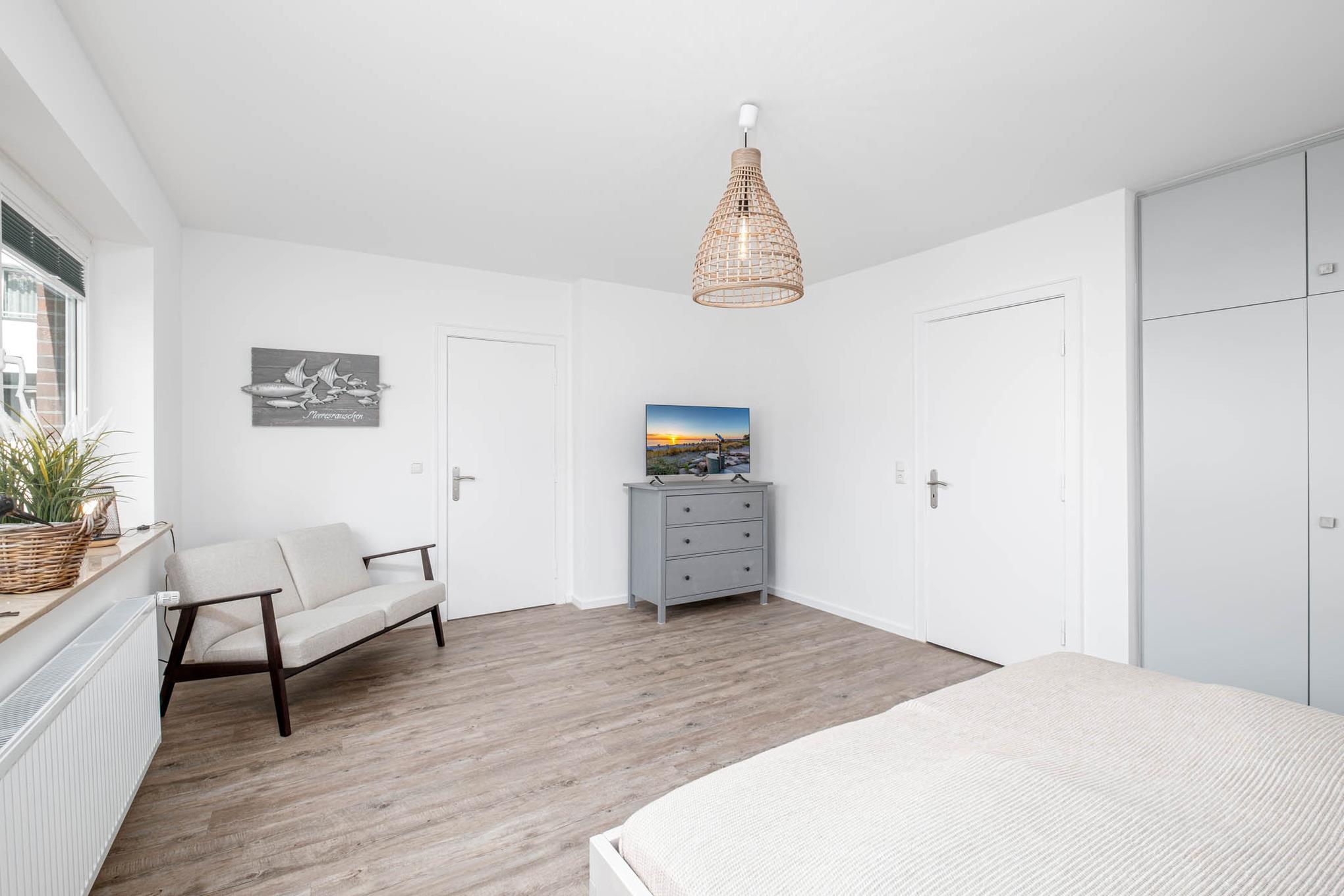 Eines dieser Schlafzimmer bietet Ihnen Sie zudem einen zusätzlichen TV für entspannte Abendstunden, hier verfügt das Bett über einen durchgängigen Topper.
