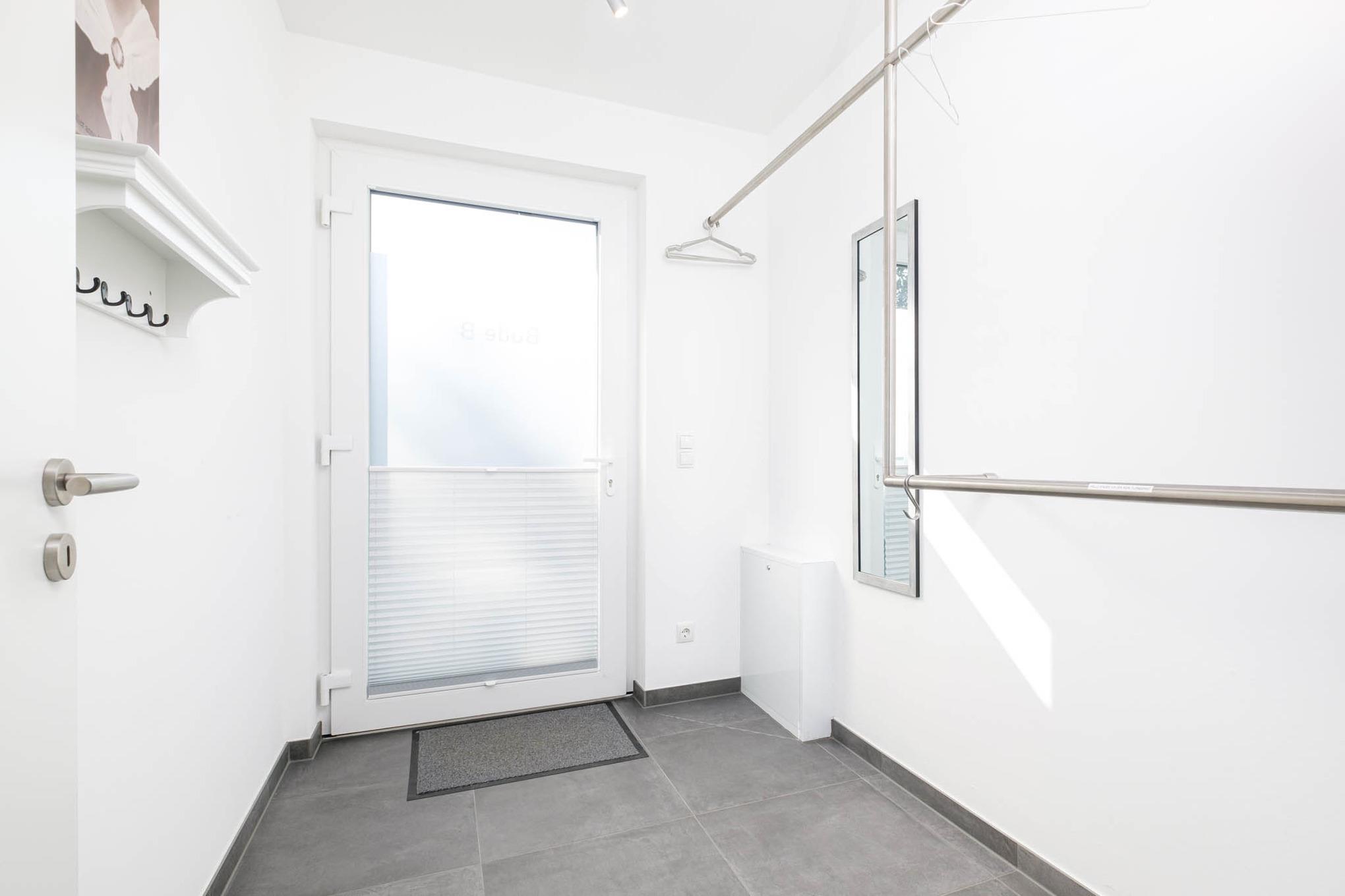 Hier kann die ganze Rasselbande die Schuhe und Jacken loswerden und das Reisegepäck nach der Ankunft erst einmal abstellen, denn dann heißt es: Schuhe aus und ab ins Haus!