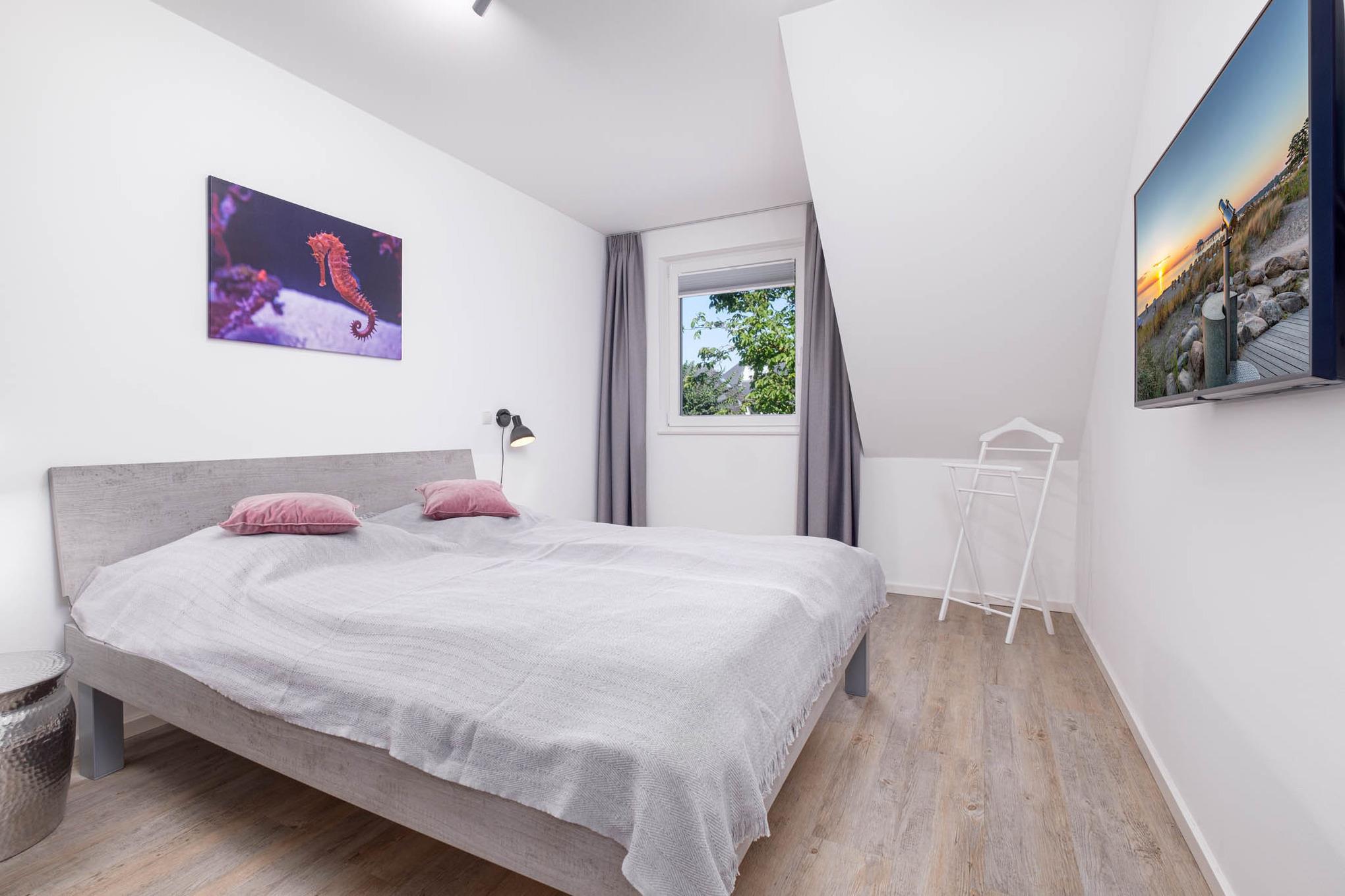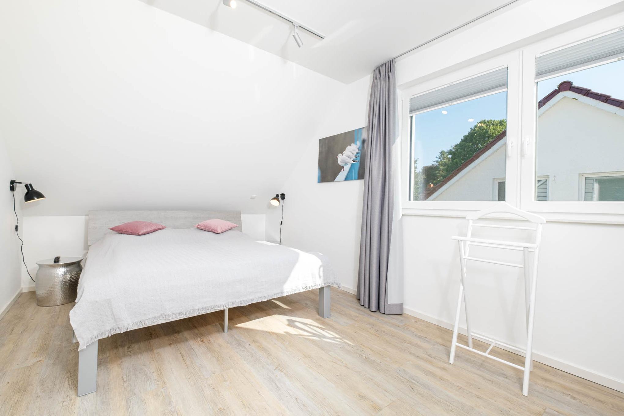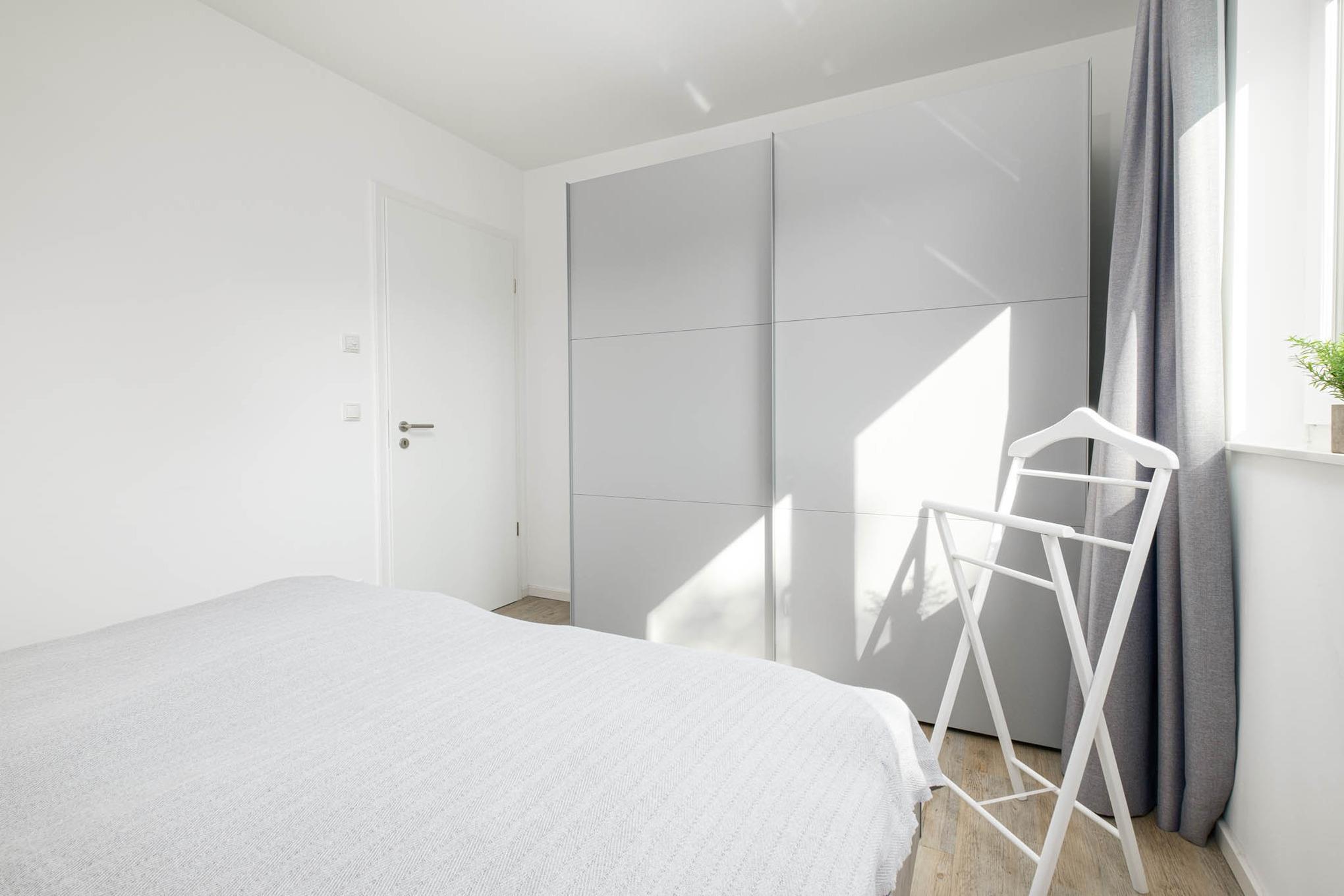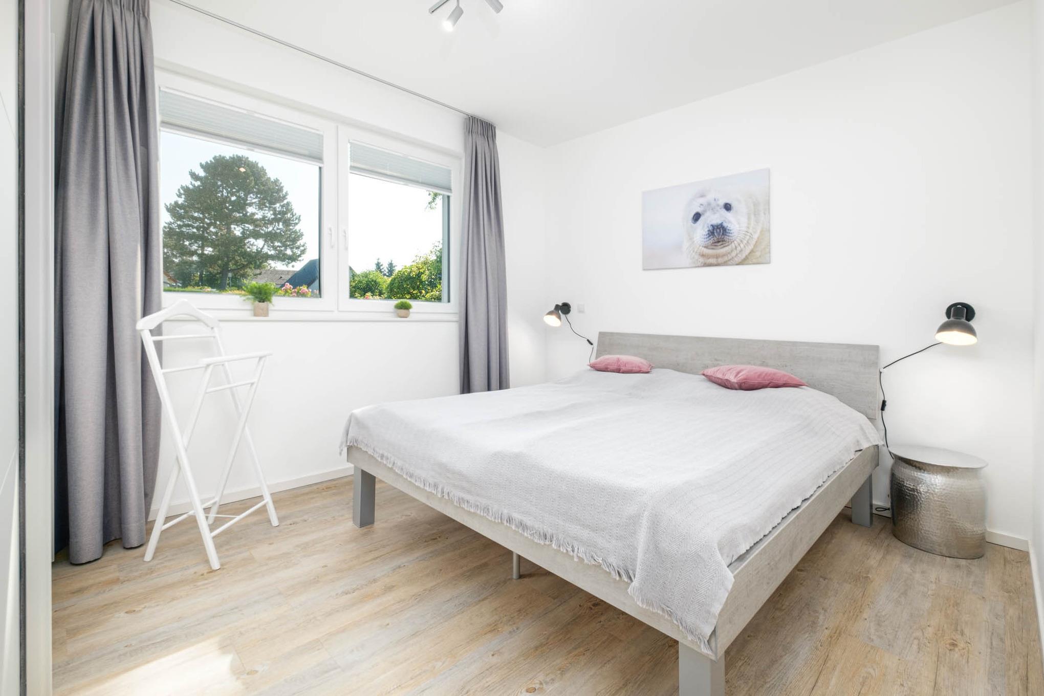 Auch das Schlafzimmer I mit komfortablem Doppelbett (1,80 x 2,00m, getrennte Matratzen) und Kleiderschrank befindet sich im Erdgeschoss.