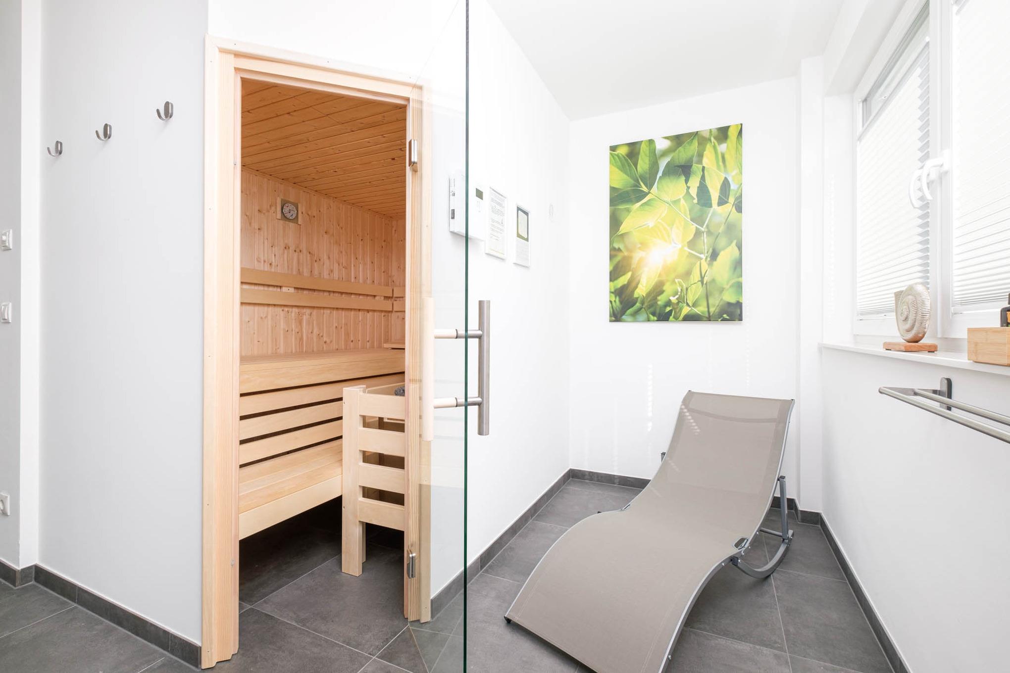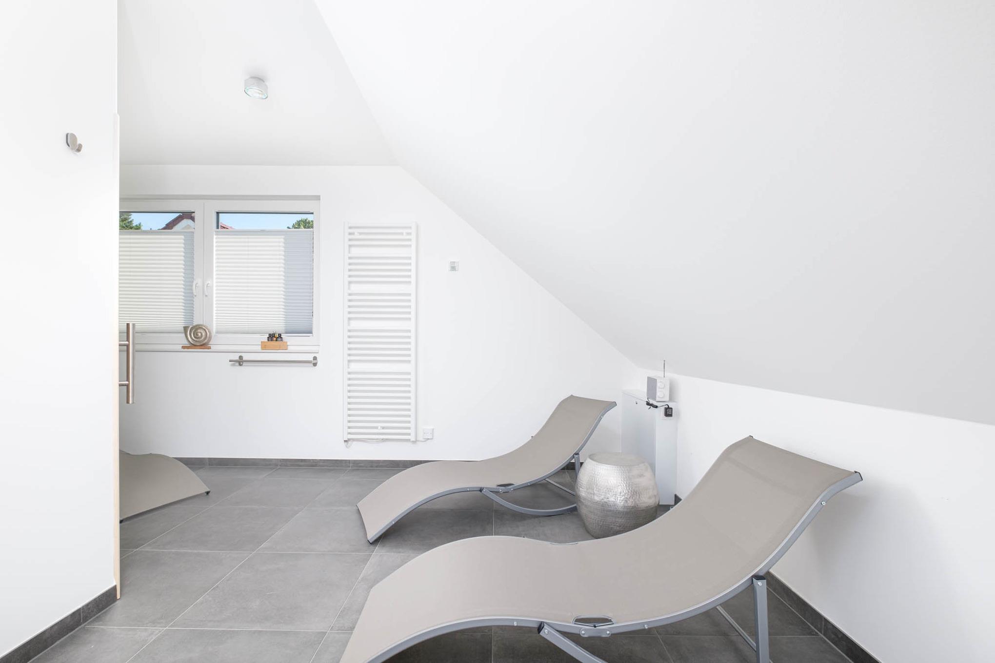 Insbesondere an kalten Wintertagen oder für die Extraportion Wellness finden Sie auf diesem Stockwerk das großzügige Badezimmer II vor. Mit einem WC, einer Dusche, drei Liegen sowie der Sauna als absolutes Highlight, lässt Ihnen dieses Ostseedomizil gar keine andere Möglichkeit, als sich pudelwohl zu fühlen!