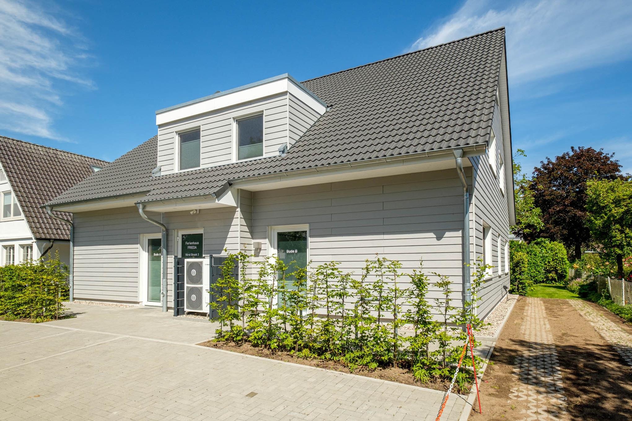 Das Haus wurde nach der Großmutter der Eigentümer benannt, die im Jahr 1961 dass Grundstu¨ck erworben und ein Ha¨uschen gebaut hat - fu¨r ihre Kinder und Enkelkinder. Nun haben die Enkelkinder mit viel Liebe dieses neue Ferienhaus gebaut und die beiden Doppelhaushälften "Bude A" und "Bude B" mit viel Liebe zum Detail sehr geschmackvoll ausgestattet.