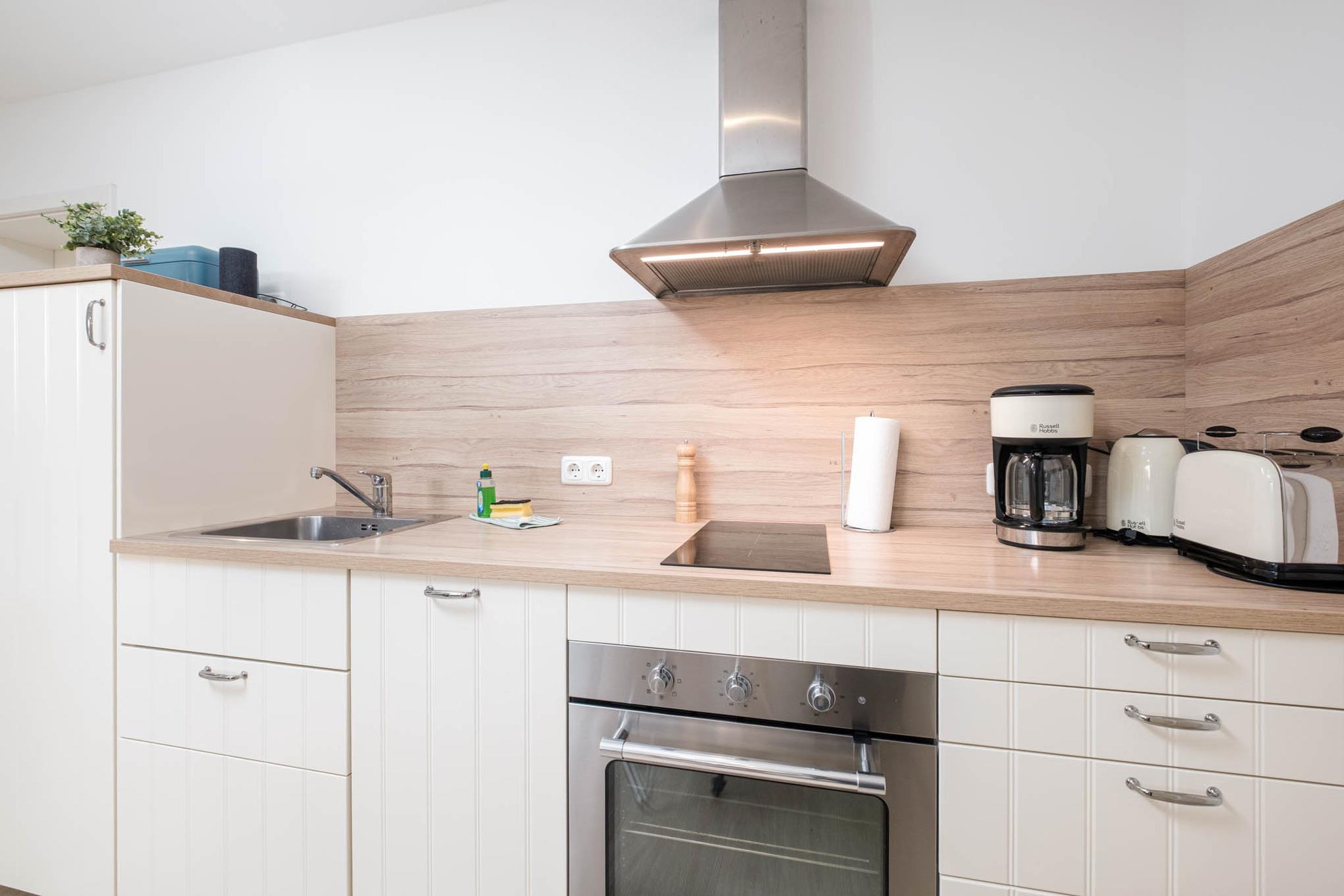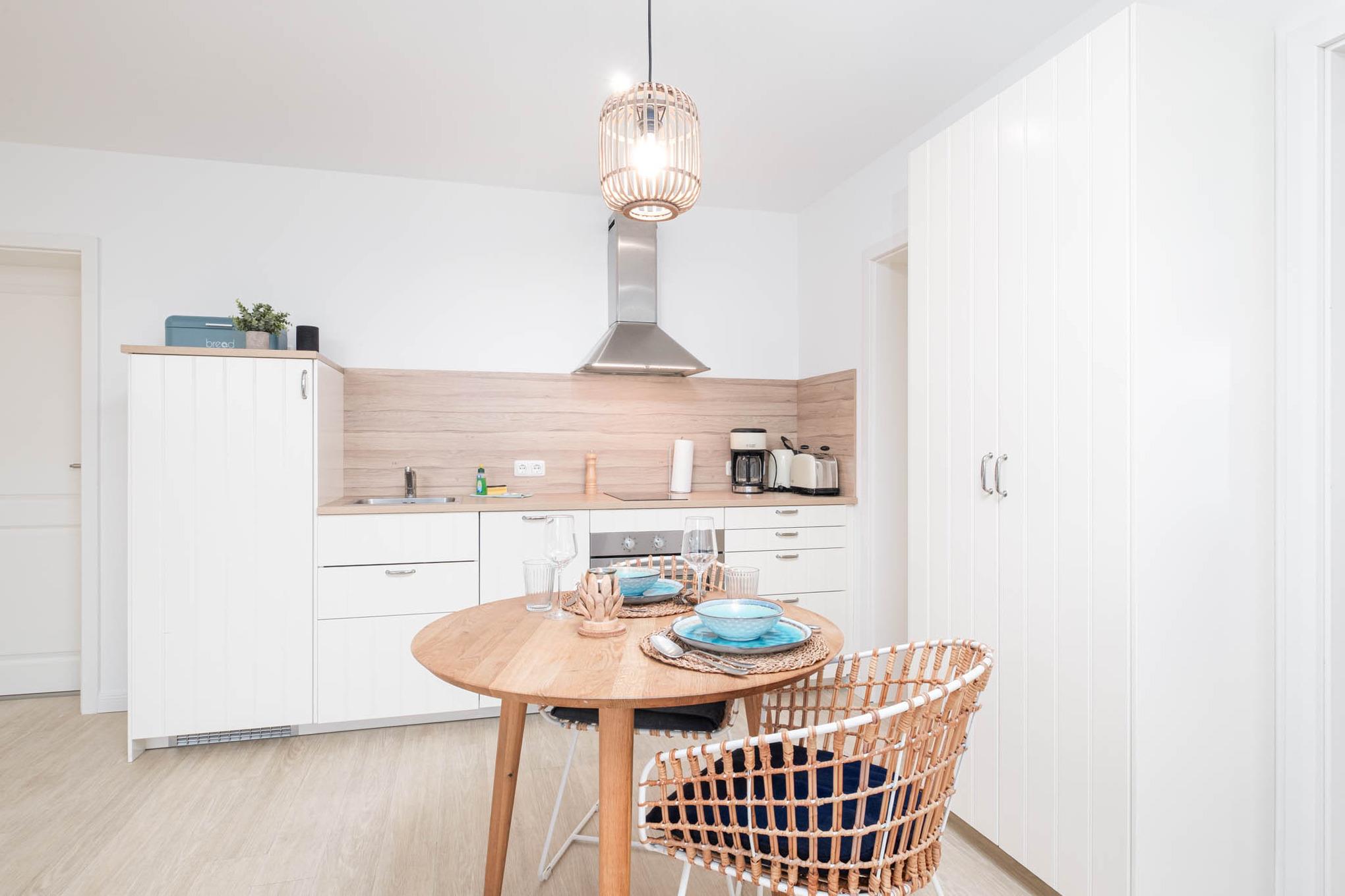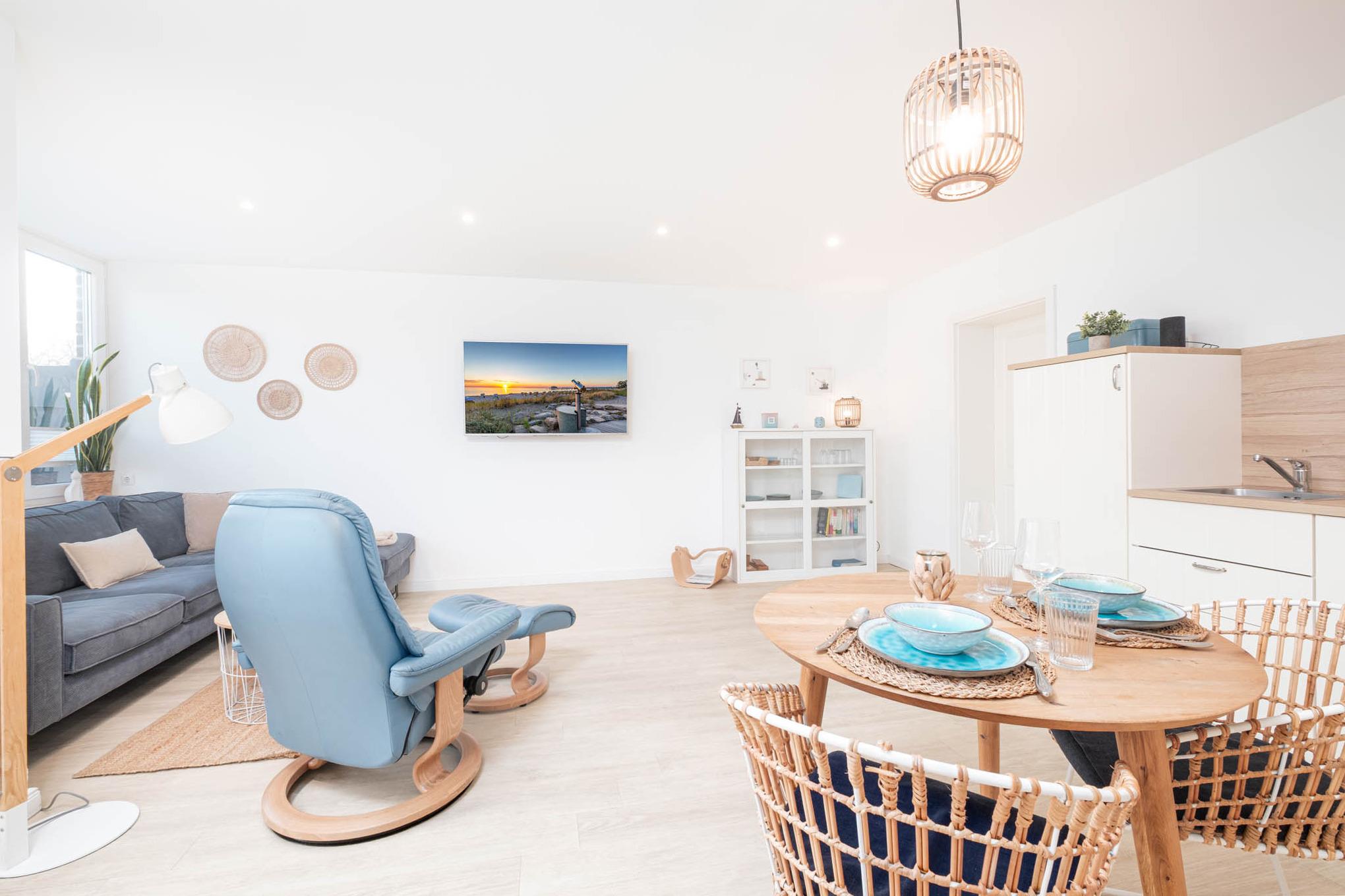 Das Wohnzimmer ist mit einer komfortablen Couch, einem sehr bequemen Relax-Sessel, einem Flatscreen-TV und dem Essbereich eingerichtet. Die moderne und offene Küche im Wohnbereich verfügt über die modernsten Geräte und lässt für die Verpflegungsmöglichkeiten keine Wünsche offen.