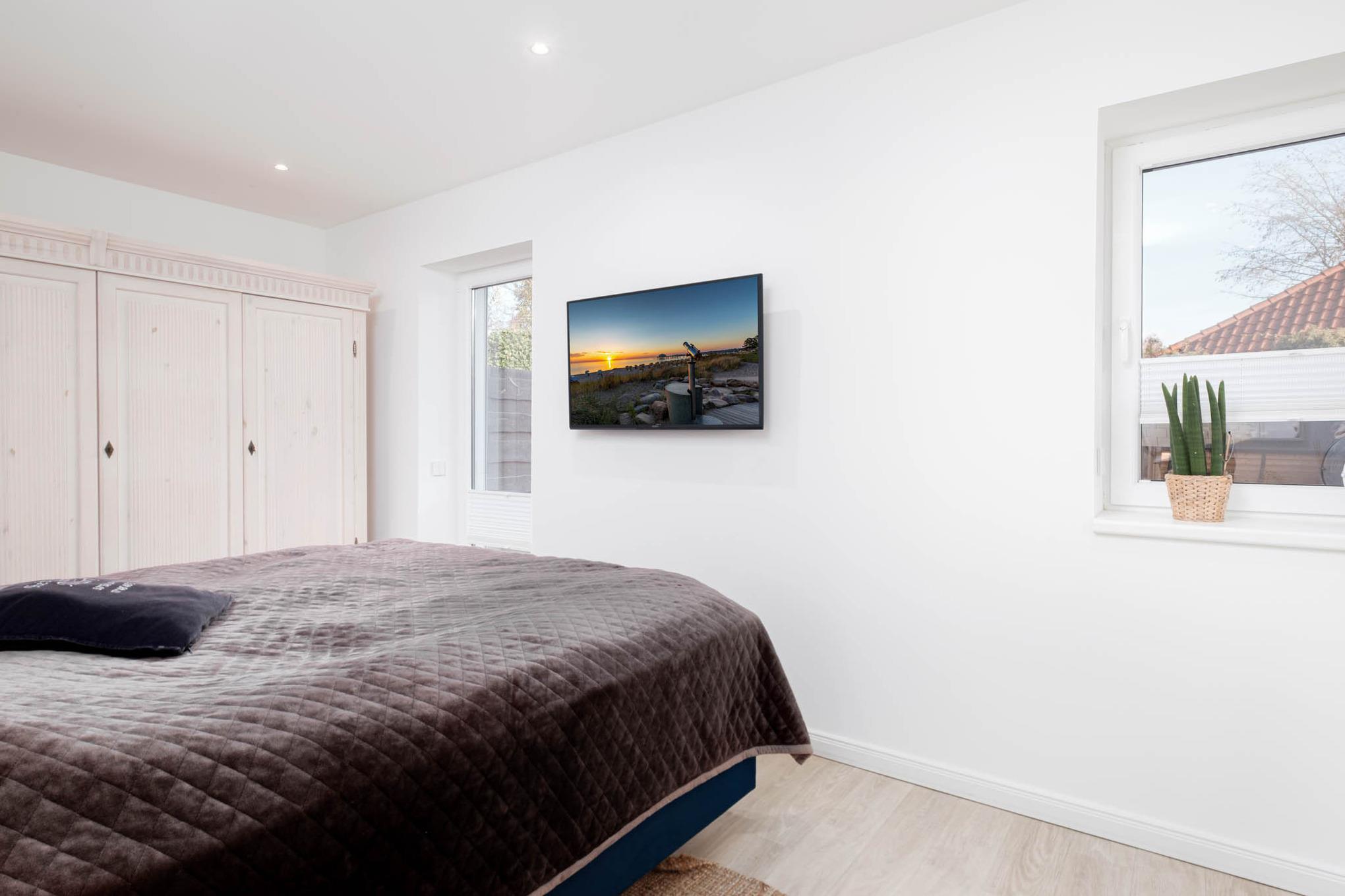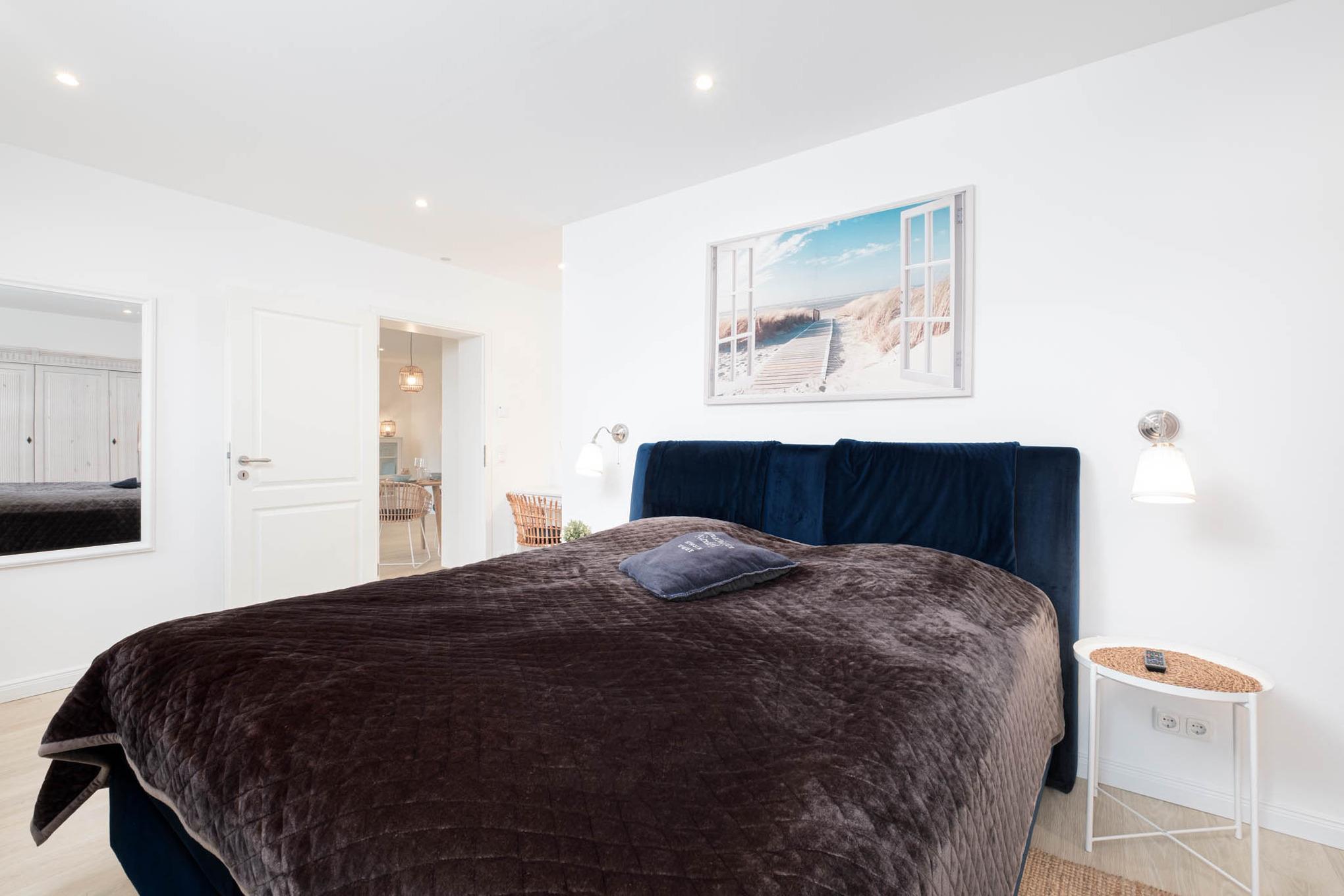 Das separate Schlafzimmer ist mit einem sehr komfortablen Box-Spring-Bett ausgestattet in dem es sich herrlich träumen und erholen lässt. Der zweite Flatscreen-TV sorgt für zusätzliche Entspannung, wenn man einmal getrennt TV schauen möchte. Ein großer Kleiderschrank bietet genügend Stauraum für Hosen, Pullis, Jacken und das weitere Reisegepäck.