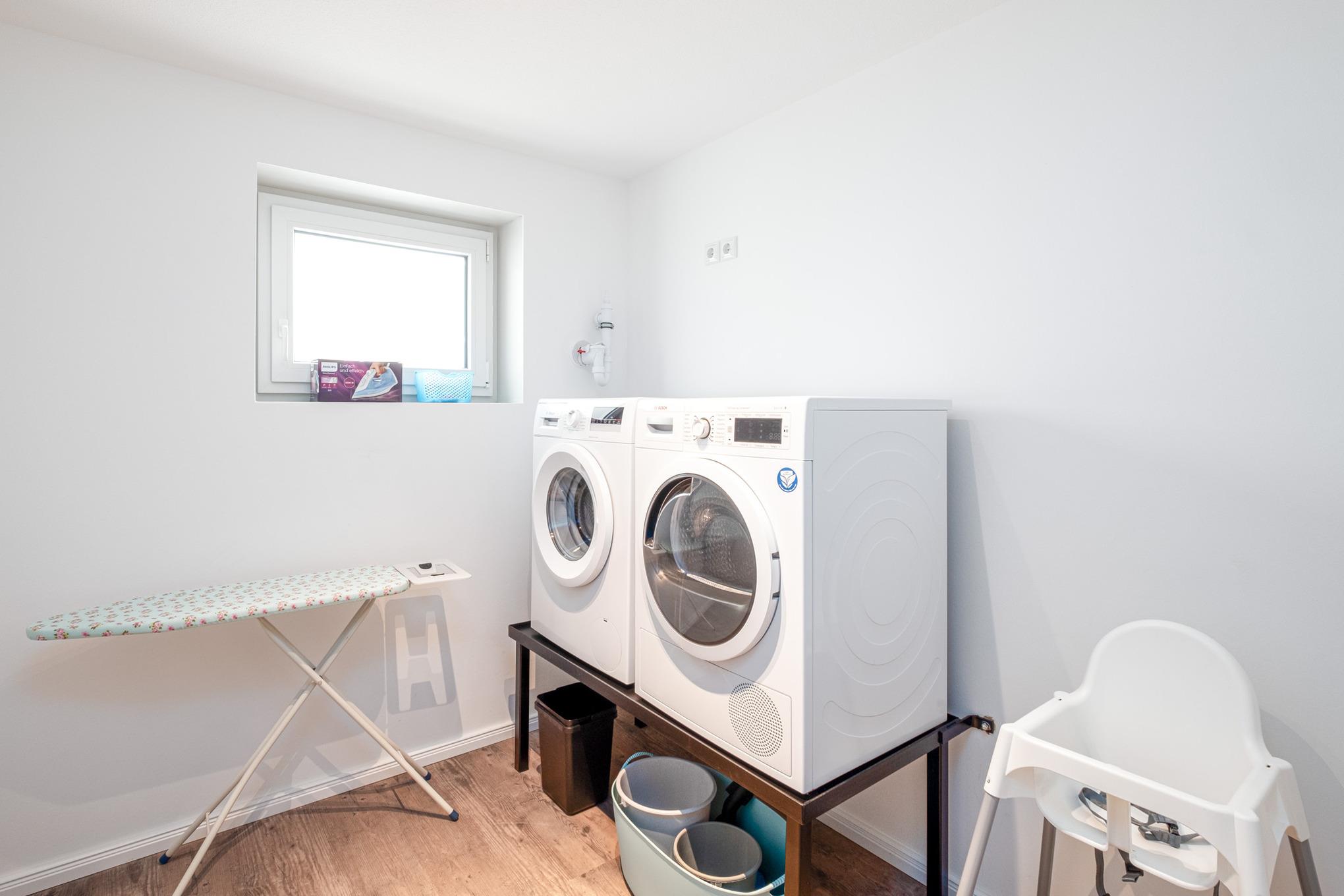 Für zusätzlichen Komfort in Ihrem Ostseeurlaub stehen für Sie im Haushaltsraum des Appartements im Untergeschoss eine Waschmaschine und ein Trockner zur alleinigen Nutzung bereit.