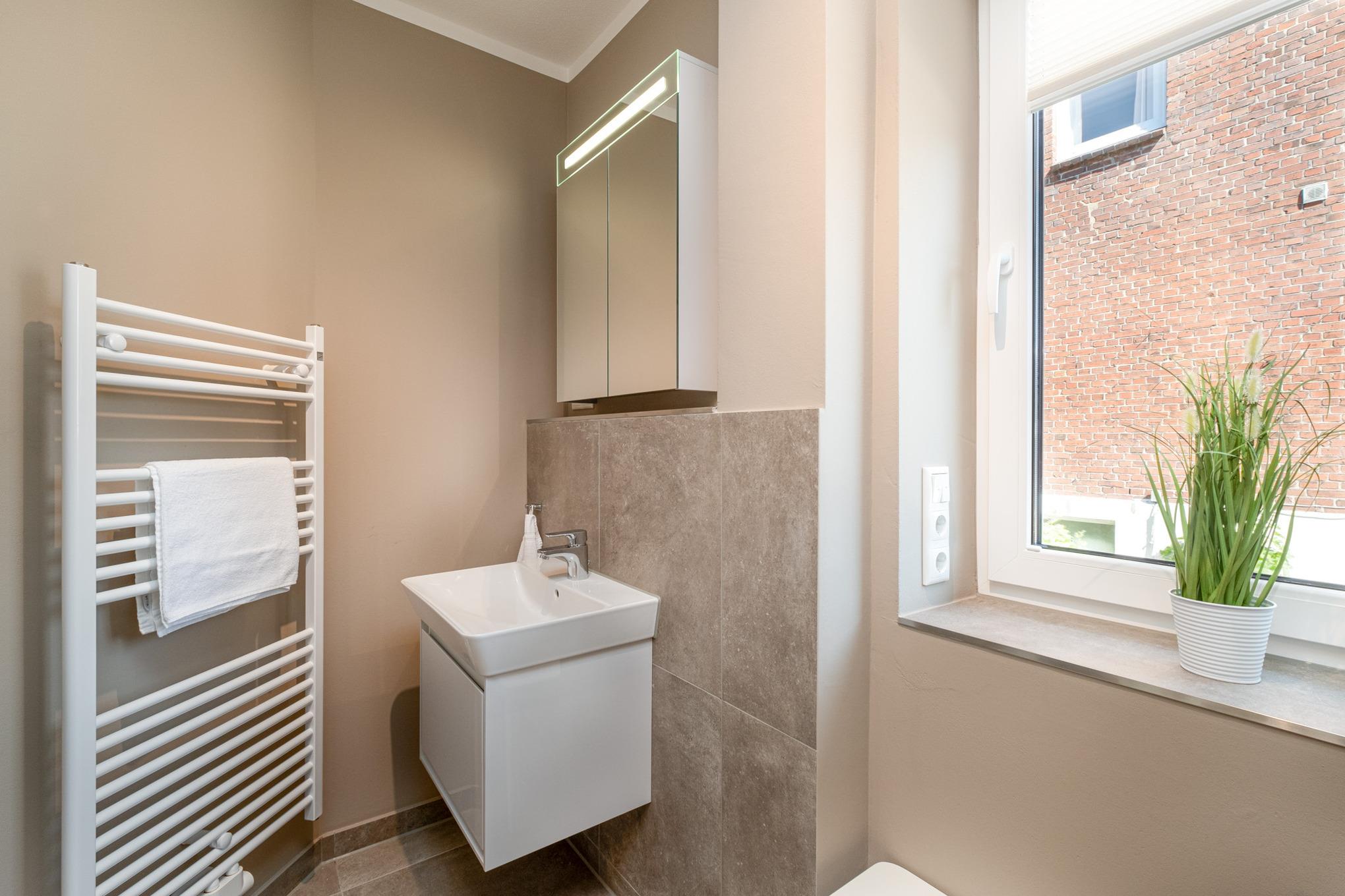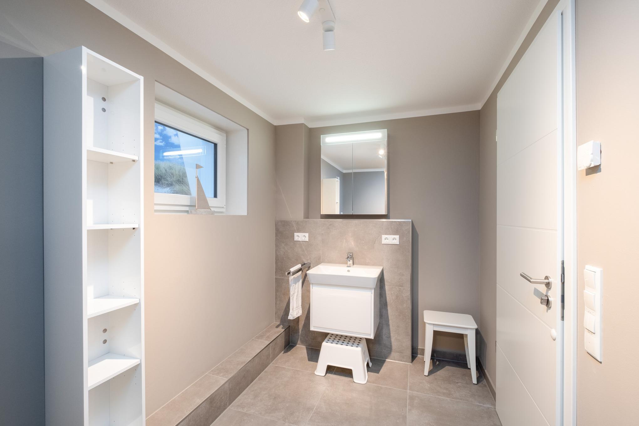 Darüber hinaus wird das Erdgeschoss der Niendorf Ferienwohnung durch ein Bad mit Dusche/WC abgerundet.
