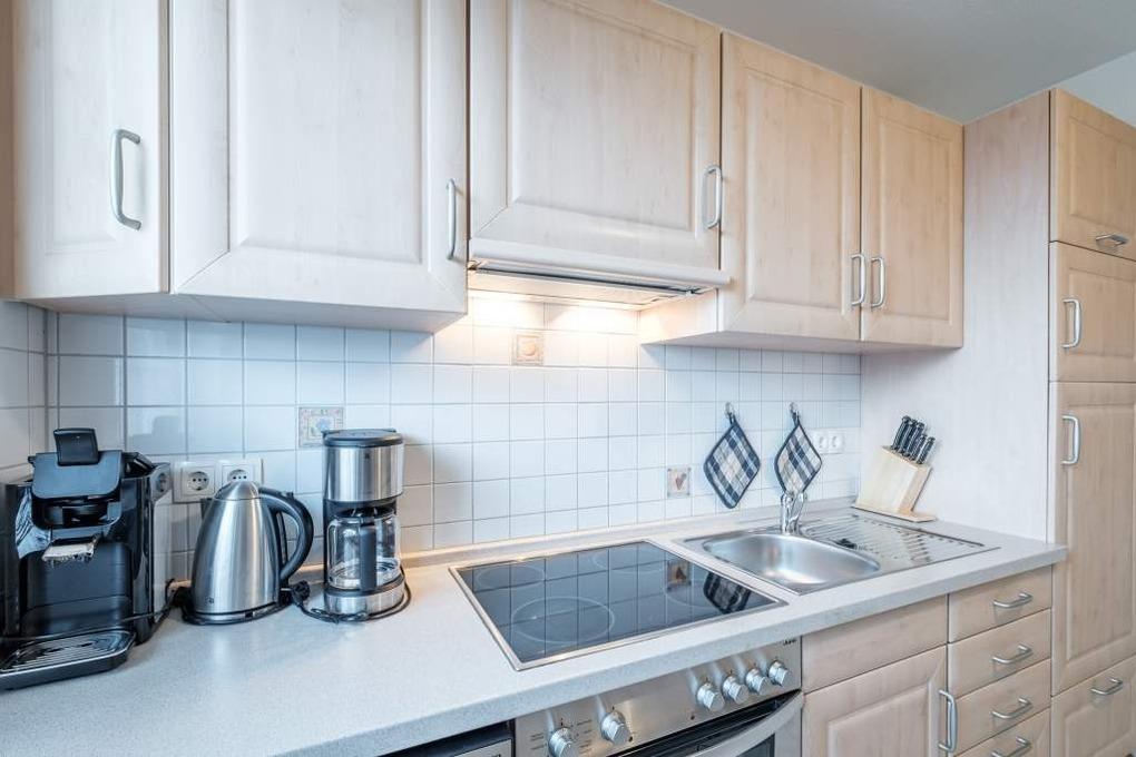 Die separate Küche ist mit allen notwendigen Küchenutensilien ausgestattet u.a. sind Ceranfeld, Backofen, Senseo Kaffeemaschine, Mikrowelle und Geschirrspüler vorhanden. Ebenfalls haben Sie hier eine Sitzgelegenheit für 2 Personen.