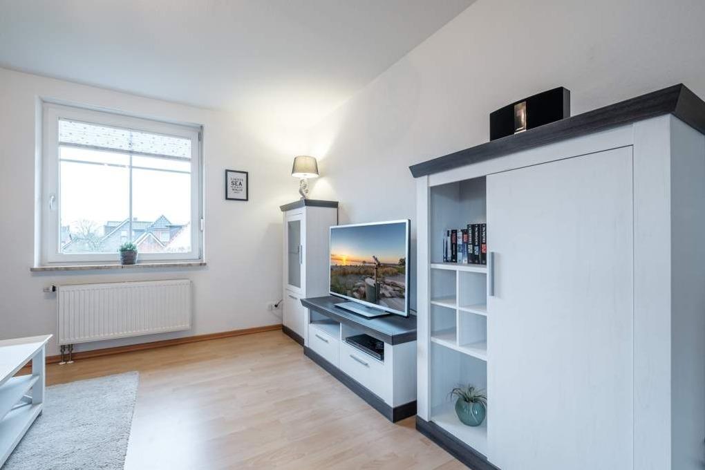 Es erwartet Sie eine großzügige Diele von der Sie in das helle Wohnzimmer mit Schlafcouch, Flatscreen-TV, Blu-Ray-Player und Essbereich für 4 Personen gelangen. Vom Wohnbereich gelangen Sie auf den großzügigen, möblierten Balkon in Süd-West Lage auf welchem Sie die Sonne ab mittags bis zum Abend genießen können.