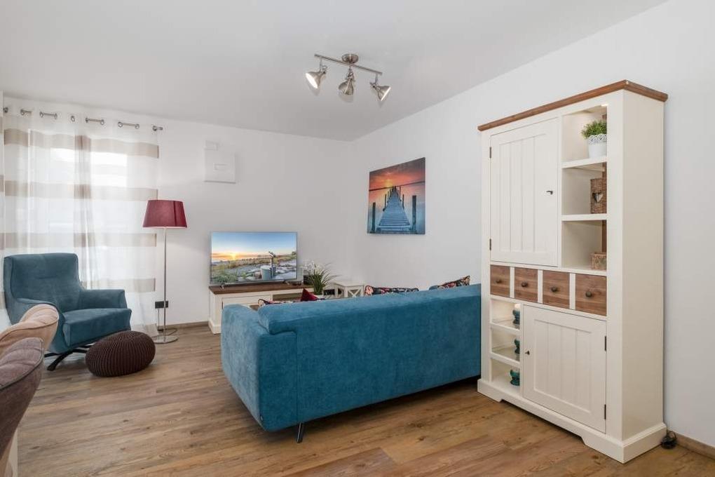 Ebenso haben Sie vom Wohnzimmer der Ferienwohnung Zugang zur möblierten Terrasse, die in Richtung Nord-Ost zeigt.