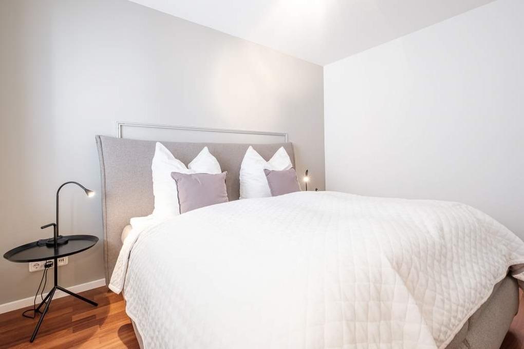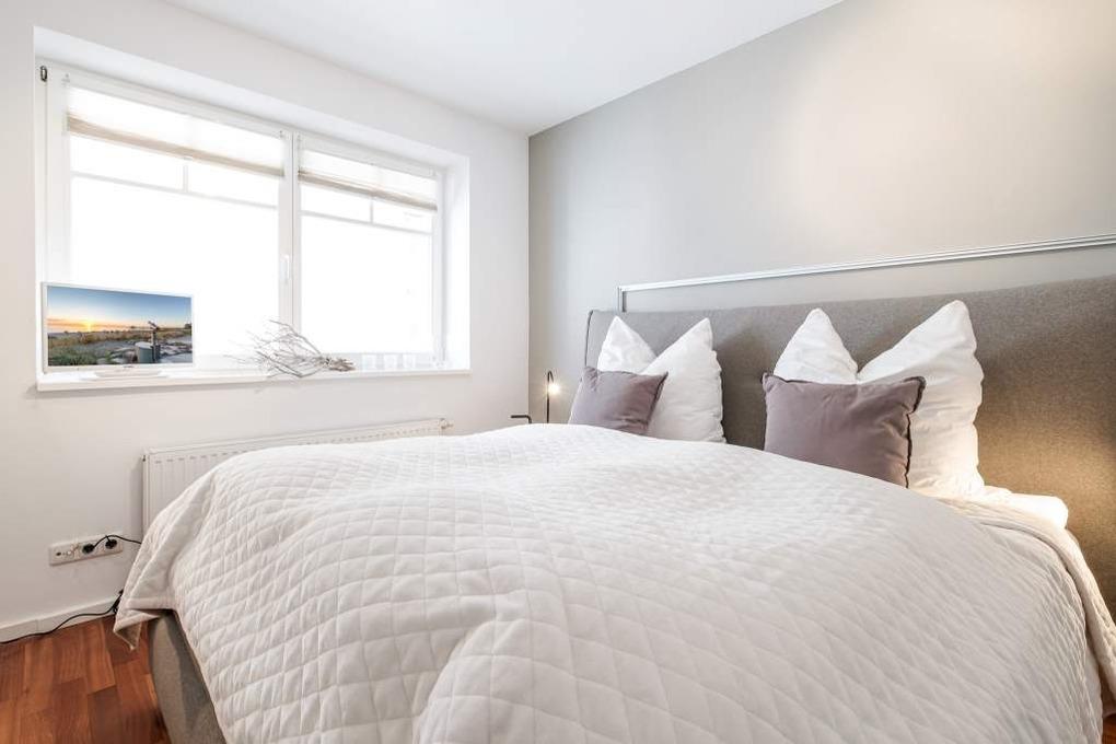 Das separate Schlafzimmer ist mit einem Doppelbett (180x200cm) ausgestattet. Das Badezimmer der Ferienwohnung Niendorf verfügt über einen Doppelwaschtisch, eine Dusche sowie eine Badewanne. Der möblierte Balkon in Nord-Lage mit dem traumhaften Meerblick rundet dieses wunderschöne Urlaubsdomizil ab.