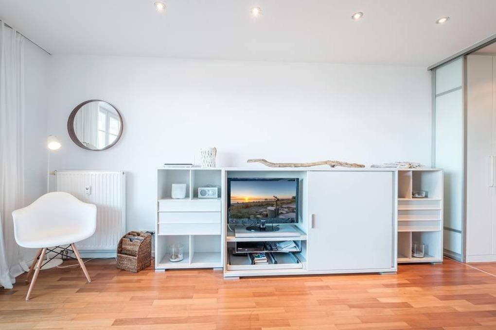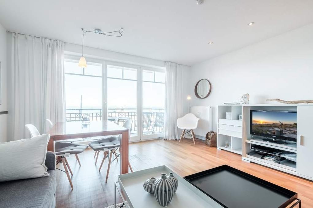 In diesem sehr modern eingerichteten Appartement erwartet Sie ein traumhafter Meerblick! Die Niendorf Ferienwohnung Sunrise ist für maximal 4 Personen ausgestattet. Das Wohnzimmer ist mit einem großen Couchbereich, der gleichzeitig einen Schlafplatz für 2 Personen bietet, einem Flatscreen-TV mit DVD-Player, sowie einer Stereo-Anlage mit Radio eingerichtet.