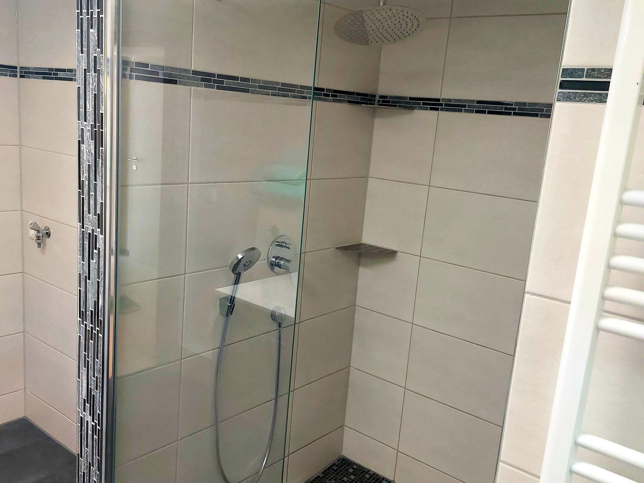 Das Bad ist mit seiner 2qm Dusche ein weiteres Highlight der Wohnung.