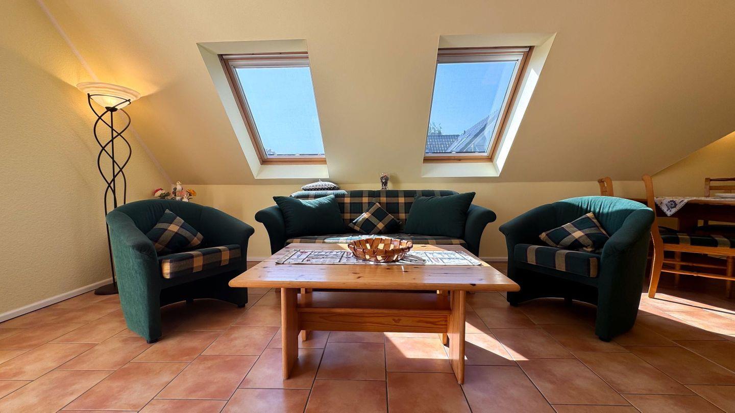 Die im Landhausstil ausgestattete Ferienwohnung befindet sich im Obergeschoss /