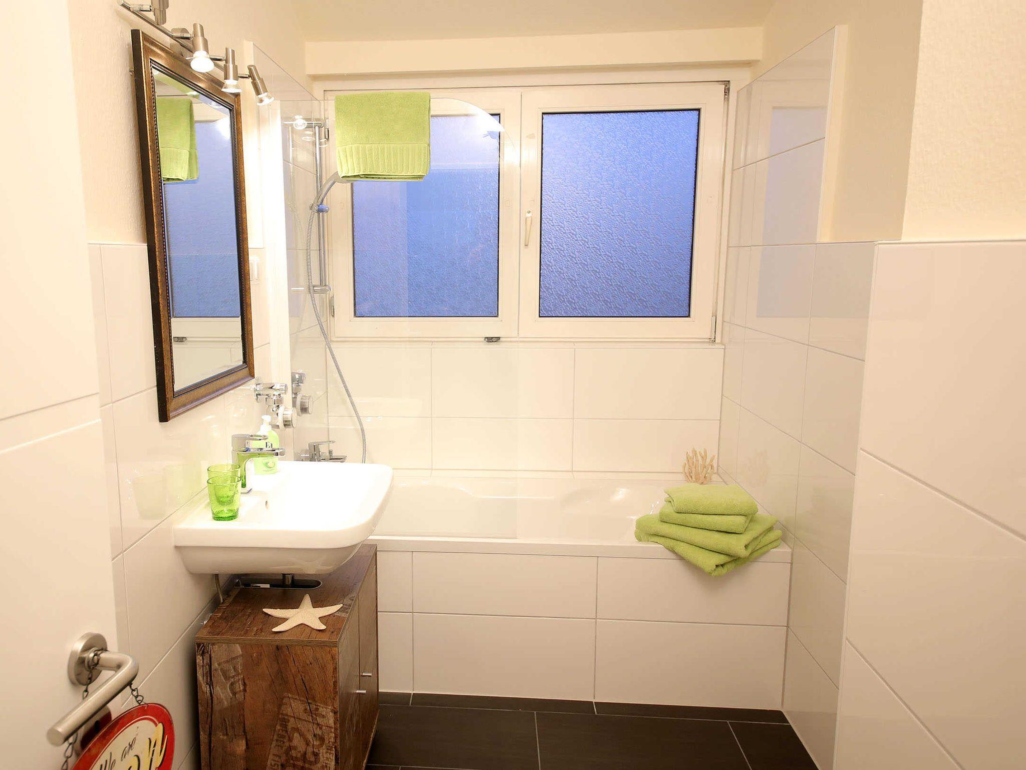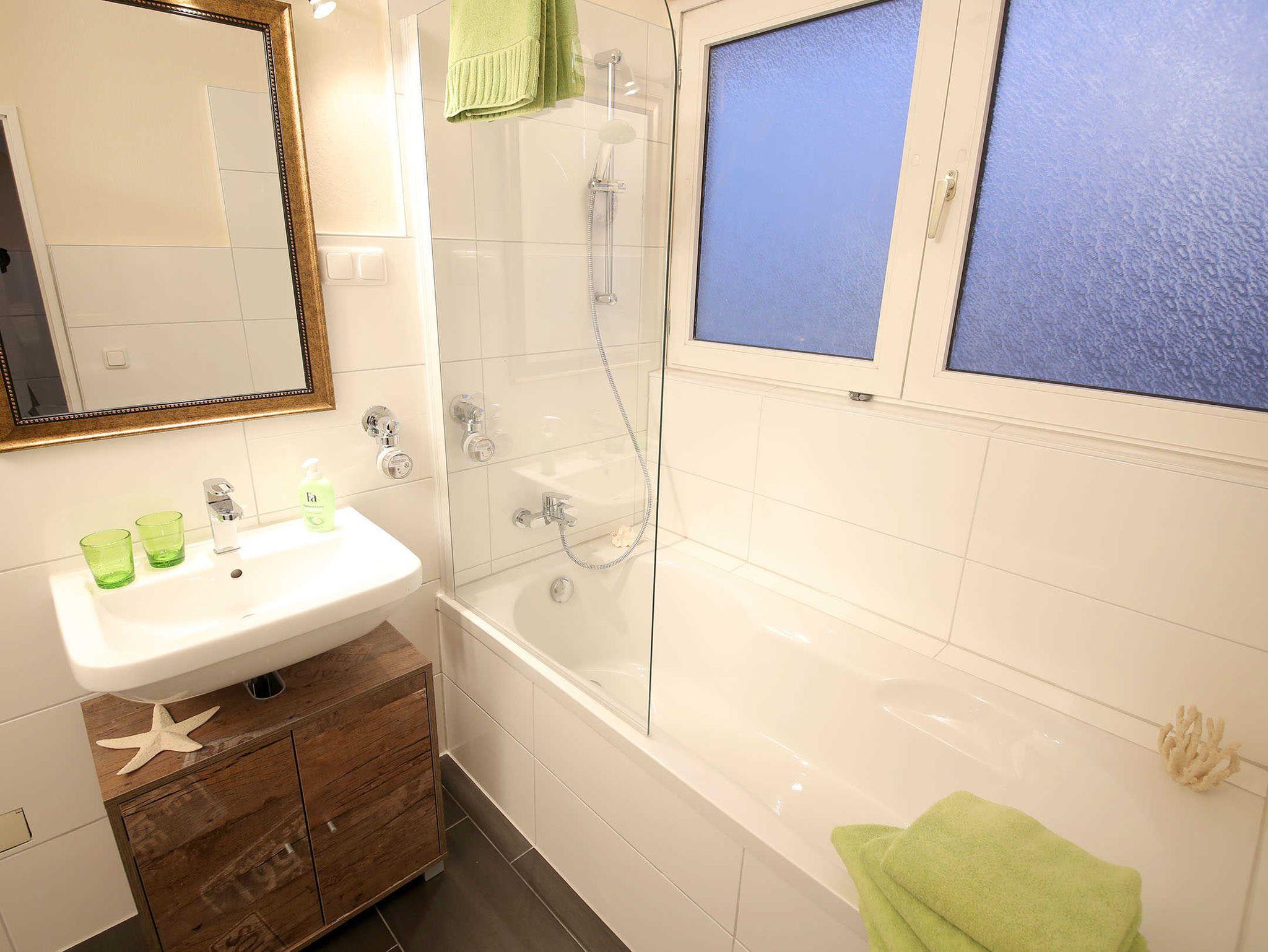 Die Küche ist mit einer Küchenzeile inkl. Spülmaschine und Backofen ausgestattet, das moderne Bad u.a. mit Duschwanne sowie separatem WC.