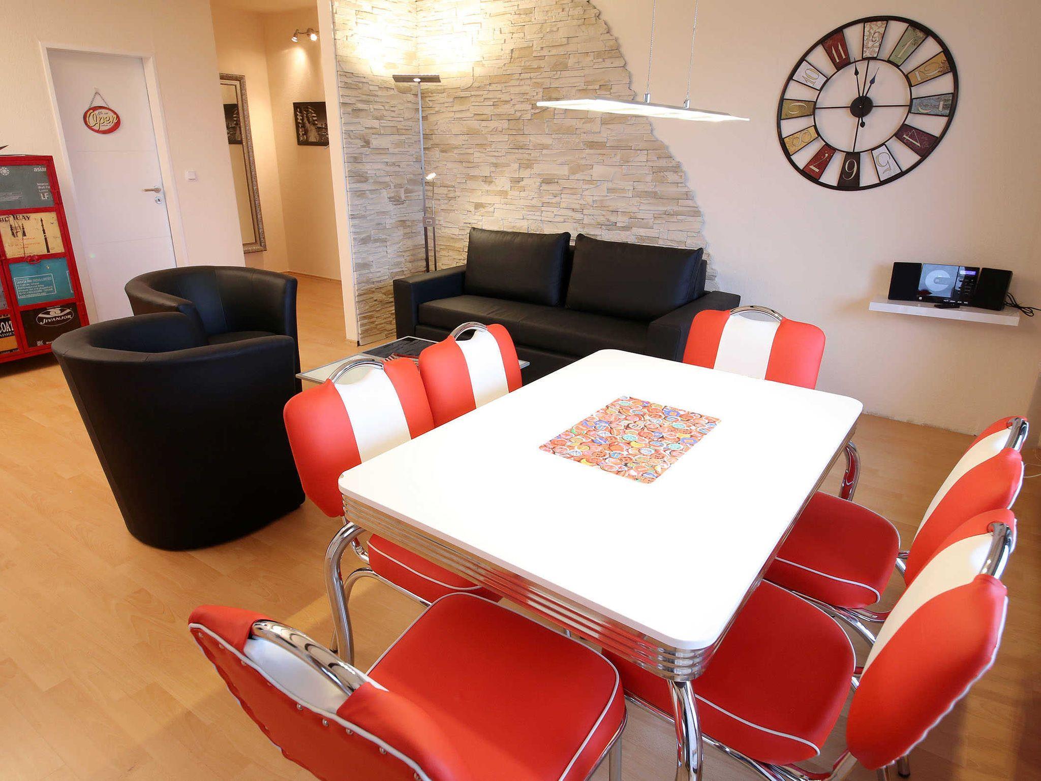 Das kinderfreundliche Apartment besticht besonders durch seine individuelle Einrichtung mit modernen Möbeln.