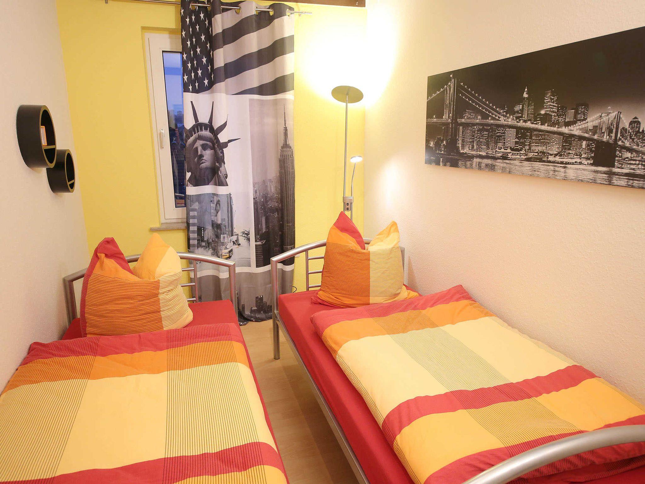 Die Wohnung verfügt über 3 Schlafzimmer. Zwei der gemütlichen und ruhigen Schlafzimmer sind mit einem großen Doppel-Bett (1,80m x 2,00 Meter) ausgestattet. Das dritte Schlafzimmer verfügt über zwei getrennte Einzelbetten (0,90m x 2,00m). Die Schlafbereiche sind sehr ruhig.