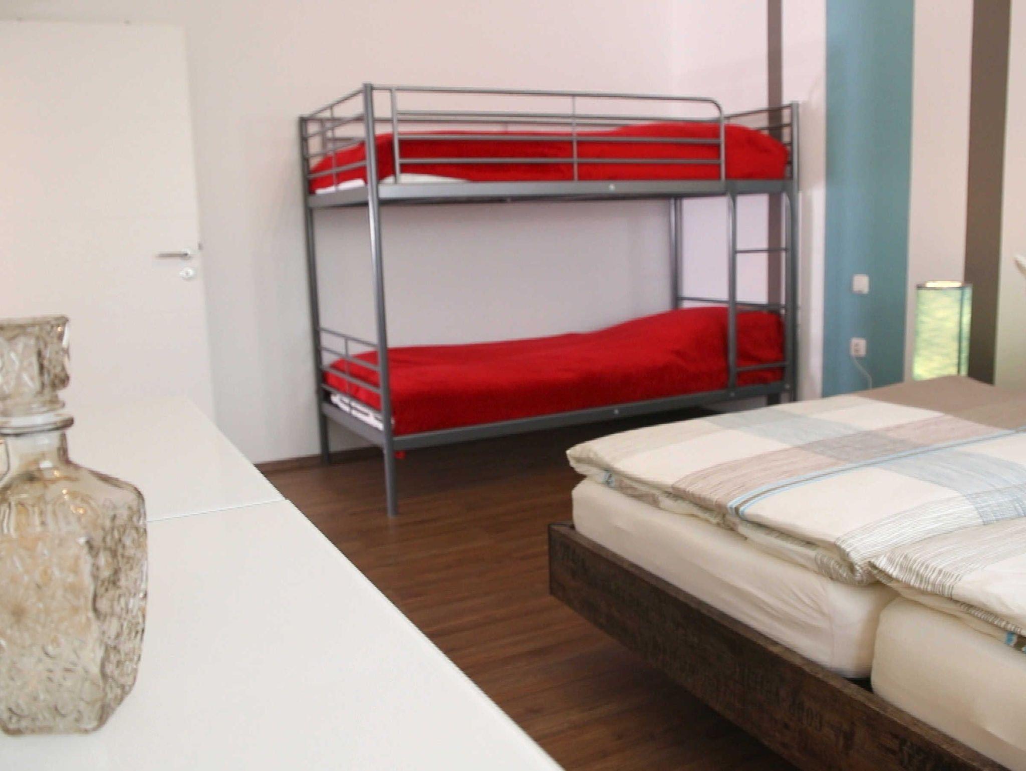 Das gemütliche und ruhige Schlafzimmer ist mit einem großen Bett (1,80m x 2,00 Meter) und einem Doppel-Stockbett ausgestattet. Der Schlafbereich ist sehr ruhig.