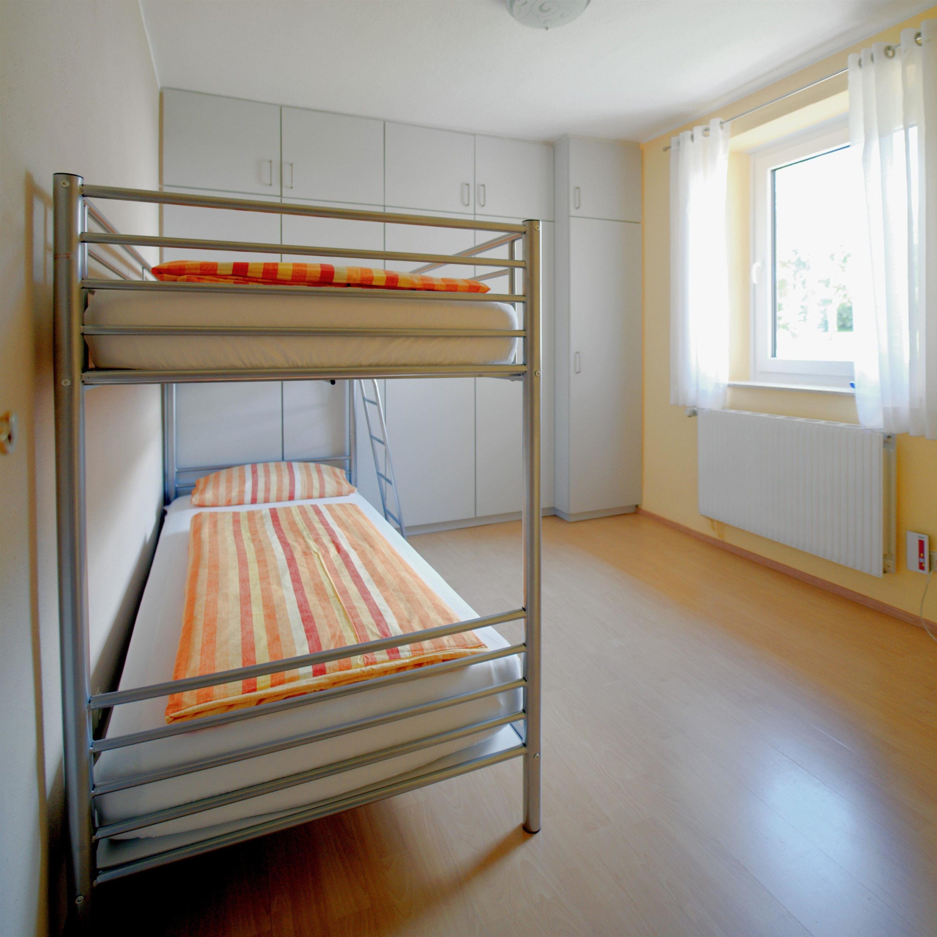 Zwei Schlafzimmer mit Doppelbett, ein Schlafzimmer mit Etagenbett (vorzugsweise für Kinder), ein Schlafzimmer mit einem Einzelbett und ein Schlafzimmer mit Doppelbett und einem zusätzlichen Einzelbett.