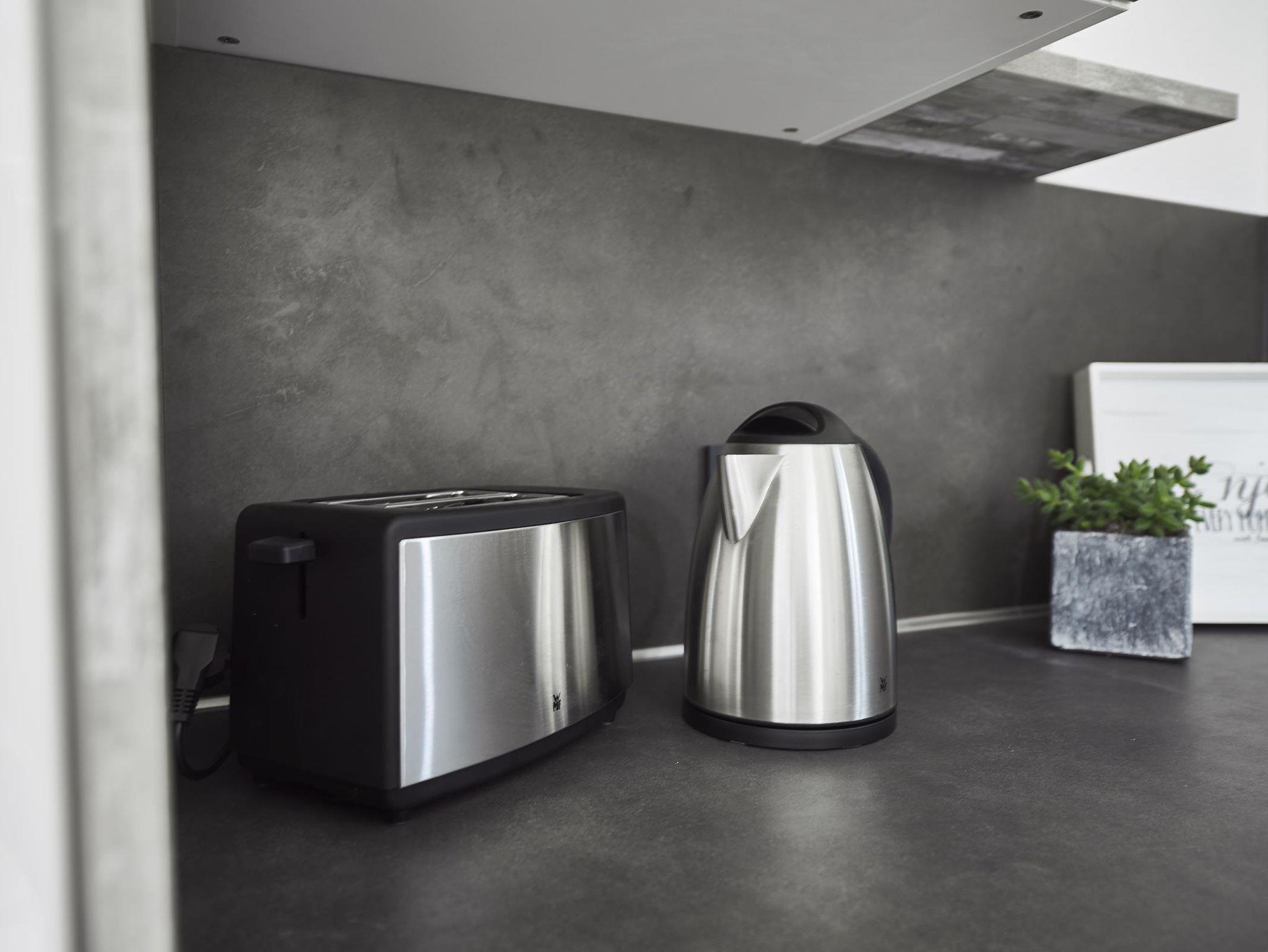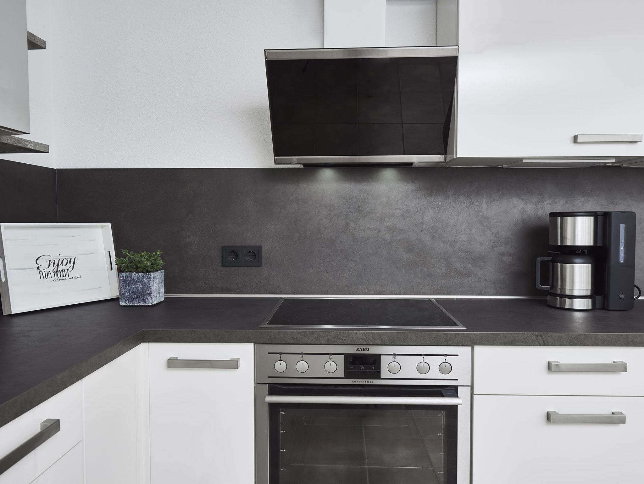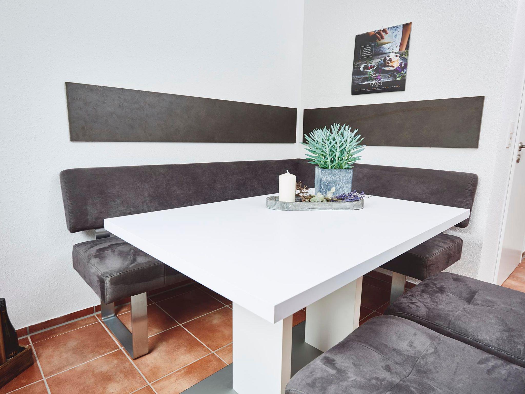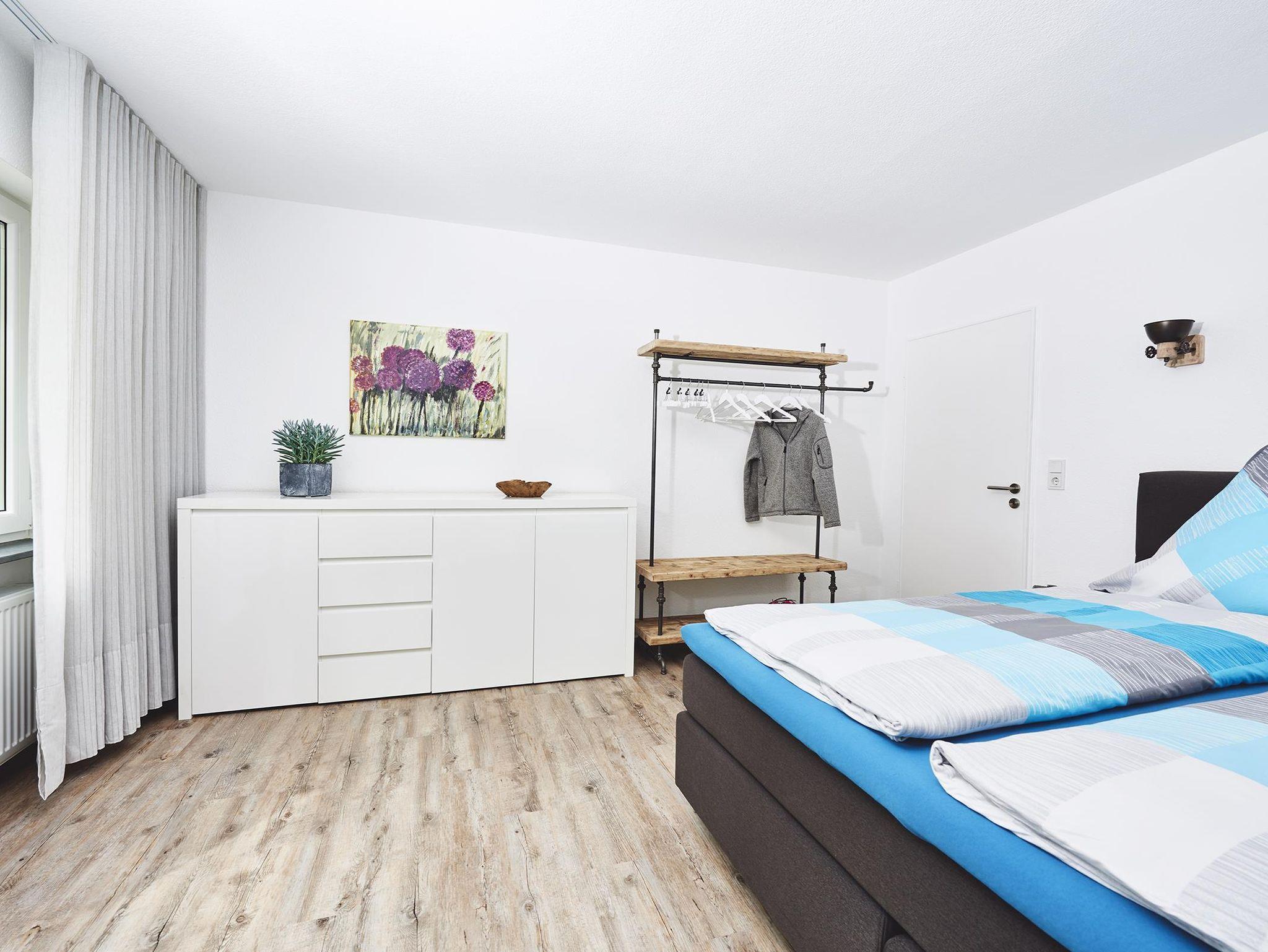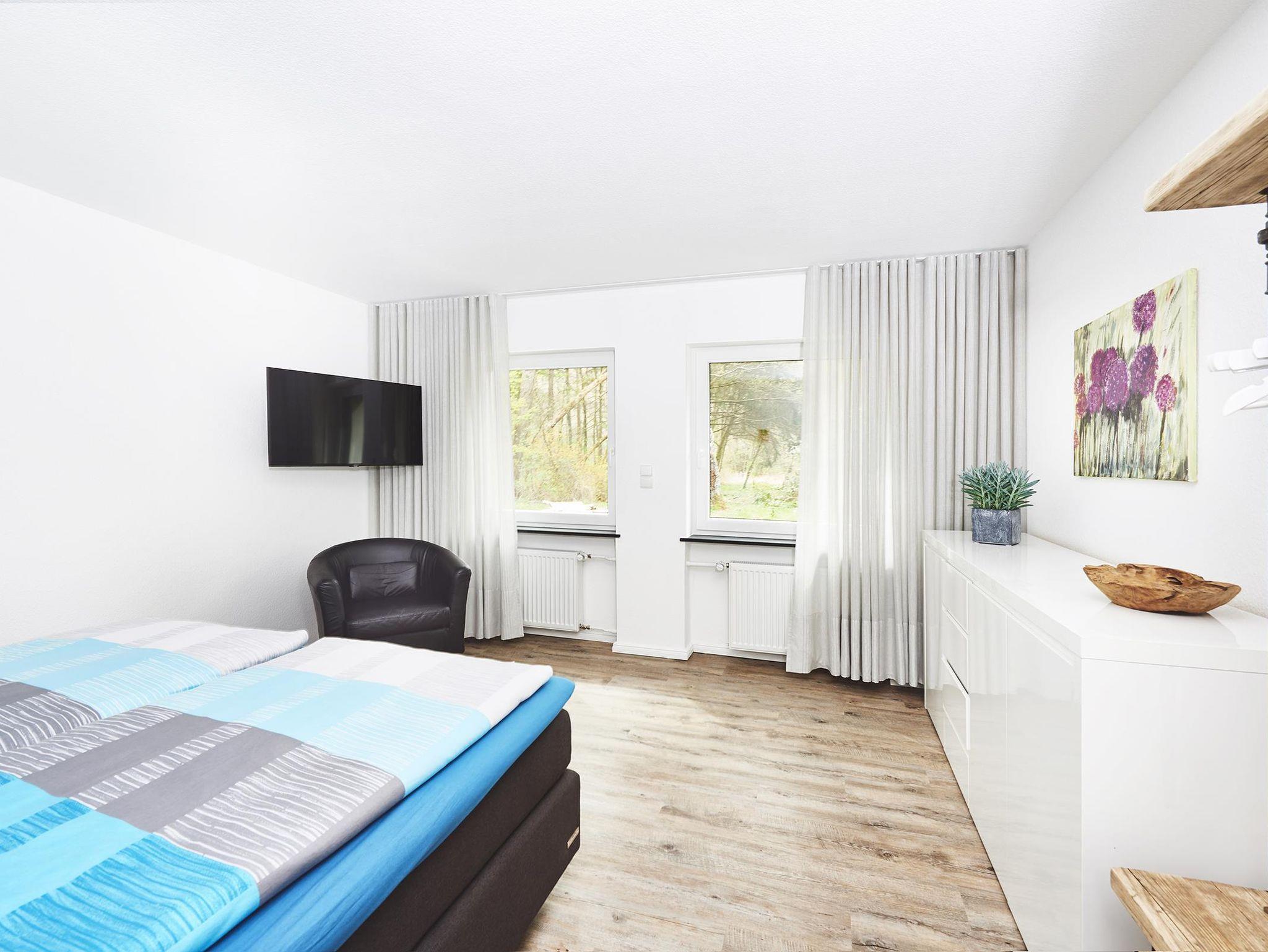 Die gemütlich eingerichtete Ferienwohnung bietet auf ca. 80 qm Platz für bis zu 4 Personen. Sie verfügt über eine modern eingerichtete Küche mit Geschirrspüler, Backofen, Mikrowelle, Kaffeemaschine, Toaster und Fernseher. Ein Schlafzimmer mit Boxspringbett und Flatscreen Fernseher. Weiteres Schlafzimmer mit zwei freistehenden Betten und Flatscreen Fernseher. Bad mit Regendusche, WC und Haartrockner. Wohn/Esszimmer mit Sofa, Relax-Sessel, Esstisch und großem Flatscreen Fernseher