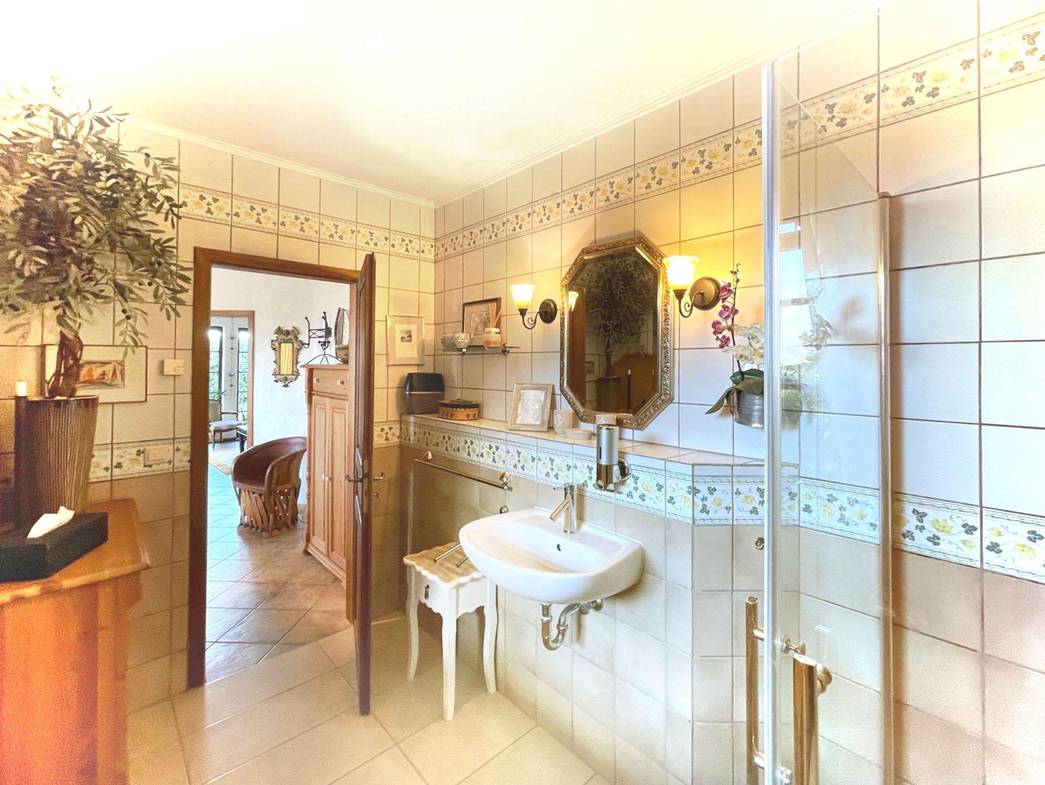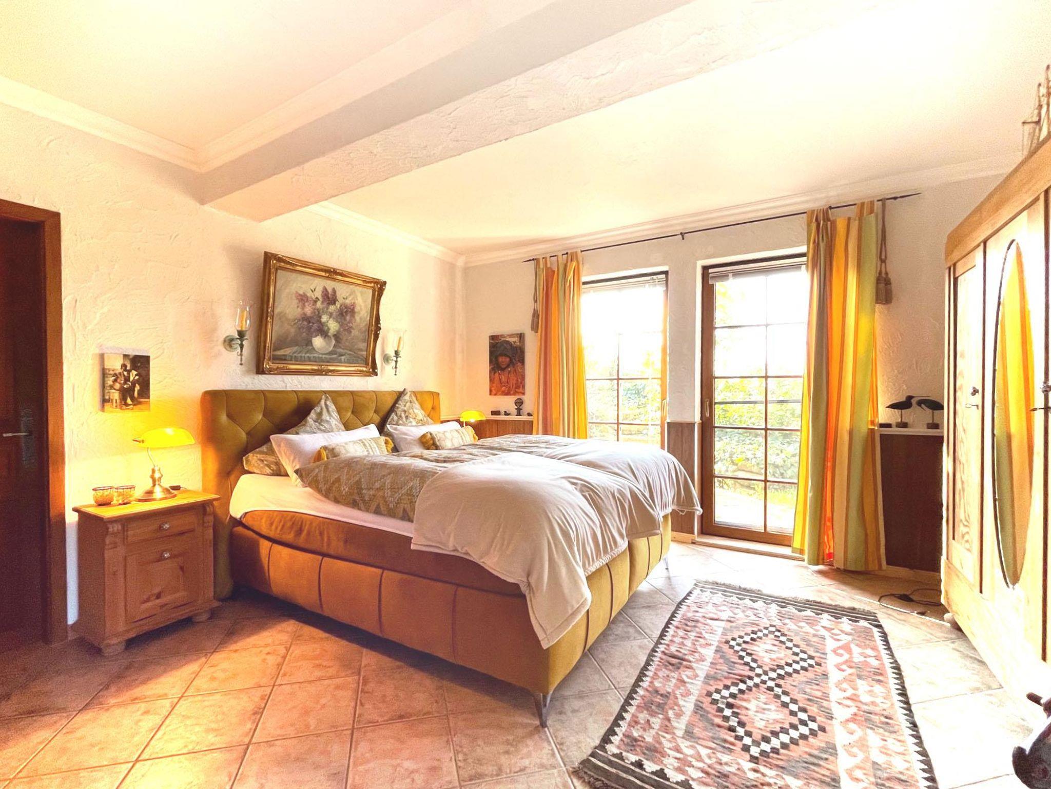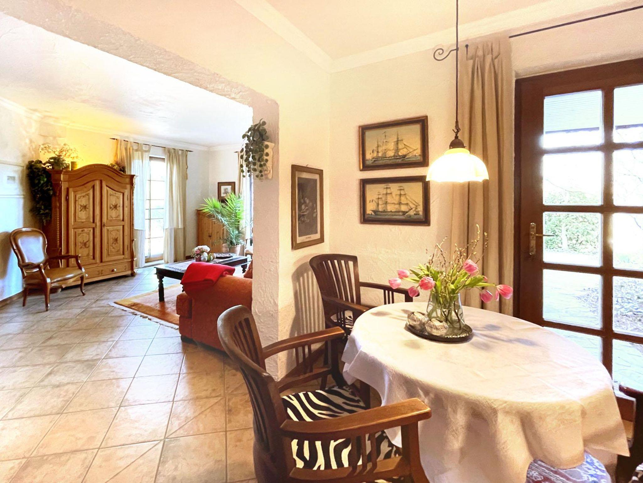 Hochwertig ausgestattet (60 qm) mit separatem Eingang im Untergeschoss: Großes, helles Wohnzimmer mit SAT-TV, DVD und Stereoanlage, Einbauküche mit Geschirrspüler, Mikrowelle, Kaffeemaschine, Toaster und Grill, 1 sep. Doppelschlafzimmer, großzügiges Bad mit Dusche, Föhn. Sonnenterrasse mit Gartenmöbeln.