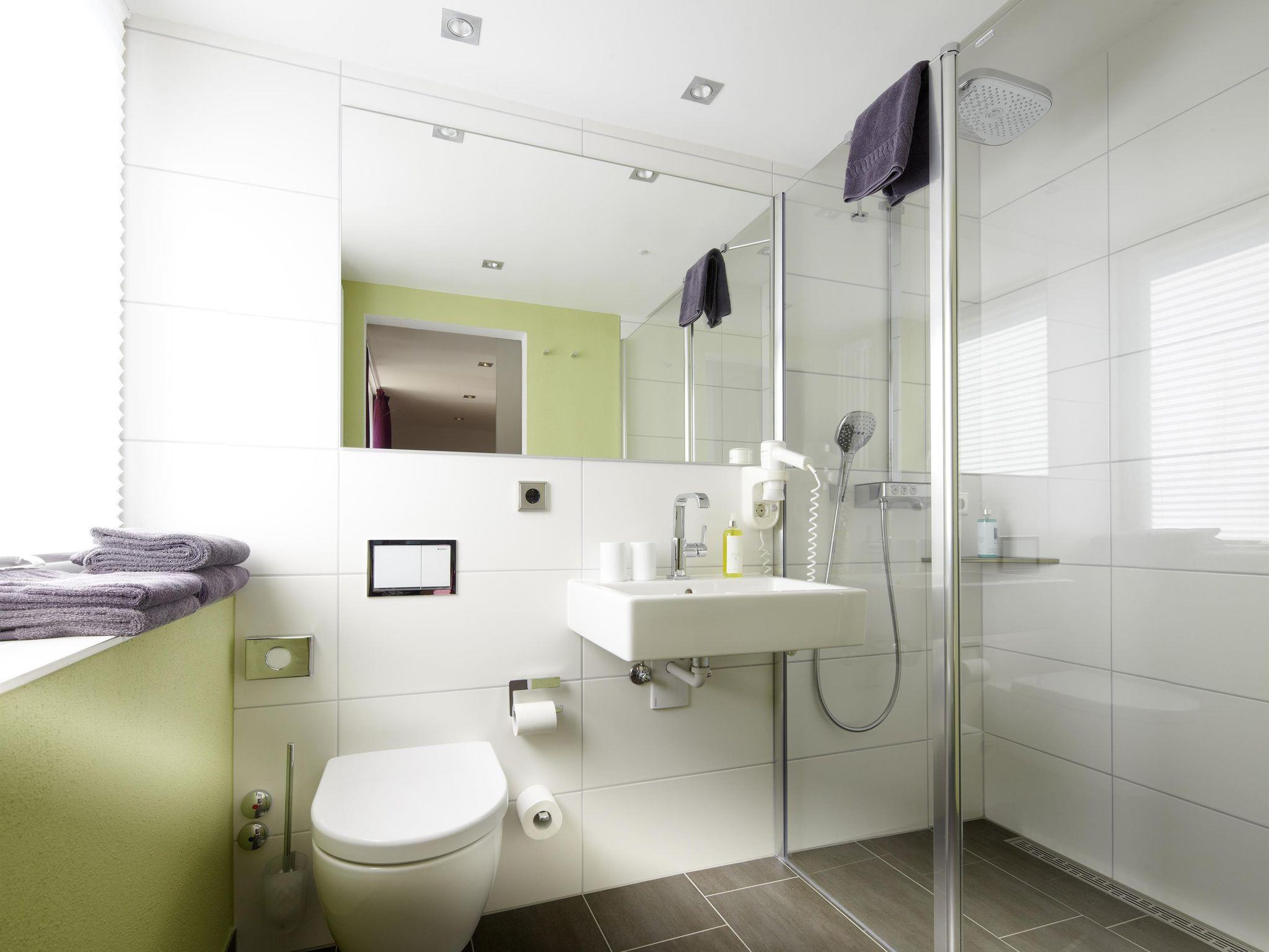 Alle Zimmer mit Dusche/WC und Haartrockner, kostenloser WLAN-Zugang, Zentralheizung, Flat-TV und Telefon, teilweise Balkon. Eigener Parkplatz, Fahrradhalle.