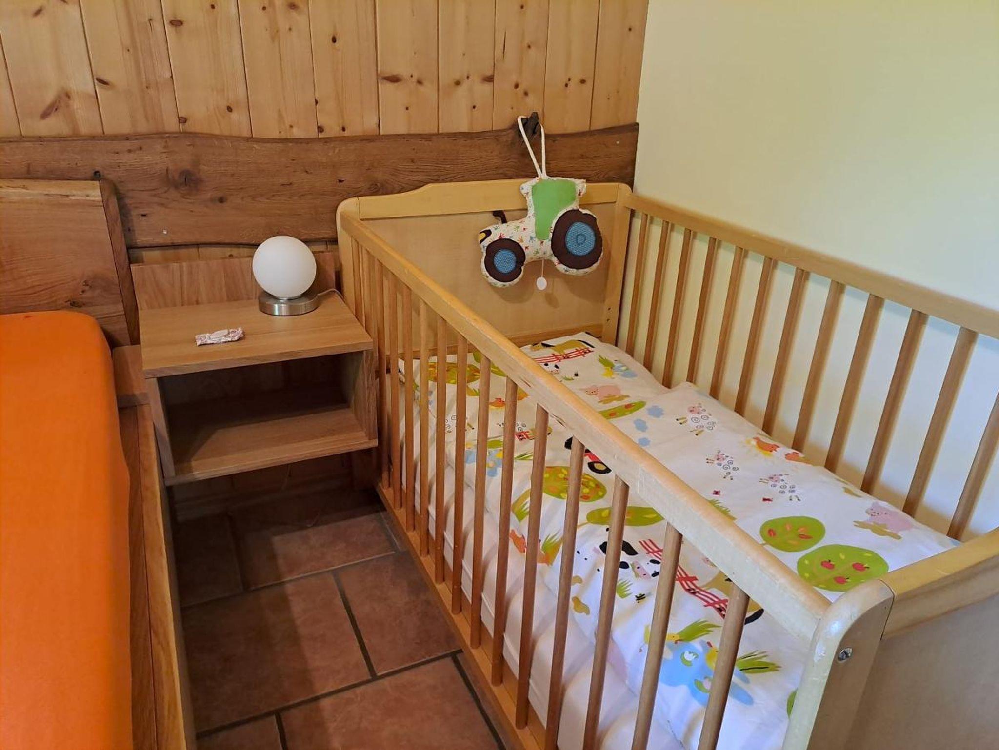 Die Räume sind mit massiven Holzmöbeln im bäuerlichen Stil eingerichtet und vollständig baby- und kindgerecht ausgestattet. Kleine Gäste können nach Herzenslust spielen, entdecken und Abenteuer erleben, während Erwachsene Ruhe und Erholung genießen. Babysitting nach Absprache und gemeinsame Hof-Aktivitäten sorgen für unvergessliche Familienmomente.