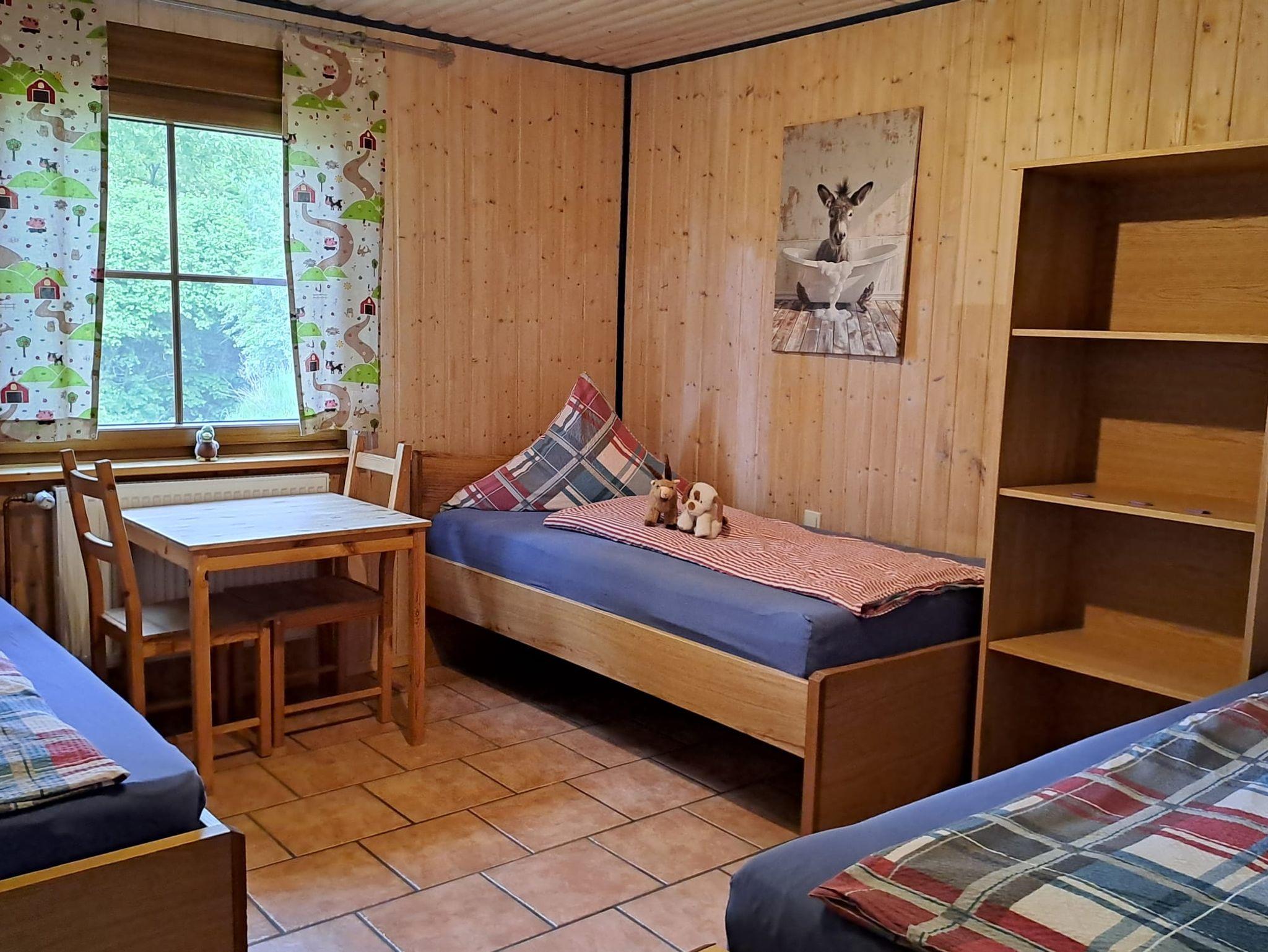Der Hof liegt idyllisch am Waldrand in ruhiger Höhenlage mit weiter Fernsicht. Große Wiesen, Spielplatz, Trampolin, Tischtennis, Kicker und Liegestühle bieten Spaß und Entspannung für Groß und Klein.