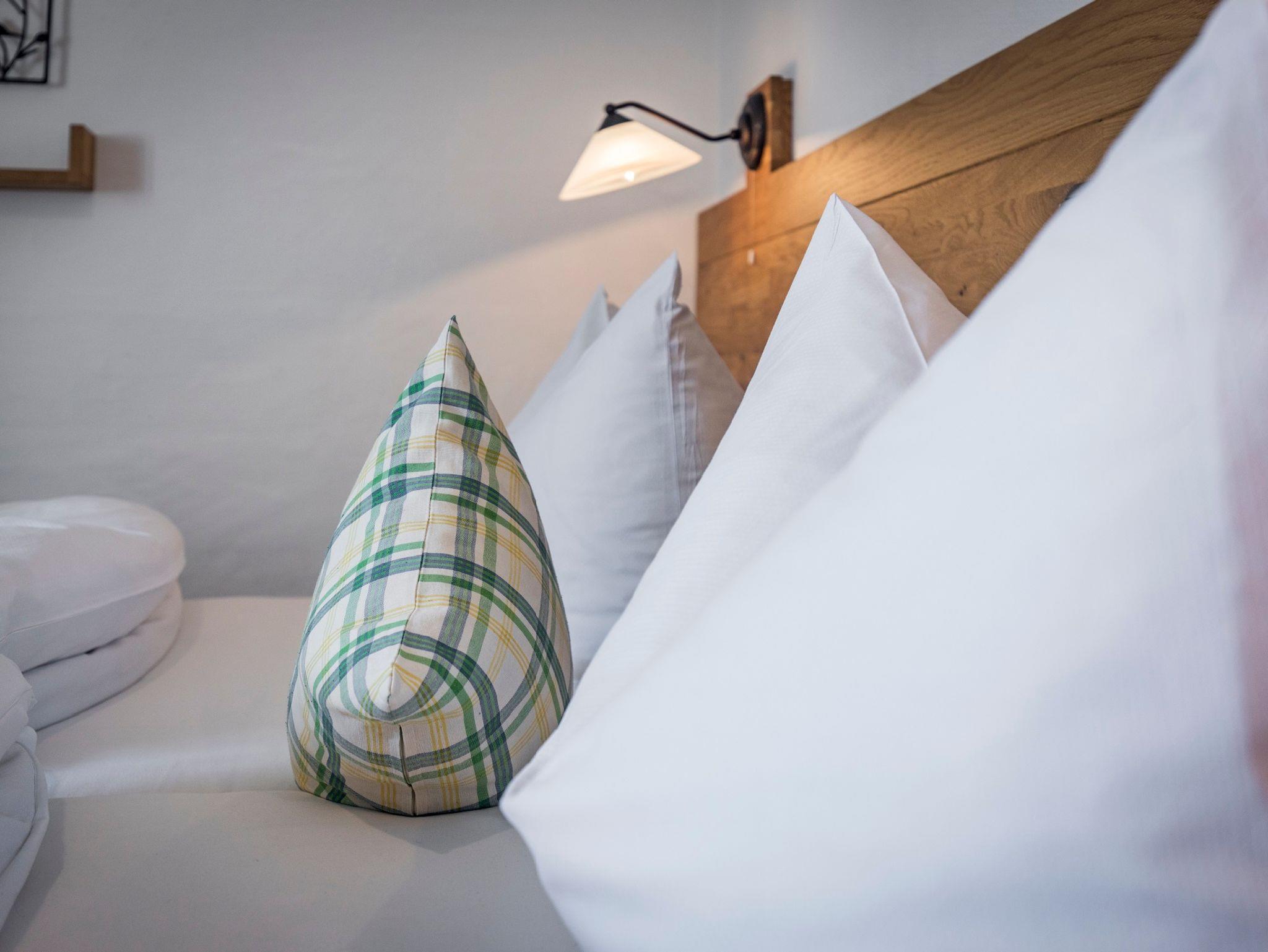 Das Schlafzimmer ist mit einem Doppelbett (180x200cm) ausgestattet. Auf Wunsch lässt sich dieses auch teilen, sodass zwei Einzelbetten entstehen. Auf Anfrage ist für weitere Personen eine Aufbettung auf der Schlafcouch in der Wohnküche möglich.