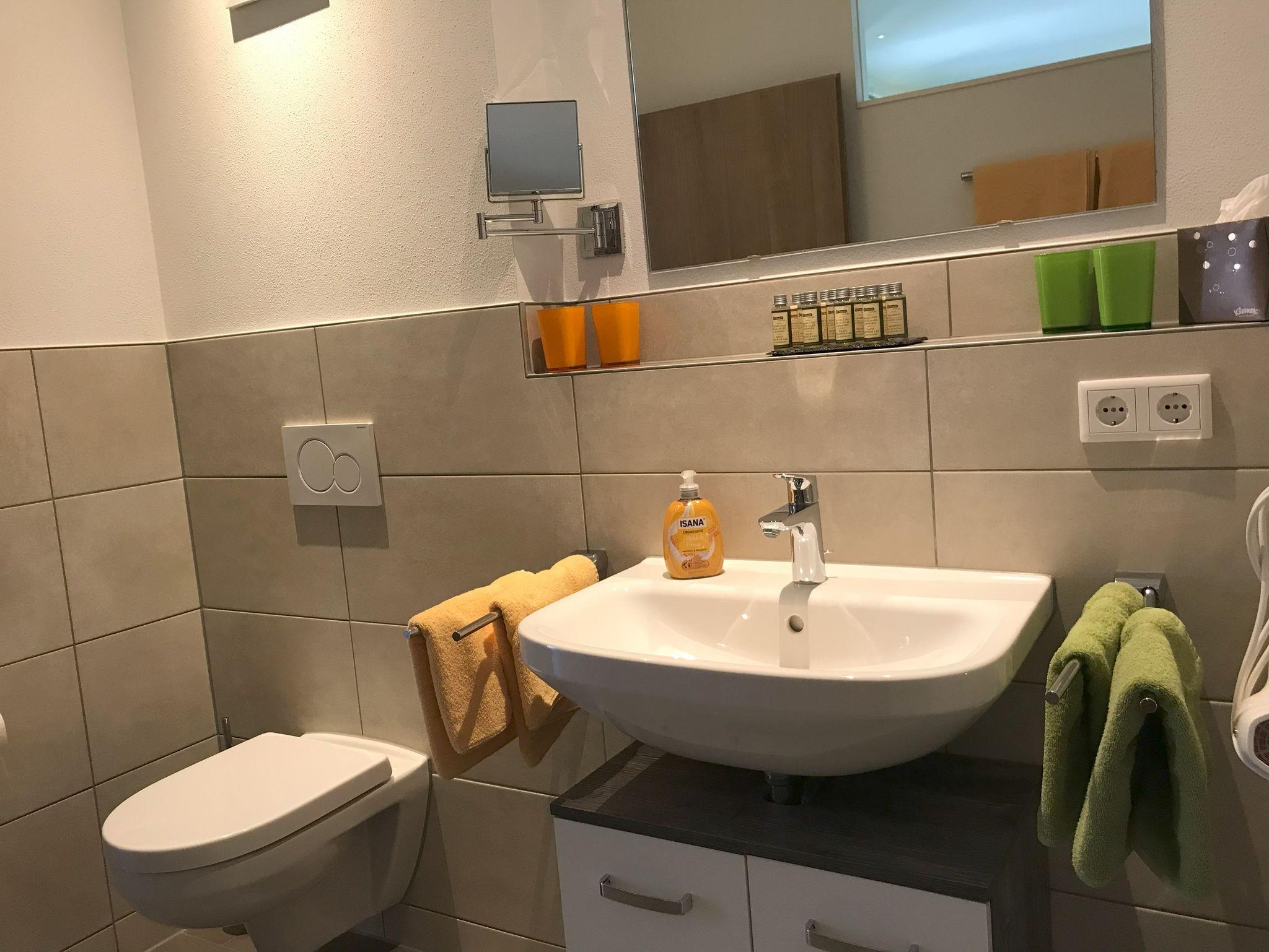 Unser gemütlich und modern eingerichtetes 3 - Zimmer - Appartement mit 80 qm für max. 4 Personen verfügt über zwei schöne Schlafzimmer, ein Wohnzimmer mit Wohnküche, eine große überdachte Terrasse und ein geräumiges Badezimmer mit begehbarer Dusche. Die gesamte Wohnung und der Zugang zum Haus ist barrierefrei.